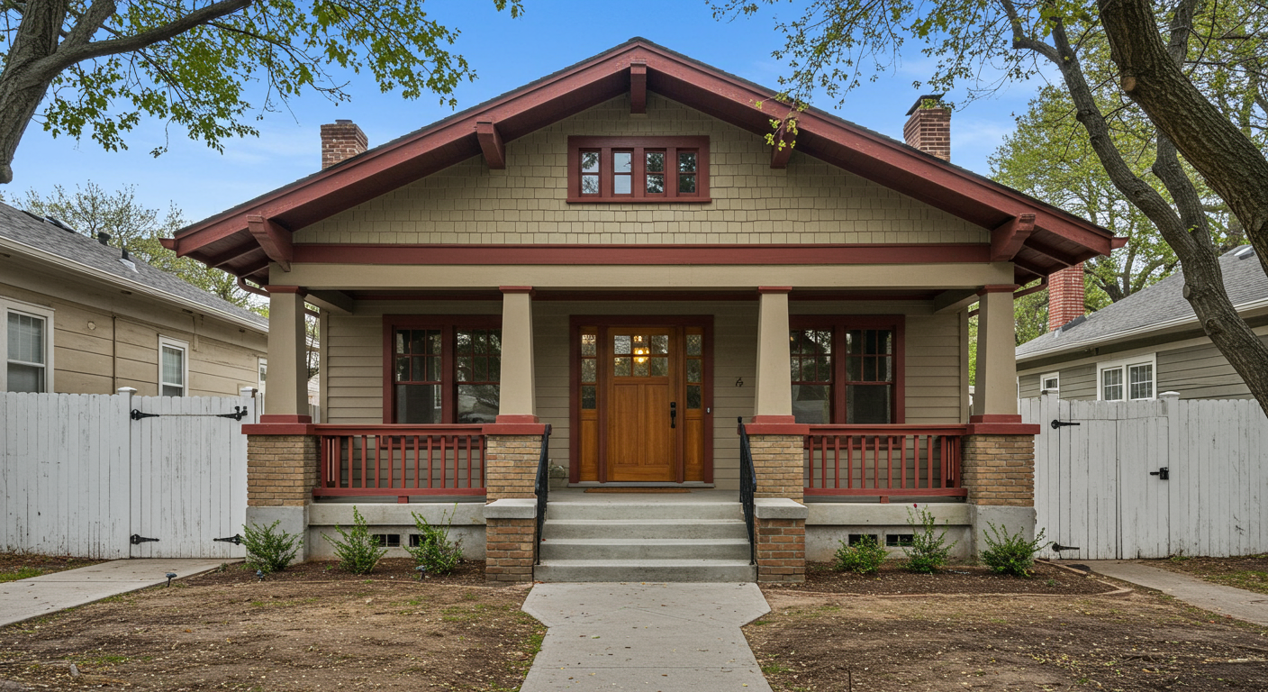 Craftsman Bungalow – The Bungalow is among the most popular home styles in Denver and can be identified by its low profile, low-pitched gable roofline with broad eaves and exposed rafter tails, the staple large front porch, and a cute-as-can be, cozy floor plan. Bungalows are typically one story, but sometimes feature dormers with a small second story.