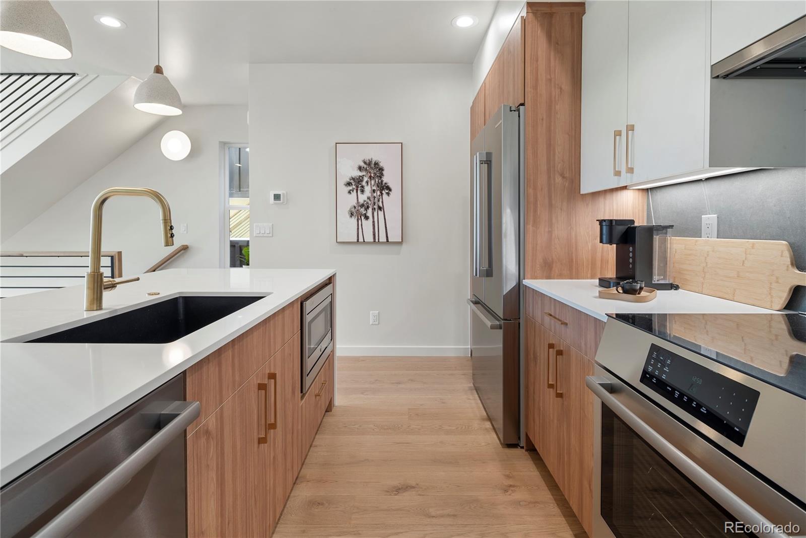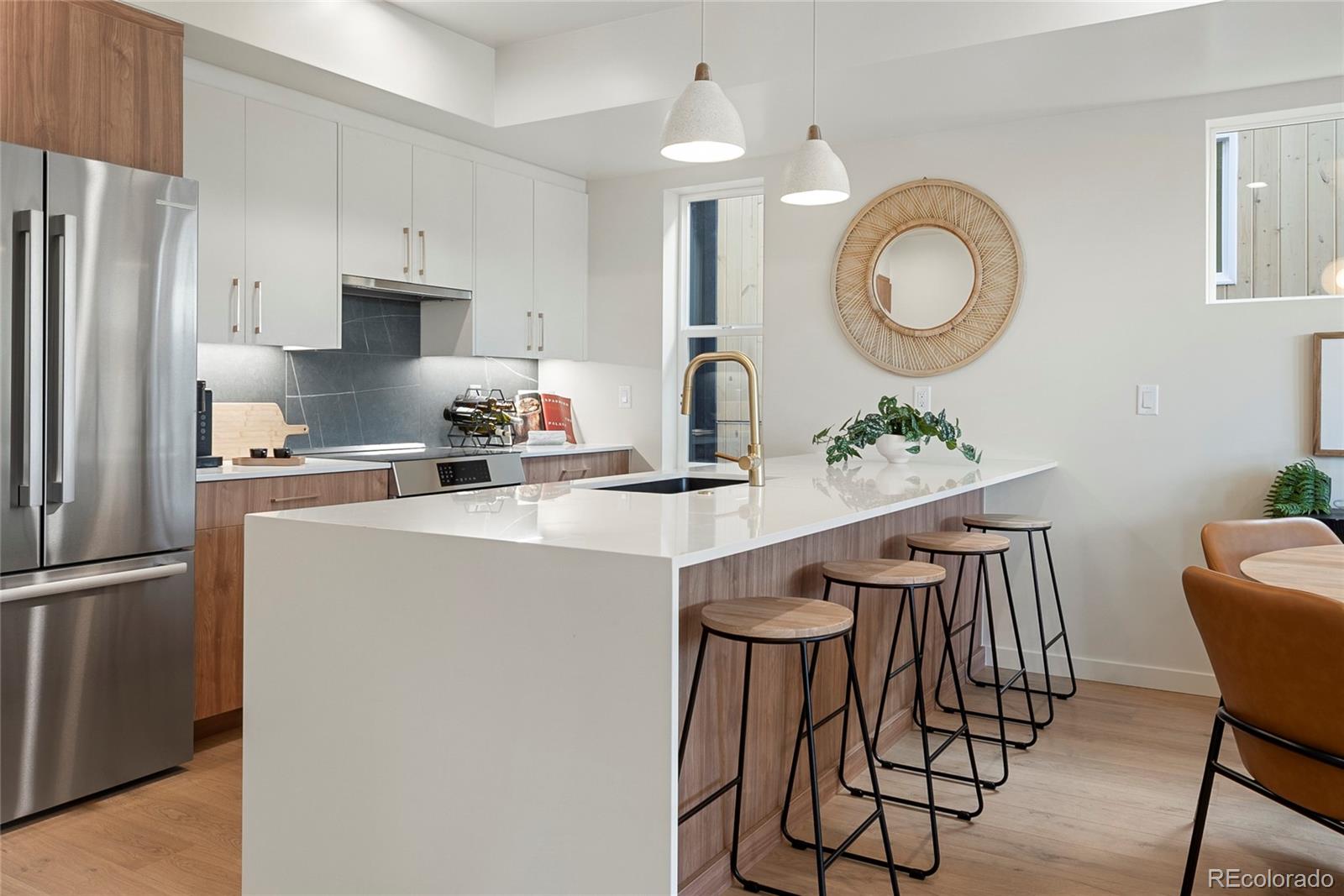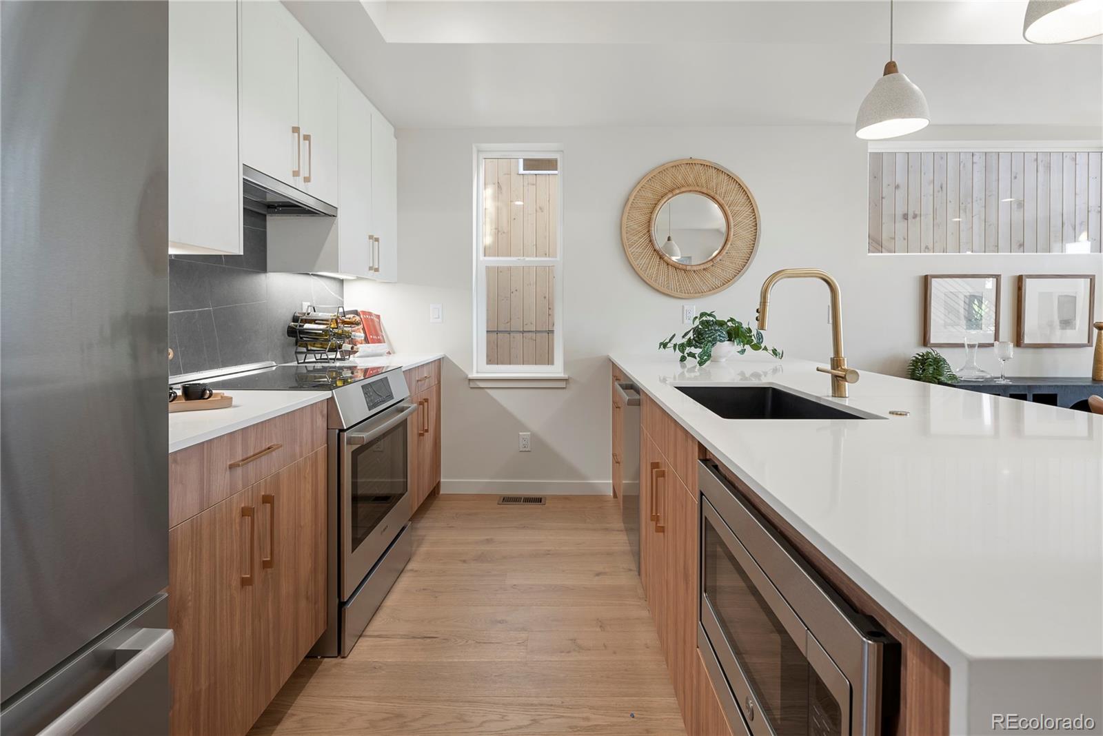 LAST UNIT AVAILABLE!! New construction in West Colfax. This unit comes with a private back yard. Pricing from $765,000 to $800,000. These front/back duplexes range from 1,700 to 1,800 sq ft and include 3 bedrooms/3.5 baths with a flex space. The architecture is incredibly unique with Douglas fir beams stretching from the ground level to the roof line and El dorado stone veneer making these properties truly standout! The ground floor features a recreational area with a custom wet bar(select units). The ground floor bedroom can provide additional income as an Airbnb lock-off as there is a separate entrance. Airdna projected revenue ranges from $20k-$35k per year. Some floor plans can be modified to Airbnb the entire ground floor to maximize revenue. Explore each duplex where you will be blown away by the Scandinavian-inspired finishes and accents, including artisan crafted light fixtures and other architectural details. Venture up to the second story where you will be greeted by an open concept that feels bright and airy! An interior where you can effortlessly entertain via the dining corner and chef-inspired kitchen. The kitchen and dining open to the large living room with expansive glass sliders and floor to ceiling windows that reveal the large balcony. On the third level, the primary suite steals the show with its oversized walk-in closet, luxurious 5-piece ensuite with a deep soaking tub(select units), and an exclusive balcony(select units) where you can enjoy nightcaps while gazing out over the mountains. Several layouts come with a bonus room which you can utilize as an office, a gym, or as accommodation for overnight visitors. Easy access to downtown Denver, Ball arena, Meow Wolf and Empower field via the Perry light rail station that is only a 5-minute walk away. Reach out with any questions. Keywords: Lockoff, lock off, Airbnb, VRBO, Short term rental, rental property, income producing, ADU, House hacking.