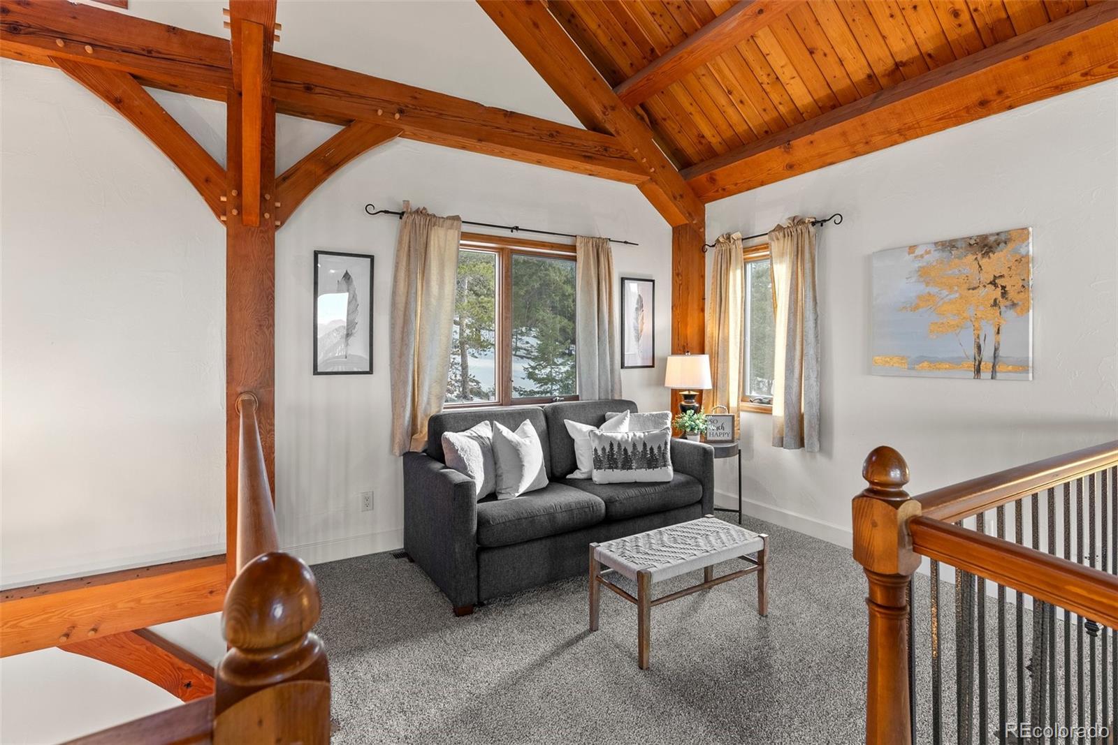 Upstairs, a cozy loft leads to three additional bedrooms, each with vaulted ceilings, custom finishes, and a full shared bath--ideal for guests or family. The finished walkout basement offers a large entertaining area with a wet bar, wood stove, and space for a game room or media lounge.