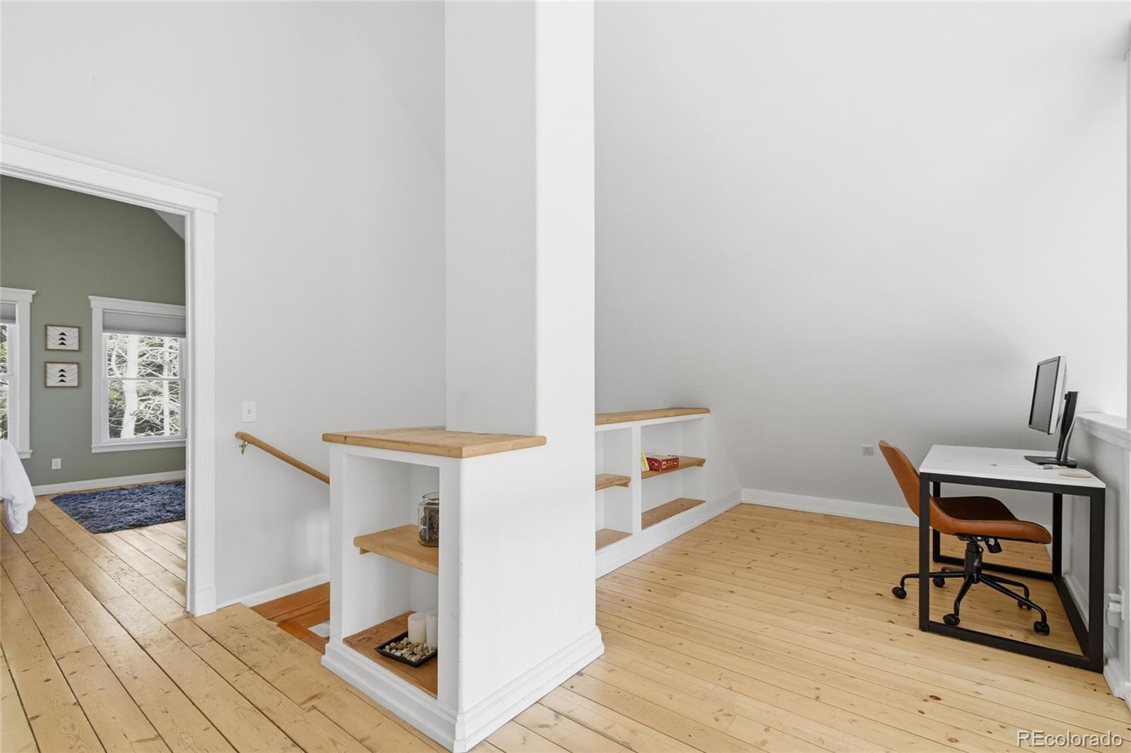 Set on just over an acre of Colorado mountain beauty, this stunning treed lot features rock retaining walls, a desirable south-facing driveway, and sweeping, unobstructed views of Riley Peak, Lone Rock, Turkshead Peak, Cathedral Spires, Raleigh Peak, and Sunset Point.