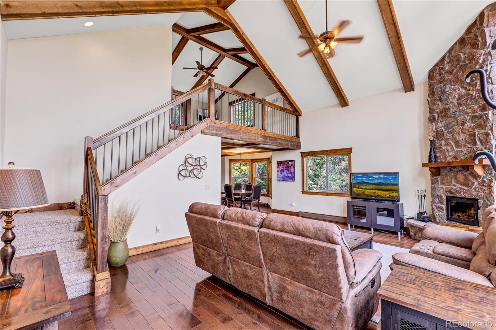 Your dream mountain property just got even better--now at a new price and freshly updated! Tucked into 2.5 private acres of aspen and pine with sweeping valley views, this peaceful retreat has been thoughtfully refreshed for summer and beyond. Recent updates include new living room furniture, fresh gravel in the driveway, and a recently painted front deck--so you can settle in and start enjoying mountain living right away. Inside, the great room greets you with floor-to-ceiling windows, exposed wood beams, and a cozy stone wood-burning fireplace. The south-facing layout fills the home with natural light, and the deck is ideal for catching Colorado's stunning sunsets over Antero Reservoir, Pikes Peak, and Sheep Mountain. Three levels of living offer room for everyone: with a private loft, three separate bedrooms, and a walkout basement with a game room. The long driveway, attached one-car garage, and 220V RV hookup mean there's plenty of room for guests and gear. Located in Foxtail Pines, you'll enjoy access to private fishing ponds and picnic spots, plus this property is walking distance to the Tie Hack trail and adjacent Forest Service land for hiking, biking, XC skiing, snowshoeing, and more. Just 10 minutes away, the Town of Fairplay is home to great dining, local shops, and lively annual events. You'll also find historic South Park City, Fairplay Beach, the South Park Rec Center, and parking for the free Summit Stage bus route to Breckenridge. This property is centrally-located for year-round adventure--close to winter fun in Summit County, summer adventures in Chaffee County, and just under two hours from Denver and Colorado Springs. Whether you're into fly fishing, hunting, powder days, or wildflower hikes, this is the perfect jumping-off point for mountain adventure. Full-time living or weekend getaway--this cozy, updated retreat is ready for your next chapter.