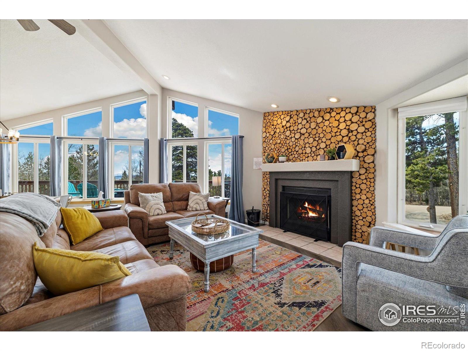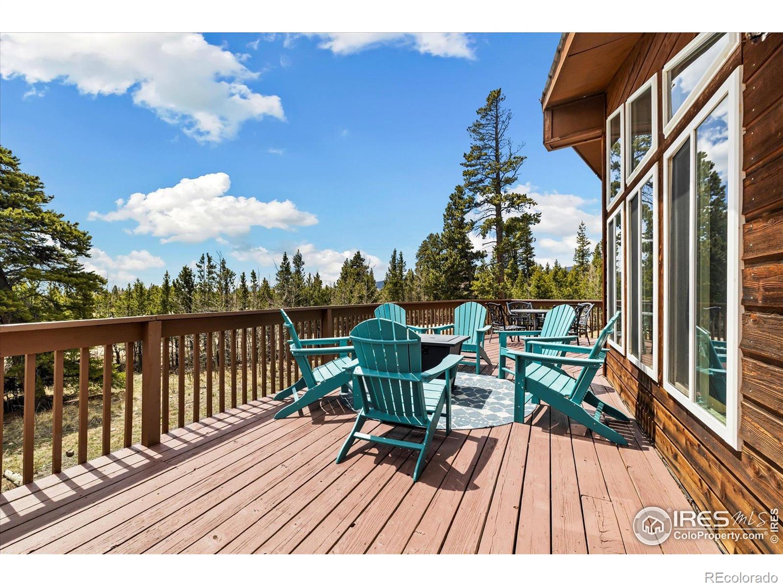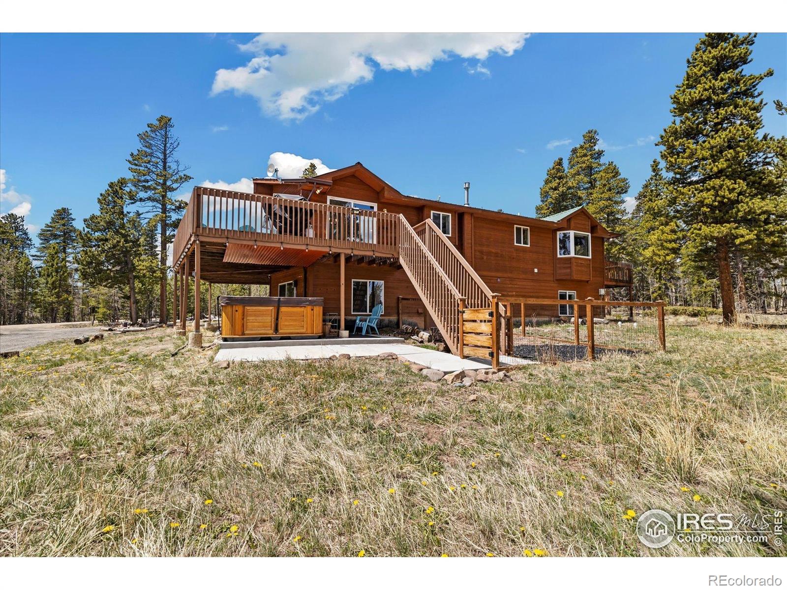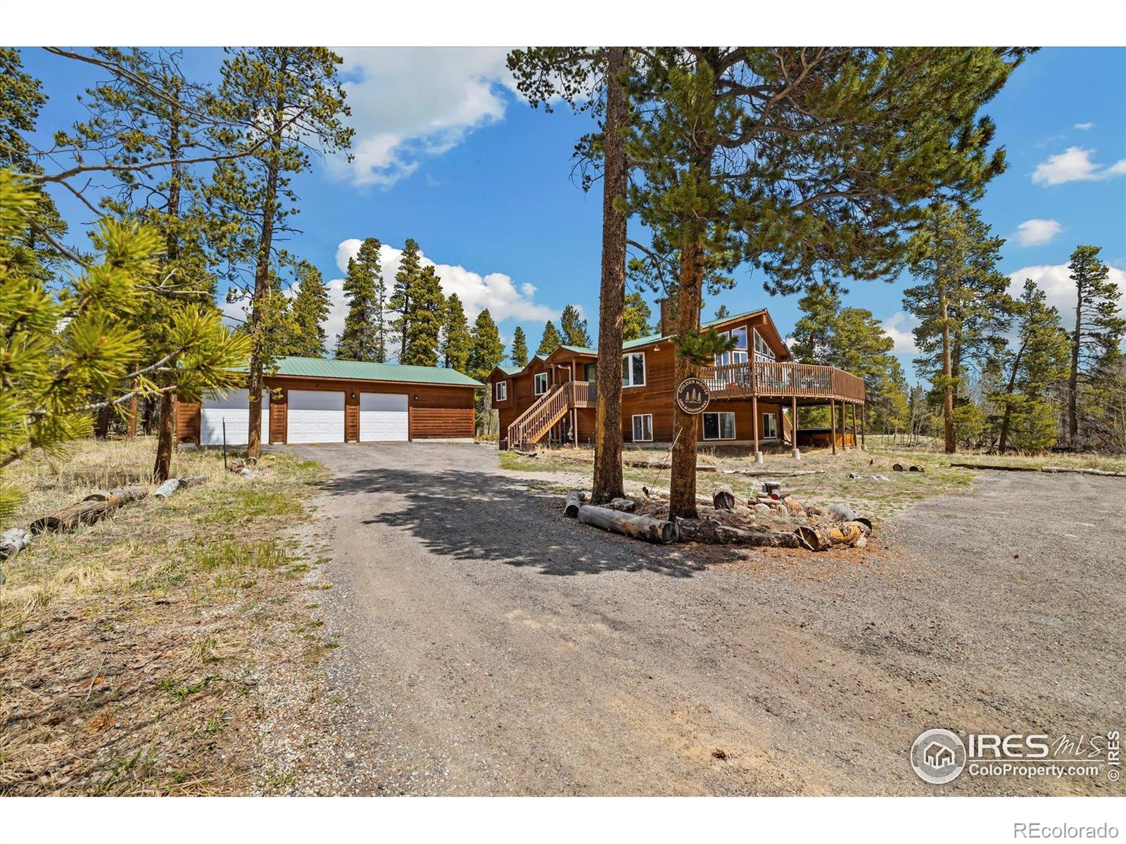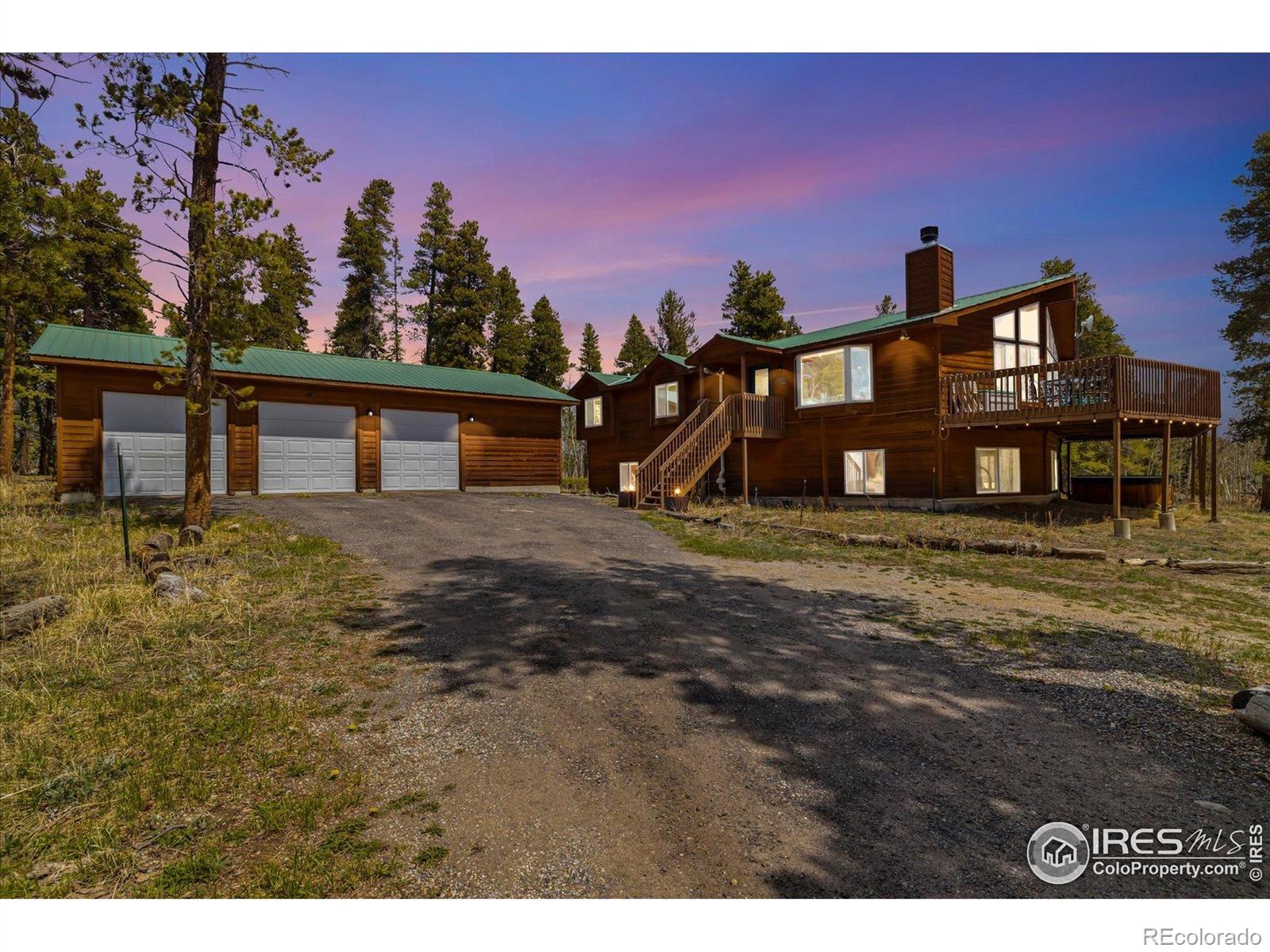 LENDER INCENTIVE with a preferred lender of listing agent - read Broker Remarks! Tucked on 2.5 private acres, this 4-bed, 3-bath mountain home offers a blend of rustic charm and modern style-perfect as a full-time residence, weekend retreat, or short-term rental. The open main floor features a kitchen with a buffet ledge to the dining area and opens to a large deck, great for grilling and mountain sunsets. The living room has a cozy wood-burning fireplace, and the primary suite includes a jetted tub and private balcony. The bright garden level has two large bedrooms, full bath, and a flexible rec/lounge space. Outside, you'll find a 7-person hot tub, whimsical stick huts, fenced dog yard, and frequent wildlife sightings. A 3-car garage, Level 2 EV charger, and ample parking complete the package. Proven income potential (see broker remarks) and recently replaced septic system, approved to host 10 guests. Fish at Foxtail Pines which is stocked annually for residents. Whether you're looking to live, host, or unwind-this home invites you to enjoy true Colorado mountain living.