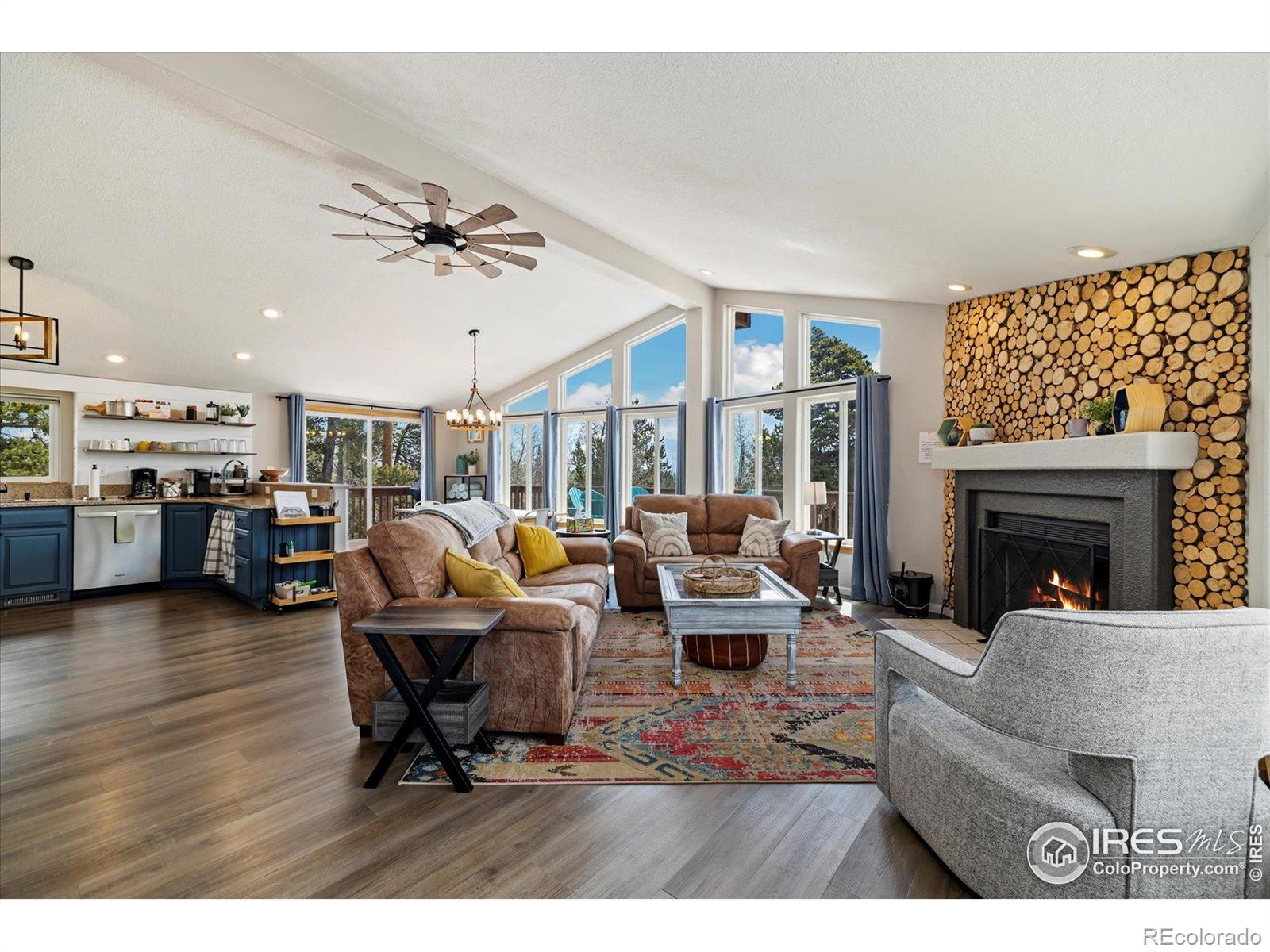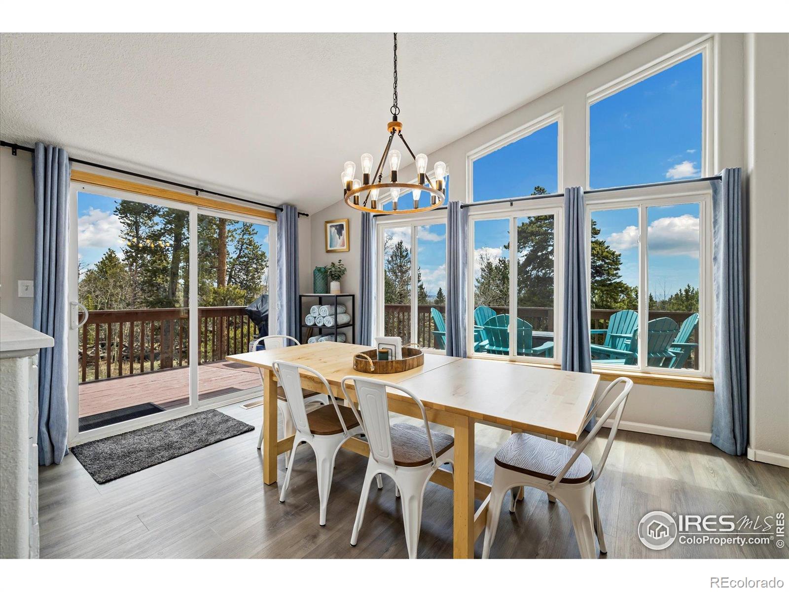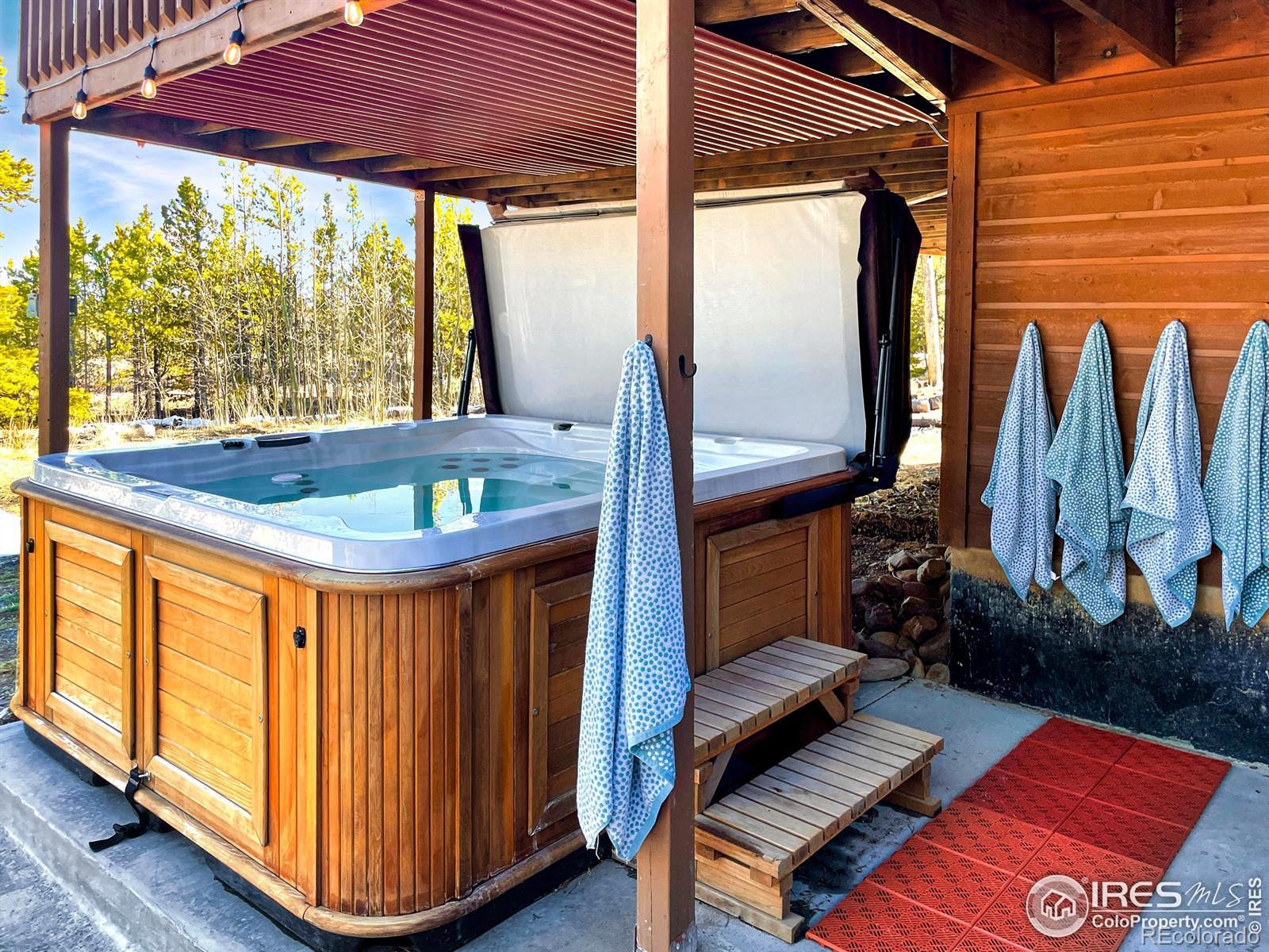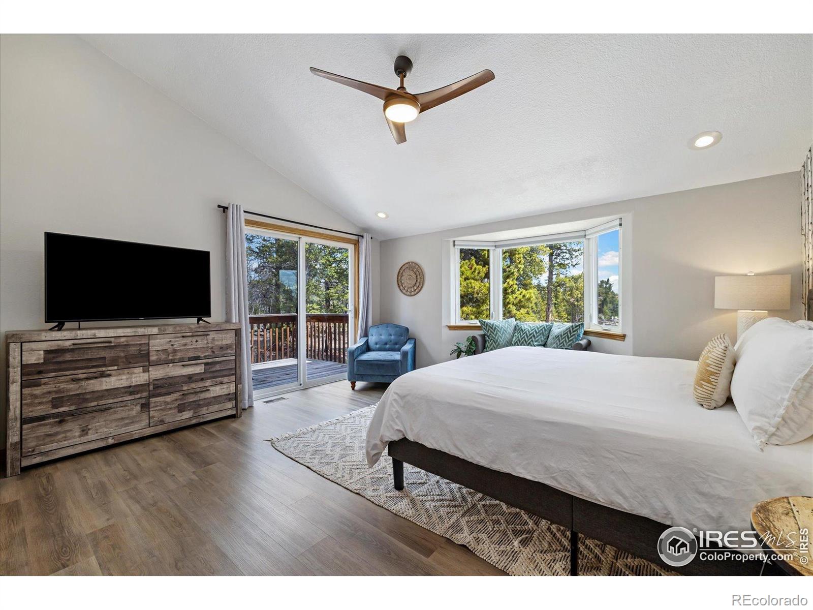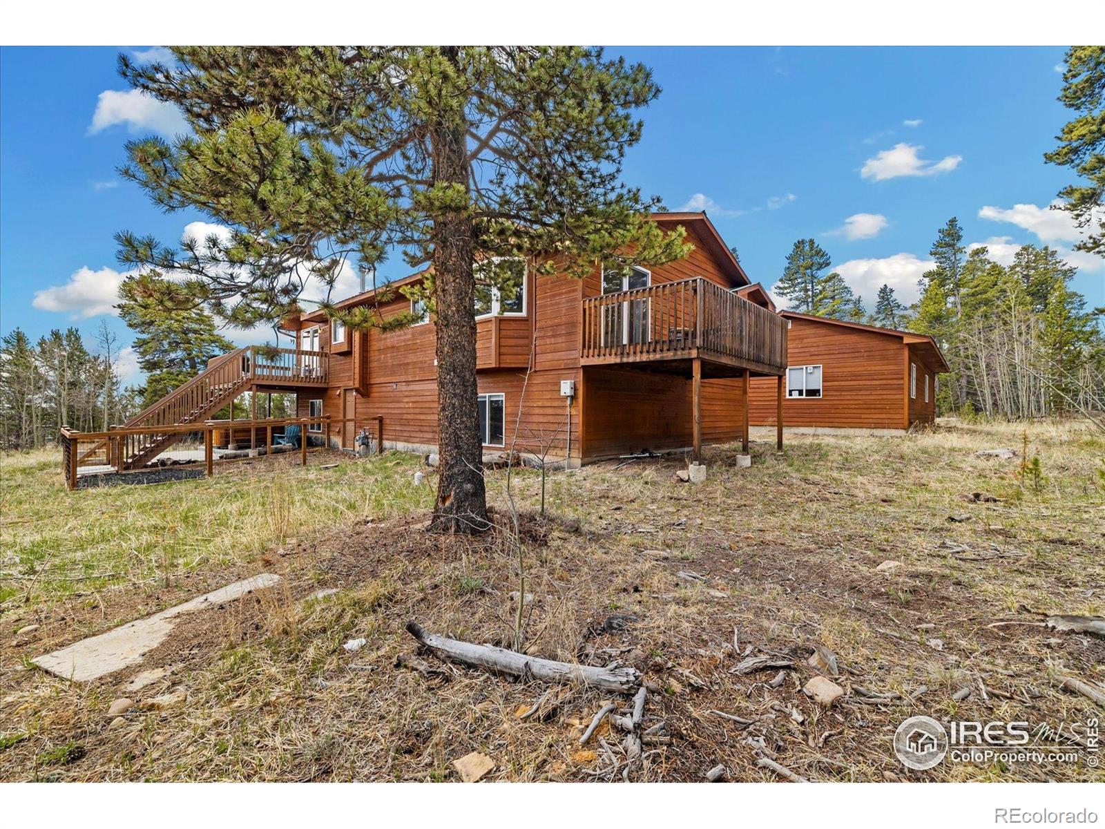 LENDER INCENTIVE with a preferred lender of listing agent - read Broker Remarks! Tucked on 2.5 private acres, this 4-bed, 3-bath mountain home offers a blend of rustic charm and modern style-perfect as a full-time residence, weekend retreat, or short-term rental. The open main floor features a kitchen with a buffet ledge to the dining area and opens to a large deck, great for grilling and mountain sunsets. The living room has a cozy wood-burning fireplace, and the primary suite includes a jetted tub and private balcony. The bright garden level has two large bedrooms, full bath, and a flexible rec/lounge space. Outside, you'll find a 7-person hot tub, whimsical stick huts, fenced dog yard, and frequent wildlife sightings. A 3-car garage, Level 2 EV charger, and ample parking complete the package. Proven income potential (see broker remarks) and recently replaced septic system, approved to host 10 guests. Fish at Foxtail Pines which is stocked annually for residents. Whether you're looking to live, host, or unwind-this home invites you to enjoy true Colorado mountain living.