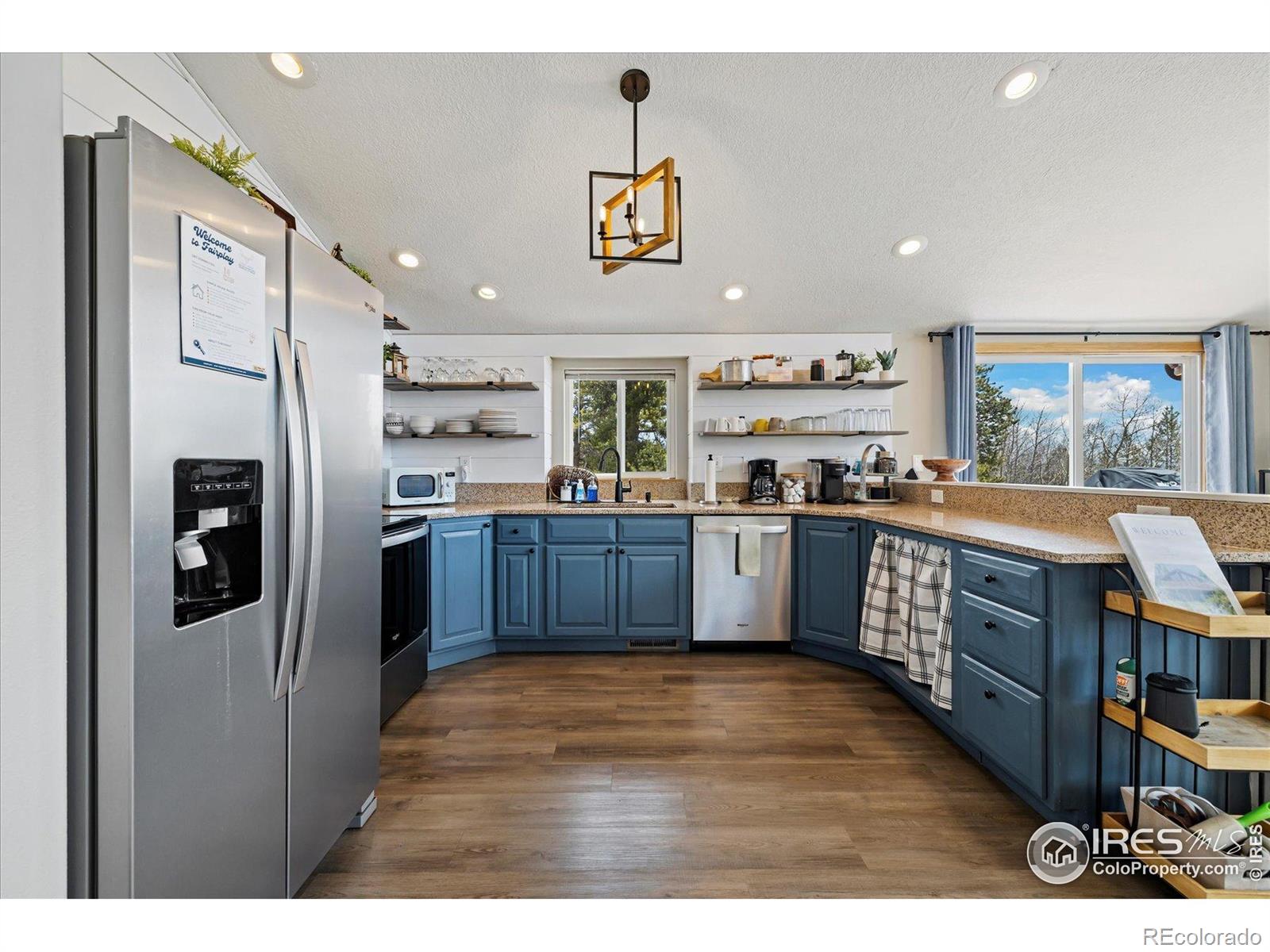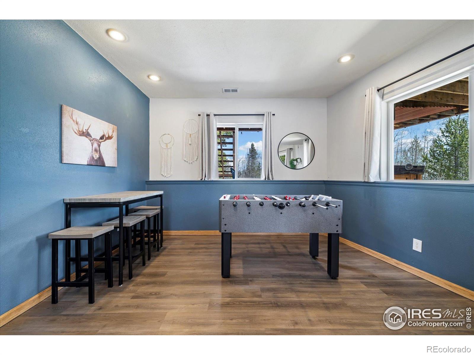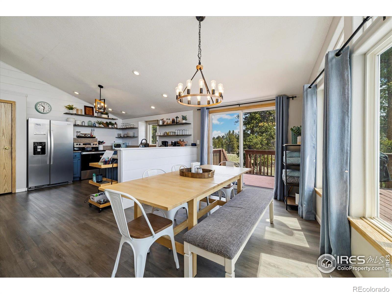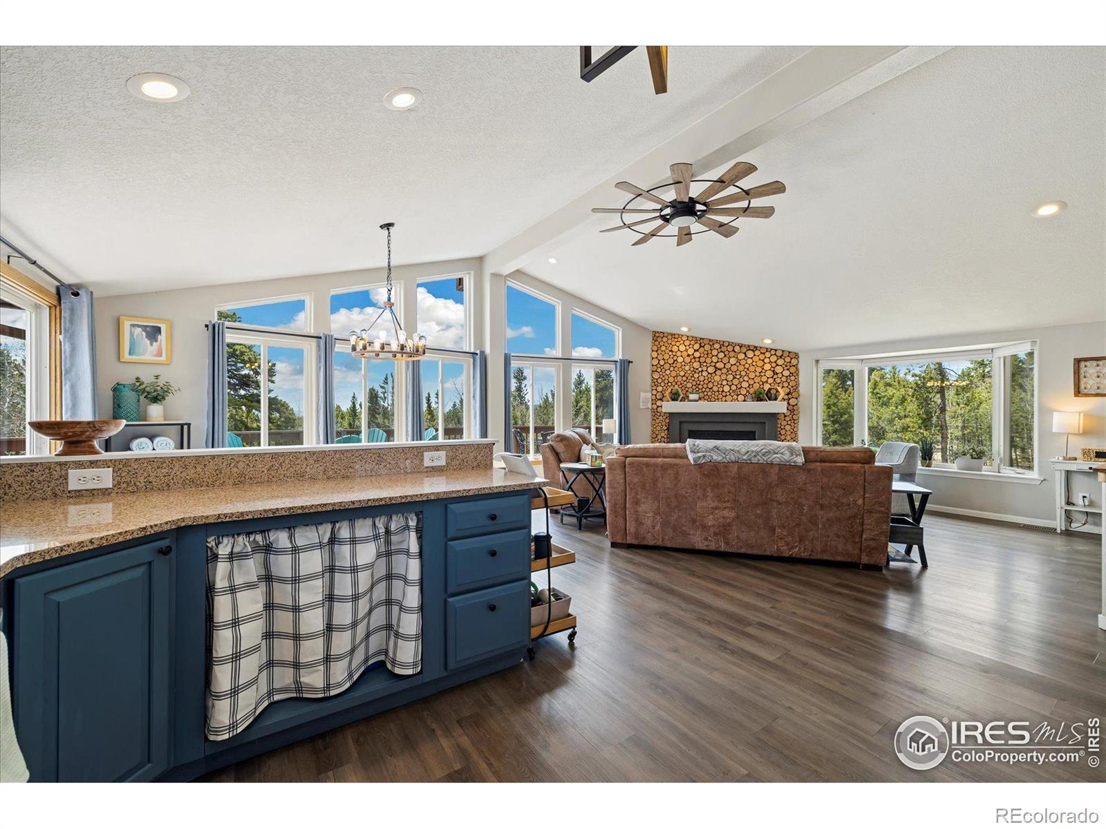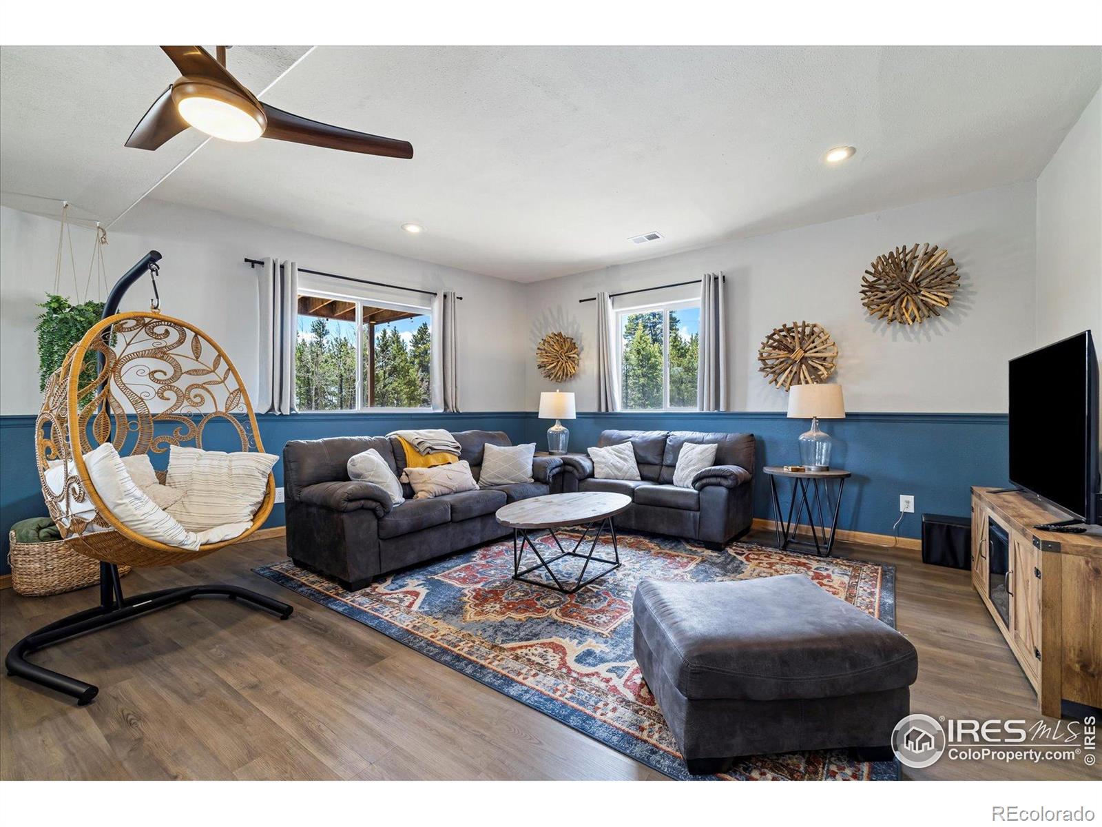 LENDER INCENTIVE with a preferred lender of listing agent - read Broker Remarks! Tucked on 2.5 private acres, this 4-bed, 3-bath mountain home offers a blend of rustic charm and modern style-perfect as a full-time residence, weekend retreat, or short-term rental. The open main floor features a kitchen with a buffet ledge to the dining area and opens to a large deck, great for grilling and mountain sunsets. The living room has a cozy wood-burning fireplace, and the primary suite includes a jetted tub and private balcony. The bright garden level has two large bedrooms, full bath, and a flexible rec/lounge space. Outside, you'll find a 7-person hot tub, whimsical stick huts, fenced dog yard, and frequent wildlife sightings. A 3-car garage, Level 2 EV charger, and ample parking complete the package. Proven income potential (see broker remarks) and recently replaced septic system, approved to host 10 guests. Fish at Foxtail Pines which is stocked annually for residents. Whether you're looking to live, host, or unwind-this home invites you to enjoy true Colorado mountain living.