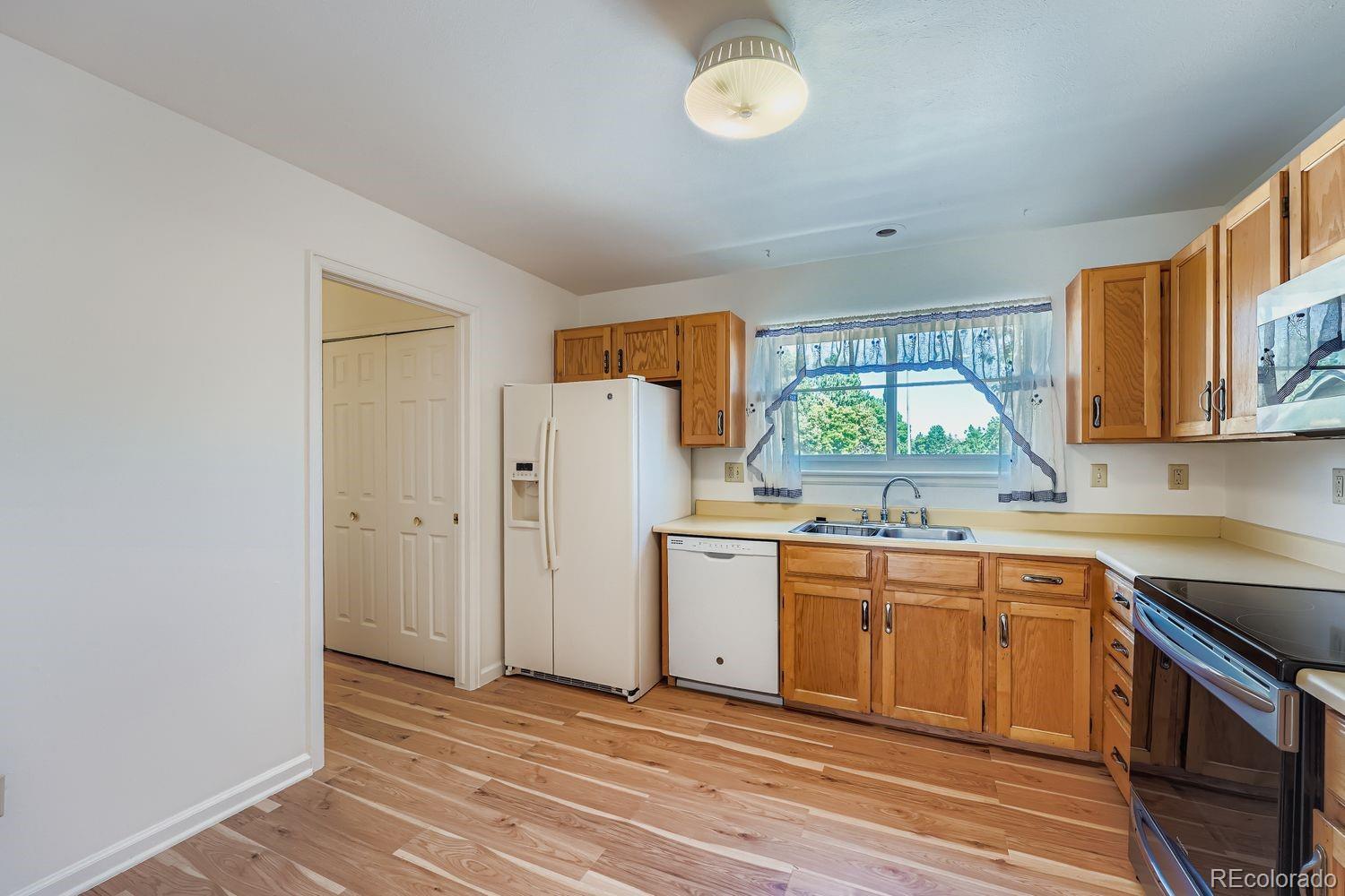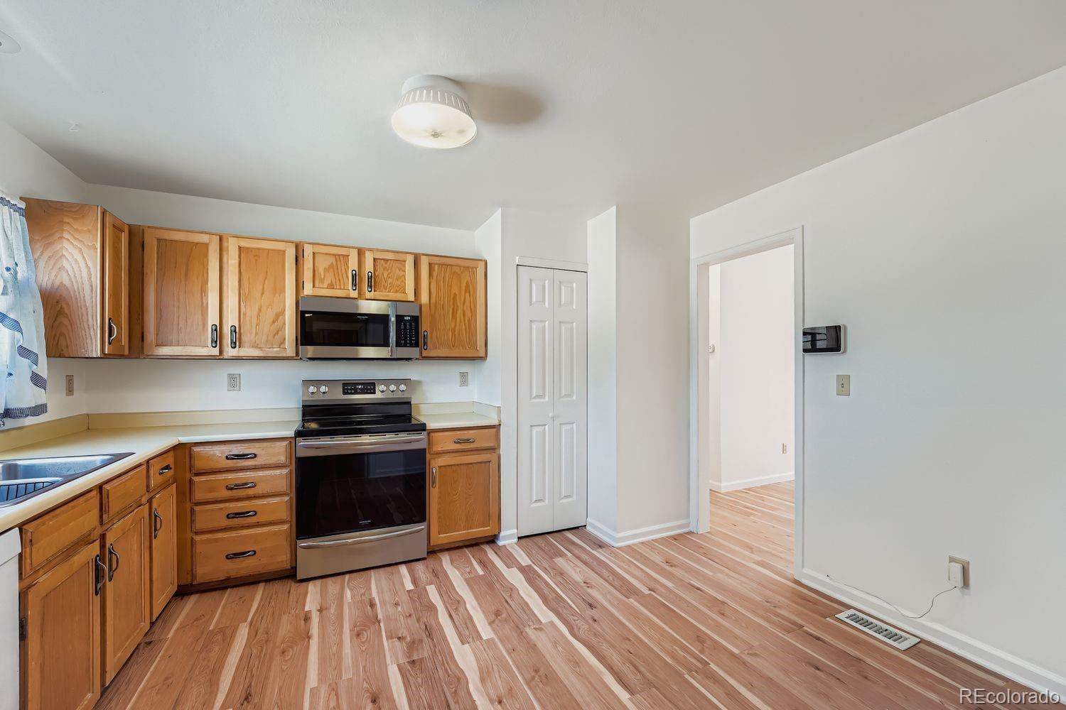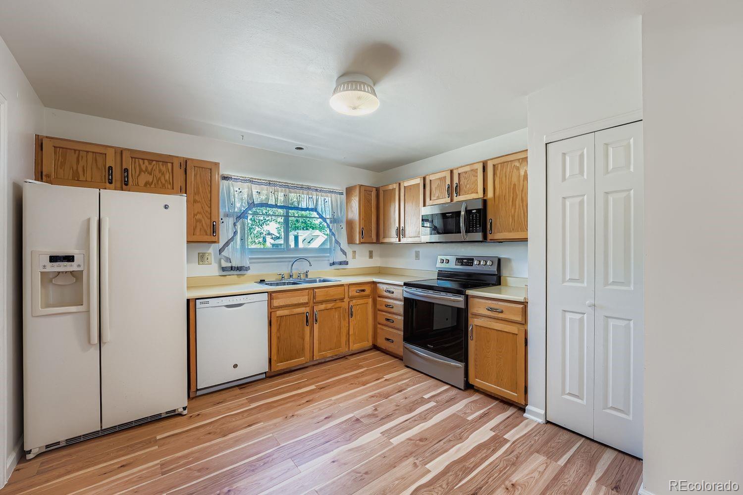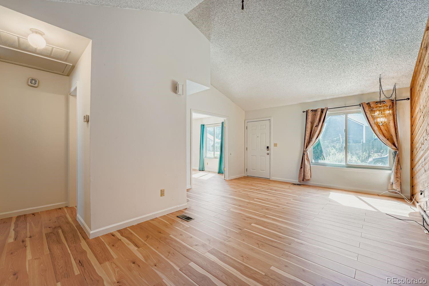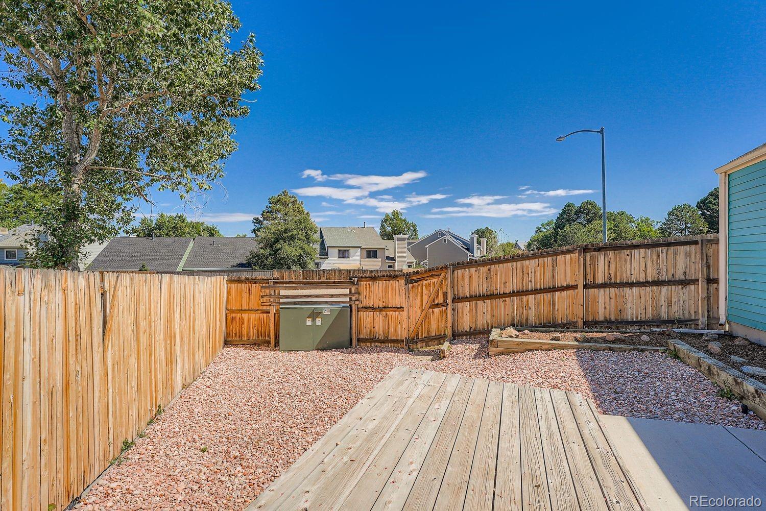 Welcome to this charming 2-bedroom, 1-bathroom end-unit townhome with no HOA! Situated on a spacious corner lot, this home offers a fully fenced backyard with a concrete patio and wood deck--ideal for entertaining or weekend BBQs. The low-maintenance xeriscaped yard includes planter boxes that can easily be converted into a garden space. Enjoy the convenience of an attached one-car garage, plus plenty of on-street parking for guests. Inside, you'll find an open living and dining area with vaulted ceilings, fresh paint, and updated flooring--truly move-in ready! The eat-in kitchen offers a small pantry, generous cabinet and counter space, and includes all appliances. A dedicated laundry room comes complete with a washer and dryer. The versatile second bedroom can be used as a home office, playroom, or flex space to suit your needs. Additional highlights include: Air Conditioning (2019), furnace (2019), roof (circa 2023), newer stove and microwave, interior paint (8/2025), flooring (8/2025), double pane windows (2023) electrical panel (8/2025), newer garage door opener, and a newer backyard fence. Come see it for yourself!