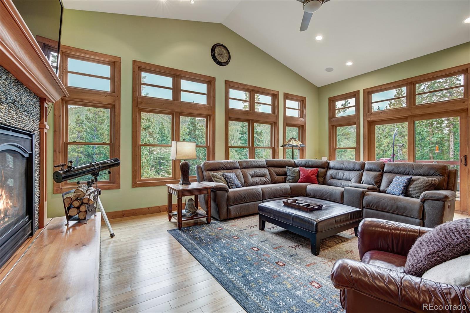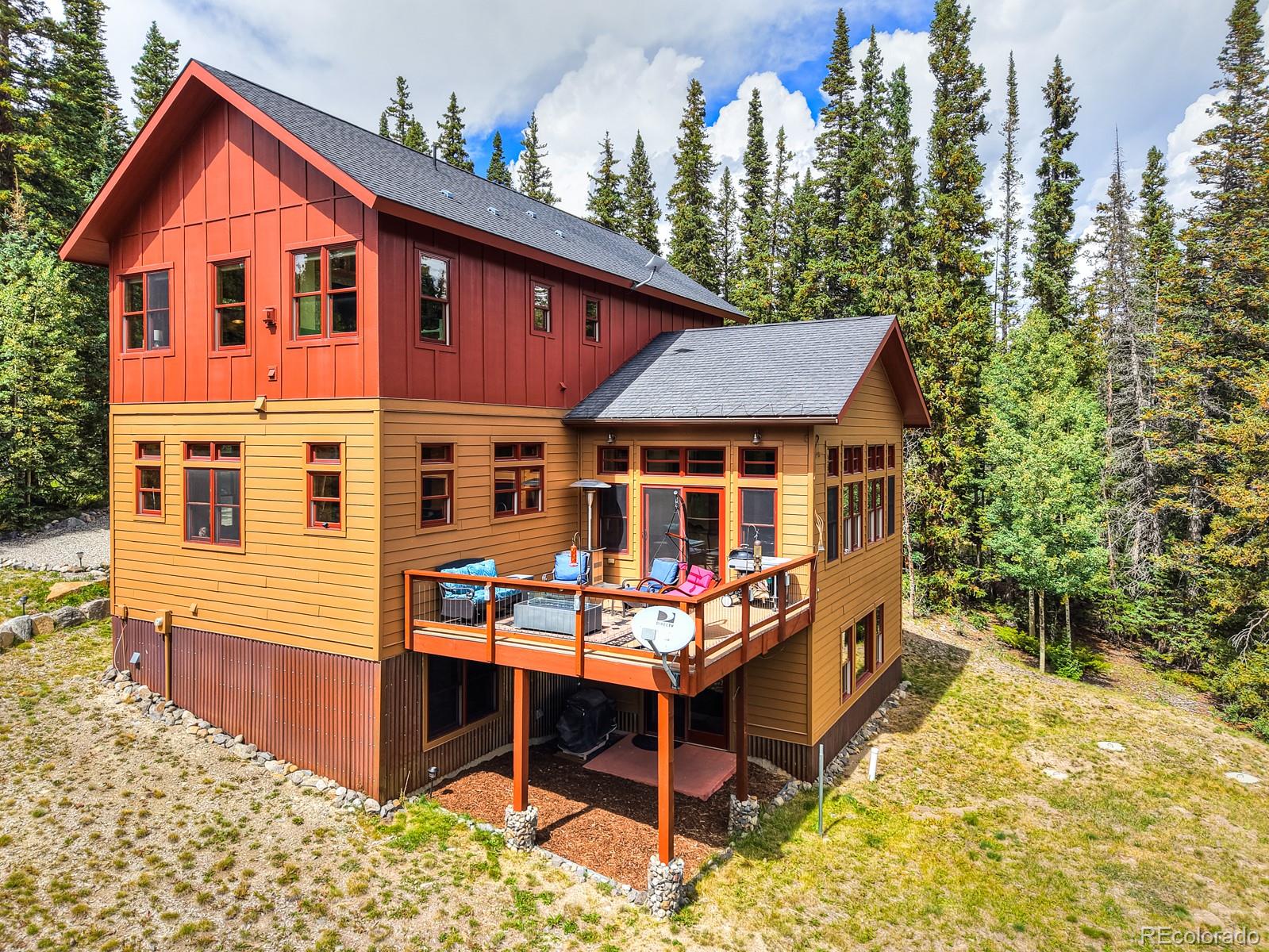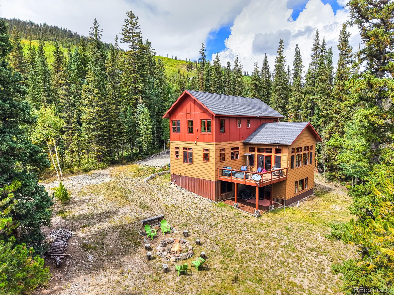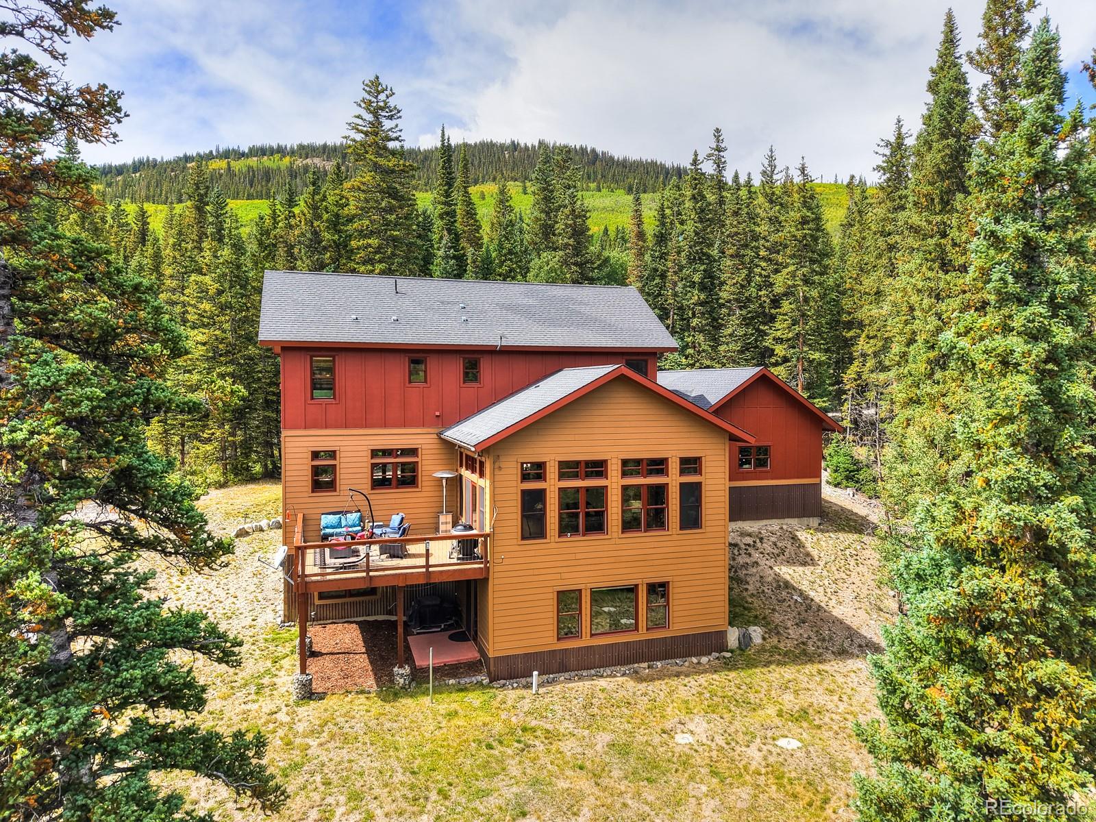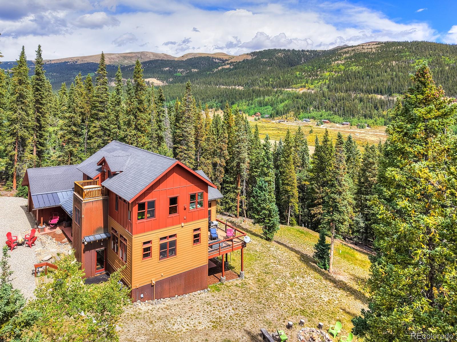 Wake up to panoramic mountain views and sip coffee on your private balcony as moose wander through the trees. Set on 1.33 secluded acres, this pristine custom retreat combines mountain charm with modern luxury, uniquely designed for entertaining and comfortable living. The home is filled with natural light, built with energy-efficient 2x6 wall construction, double-pane windows, and bamboo flooring with radiant heat. The custom kitchen is a centerpiece with honed granite countertops, gas stove, Advantium oven, wet and dry bars, built-in window seats, and room for a large dining table. The adjoining family room features vaulted ceilings, a gas fireplace, and access to the 18'x16' south-facing deck with composite decking and custom wire railings for unobstructed views. Upstairs, the primary suite includes a dual-sided fireplace, hydrotherapy tub, and spa-like bath. Two additional bedrooms, a full bath, laundry, and a balcony with hot tub complete the level. The private guest apartment/suite with full kitchen, laundry room, and covered patio perfect for visiting family or generating rental income with the septic system permitted for 5 bedrooms. Projected STR income of $120K/year makes this not just a dream home, but a smart investment. The oversized heated 2-car garage includes a pet wash and direct entry into the mudroom, while extensive outdoor parking provides room for all your mountain toys. Natural gas service means no propane hassle. Exterior upgrades include full paint in Aug 2023 with Sherwin Williams' 25-year Emerald line and fresh wood trim stain in July 2025. The wide-open backyard is ideal for gatherings with stunning views, wildlife sightings, and a large fire pit. With 5 bedrooms, 4.5 bathrooms, 2 kitchens, 2 laundry rooms, 2 fireplaces, an office, and a study/flex room, this home offers unmatched versatility.Just 25 minutes to Breckenridge - ski in the morning, soak in your private hot tub by evening. Nothing left to do but move in and enjoy!
