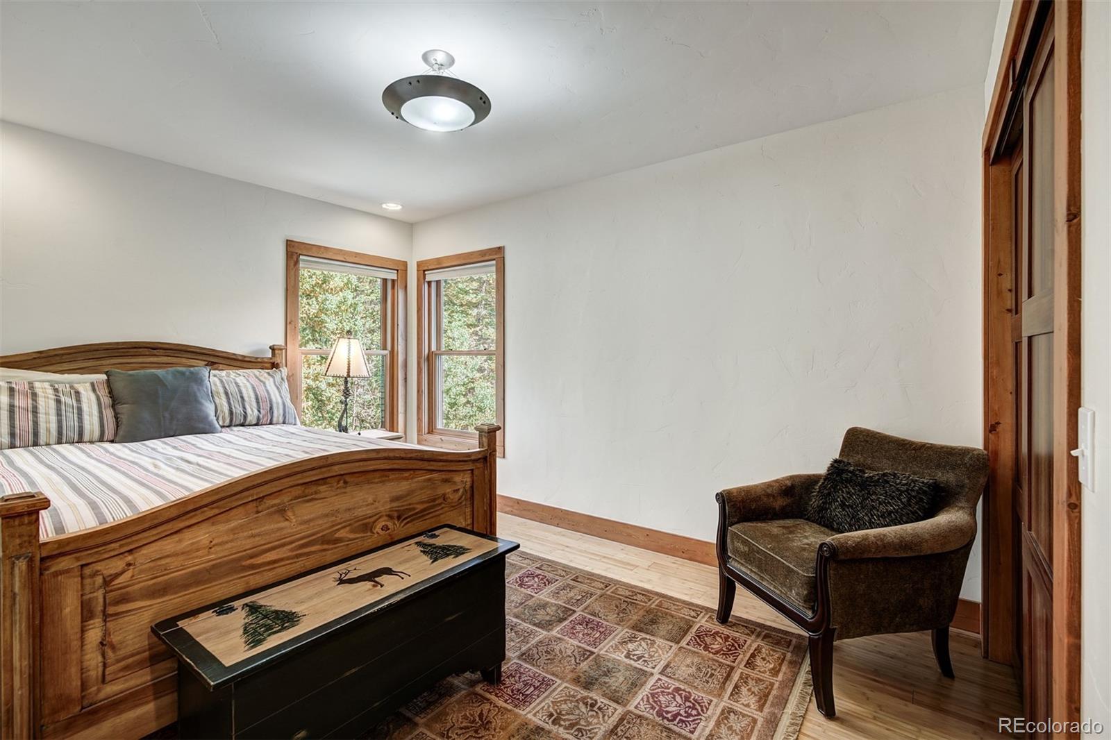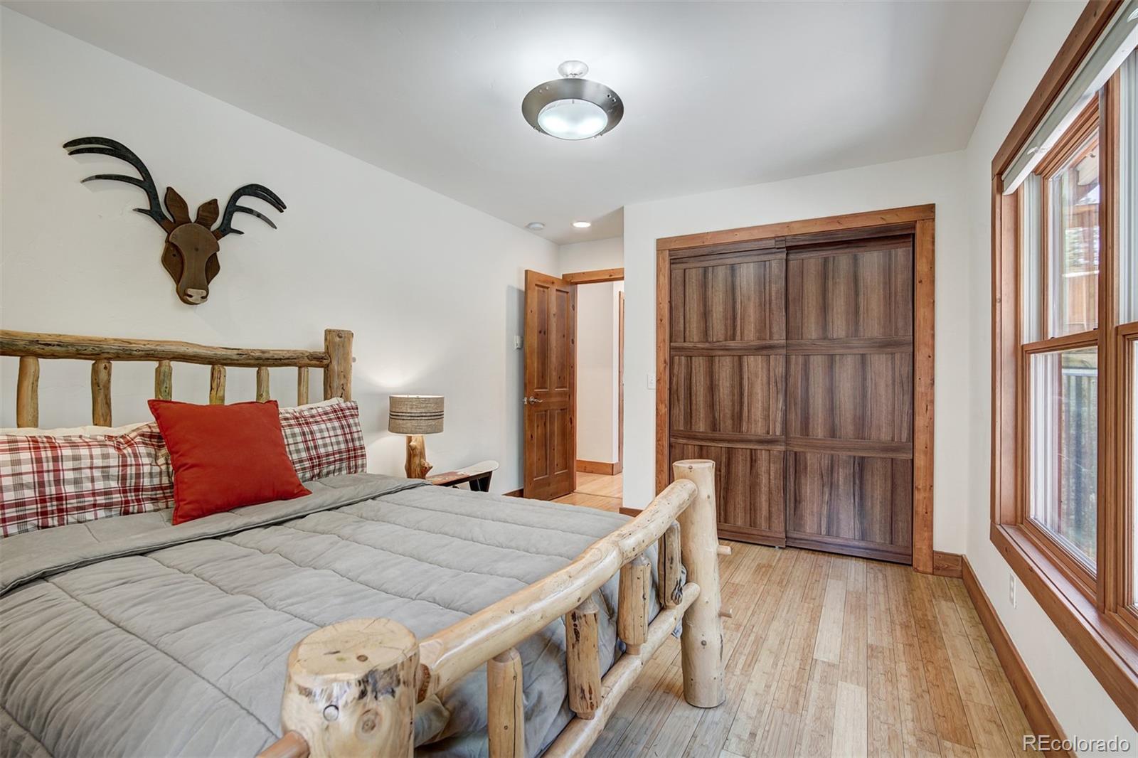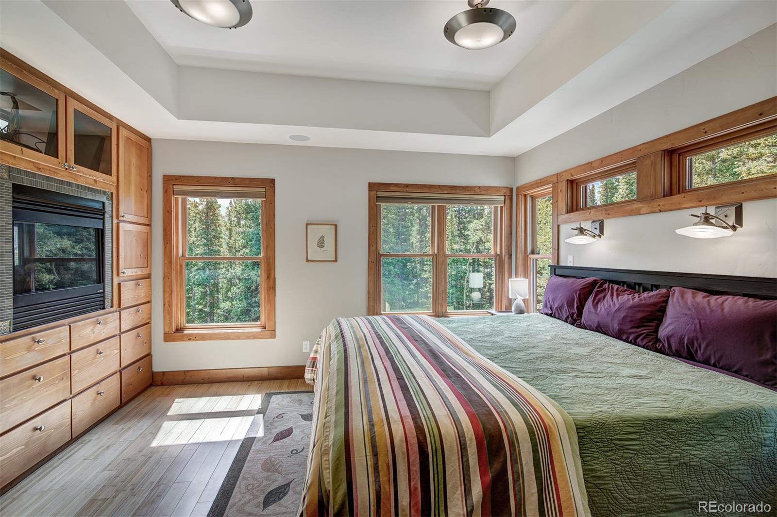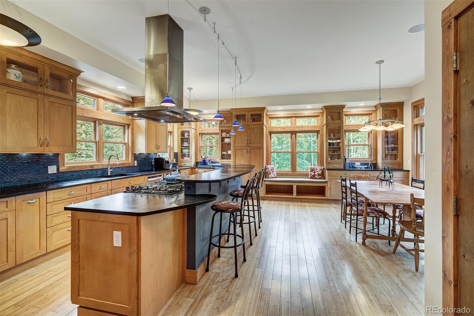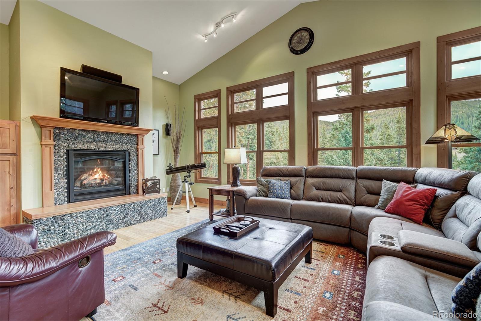 Wake up to panoramic mountain views and sip coffee on your private balcony as moose wander through the trees. Set on 1.33 secluded acres, this pristine custom retreat combines mountain charm with modern luxury, uniquely designed for entertaining and comfortable living. The home is filled with natural light, built with energy-efficient 2x6 wall construction, double-pane windows, and bamboo flooring with radiant heat. The custom kitchen is a centerpiece with honed granite countertops, gas stove, Advantium oven, wet and dry bars, built-in window seats, and room for a large dining table. The adjoining family room features vaulted ceilings, a gas fireplace, and access to the 18'x16' south-facing deck with composite decking and custom wire railings for unobstructed views. Upstairs, the primary suite includes a dual-sided fireplace, hydrotherapy tub, and spa-like bath. Two additional bedrooms, a full bath, laundry, and a balcony with hot tub complete the level. The private guest apartment/suite with full kitchen, laundry room, and covered patio perfect for visiting family or generating rental income with the septic system permitted for 5 bedrooms. Projected STR income of $120K/year makes this not just a dream home, but a smart investment. The oversized heated 2-car garage includes a pet wash and direct entry into the mudroom, while extensive outdoor parking provides room for all your mountain toys. Natural gas service means no propane hassle. Exterior upgrades include full paint in Aug 2023 with Sherwin Williams' 25-year Emerald line and fresh wood trim stain in July 2025. The wide-open backyard is ideal for gatherings with stunning views, wildlife sightings, and a large fire pit. With 5 bedrooms, 4.5 bathrooms, 2 kitchens, 2 laundry rooms, 2 fireplaces, an office, and a study/flex room, this home offers unmatched versatility.Just 25 minutes to Breckenridge - ski in the morning, soak in your private hot tub by evening. Nothing left to do but move in and enjoy!