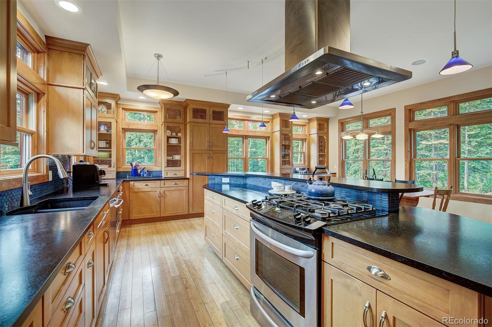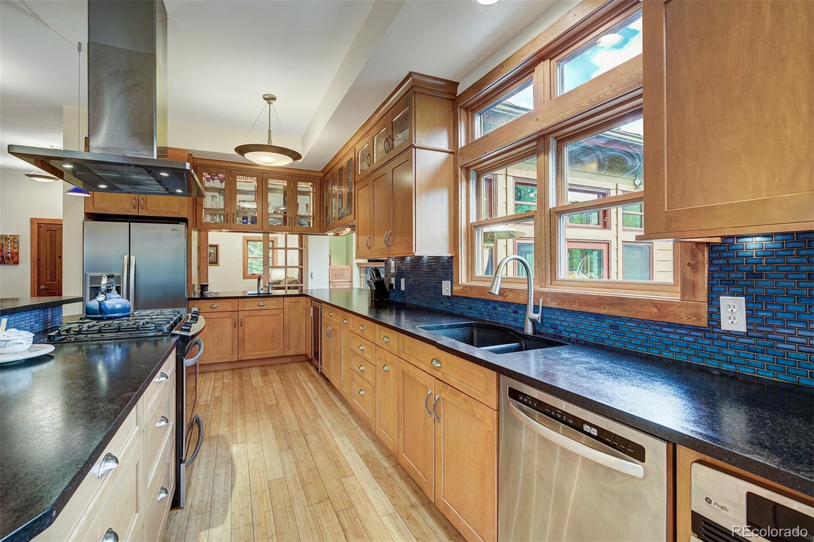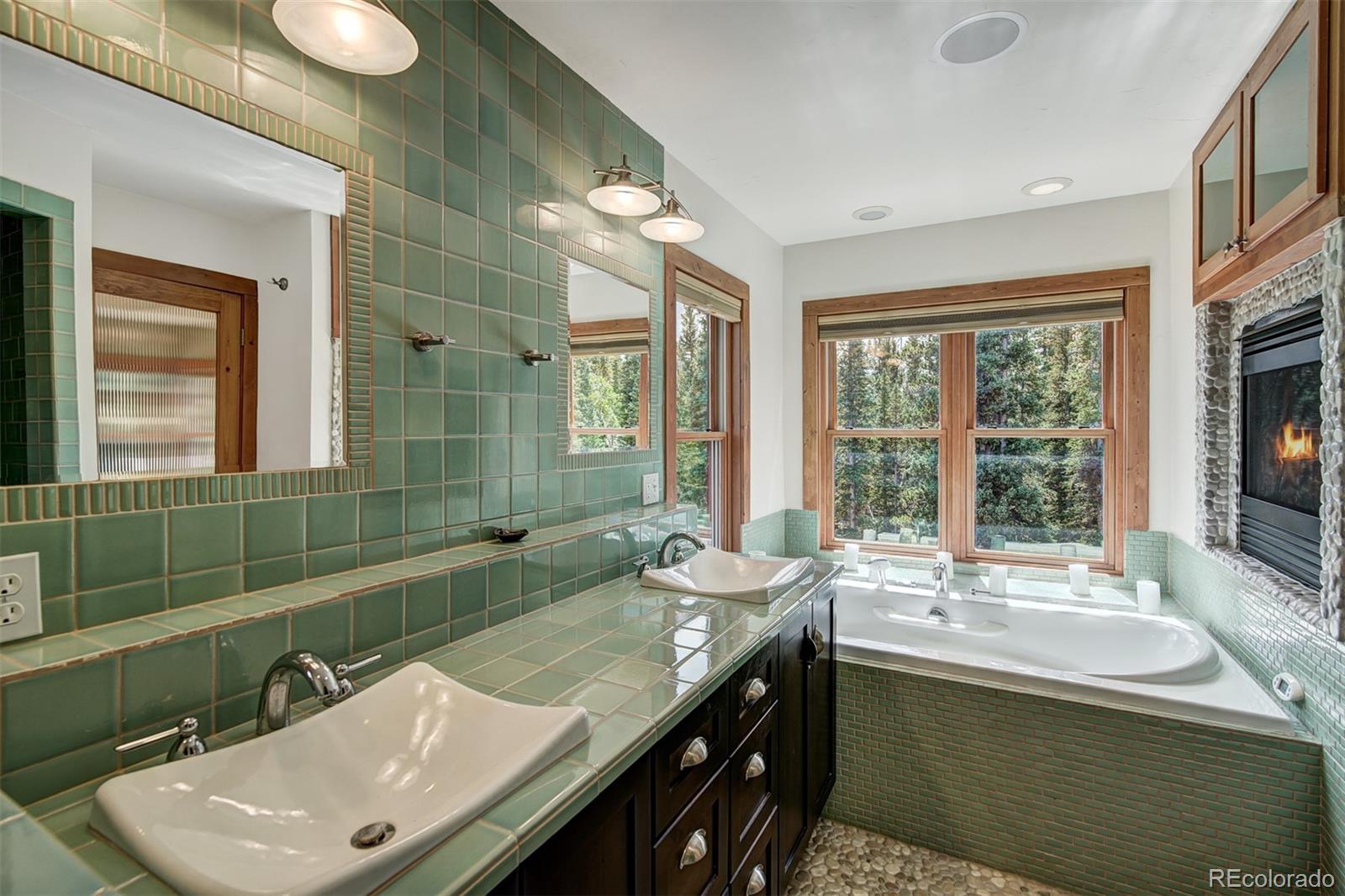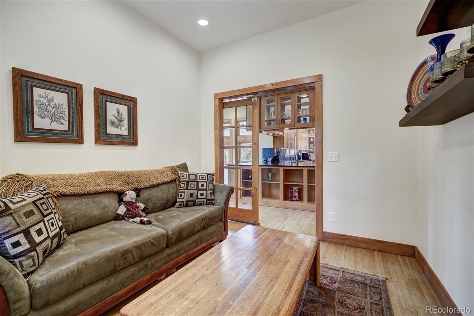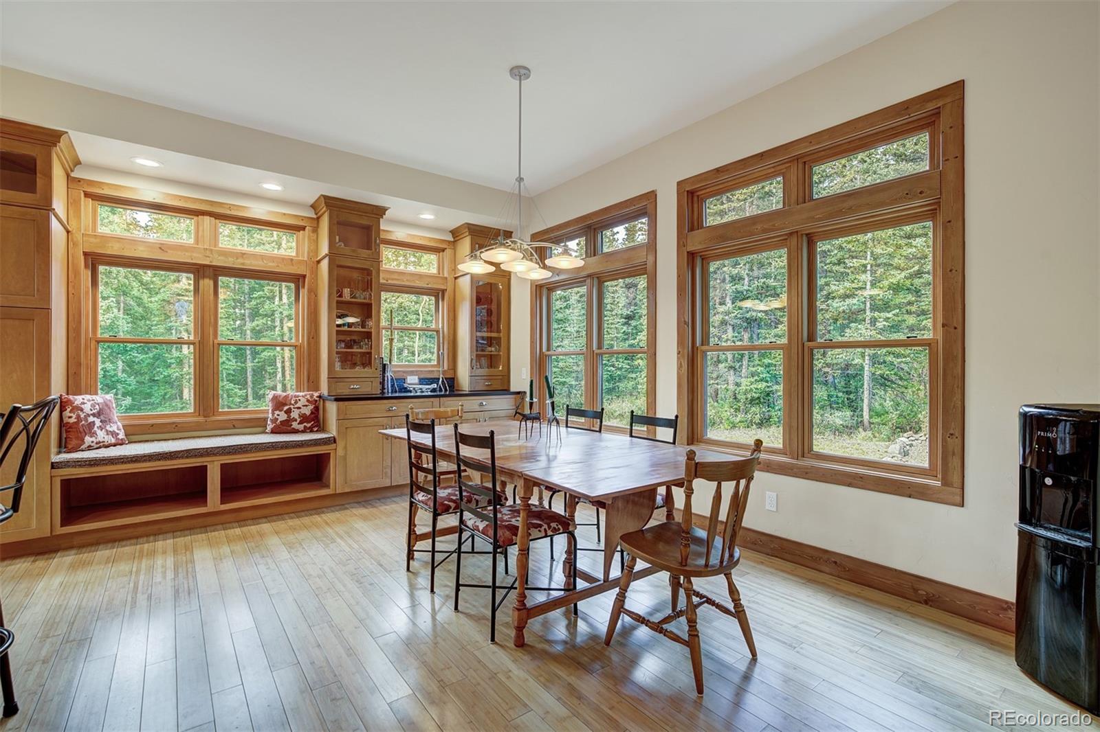 Wake up to panoramic mountain views and sip coffee on your private balcony as moose wander through the trees. Set on 1.33 secluded acres, this pristine custom retreat combines mountain charm with modern luxury, uniquely designed for entertaining and comfortable living. The home is filled with natural light, built with energy-efficient 2x6 wall construction, double-pane windows, and bamboo flooring with radiant heat. The custom kitchen is a centerpiece with honed granite countertops, gas stove, Advantium oven, wet and dry bars, built-in window seats, and room for a large dining table. The adjoining family room features vaulted ceilings, a gas fireplace, and access to the 18'x16' south-facing deck with composite decking and custom wire railings for unobstructed views. Upstairs, the primary suite includes a dual-sided fireplace, hydrotherapy tub, and spa-like bath. Two additional bedrooms, a full bath, laundry, and a balcony with hot tub complete the level. The private guest apartment/suite with full kitchen, laundry room, and covered patio perfect for visiting family or generating rental income with the septic system permitted for 5 bedrooms. Projected STR income of $120K/year makes this not just a dream home, but a smart investment. The oversized heated 2-car garage includes a pet wash and direct entry into the mudroom, while extensive outdoor parking provides room for all your mountain toys. Natural gas service means no propane hassle. Exterior upgrades include full paint in Aug 2023 with Sherwin Williams' 25-year Emerald line and fresh wood trim stain in July 2025. The wide-open backyard is ideal for gatherings with stunning views, wildlife sightings, and a large fire pit. With 5 bedrooms, 4.5 bathrooms, 2 kitchens, 2 laundry rooms, 2 fireplaces, an office, and a study/flex room, this home offers unmatched versatility.Just 25 minutes to Breckenridge - ski in the morning, soak in your private hot tub by evening. Nothing left to do but move in and enjoy!