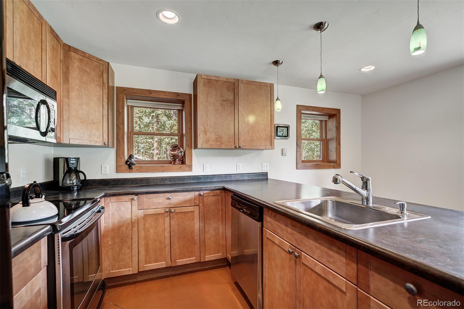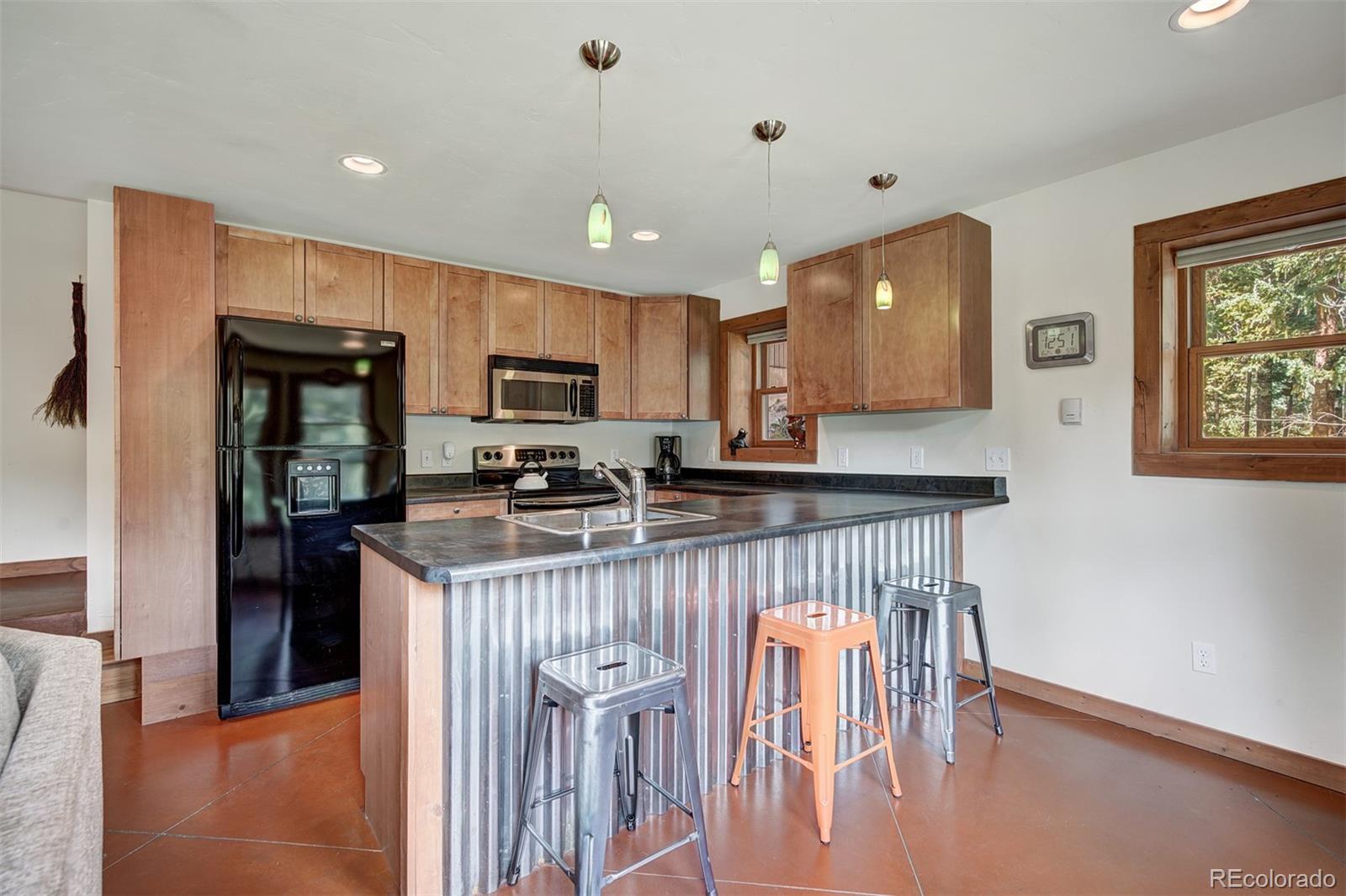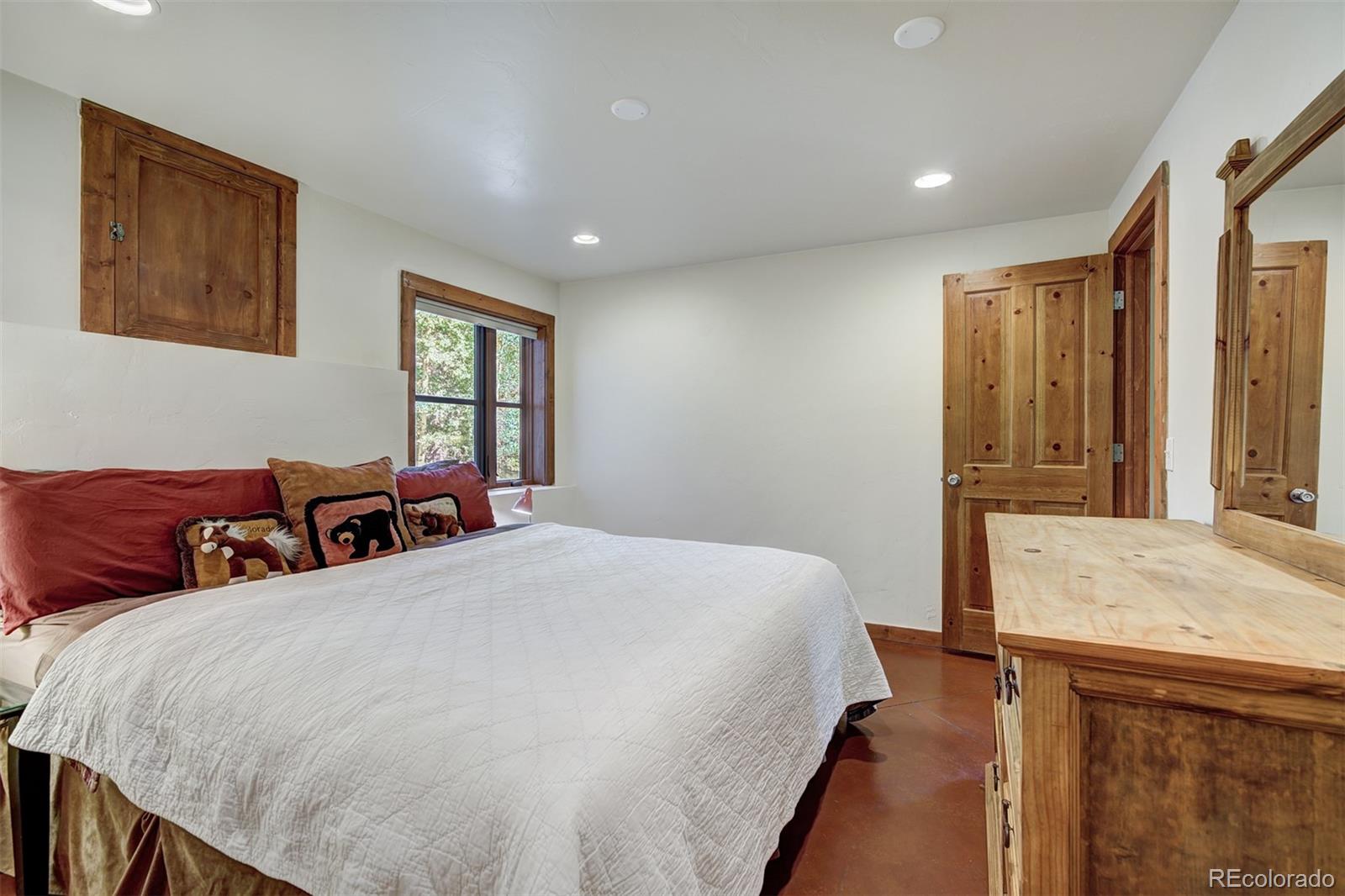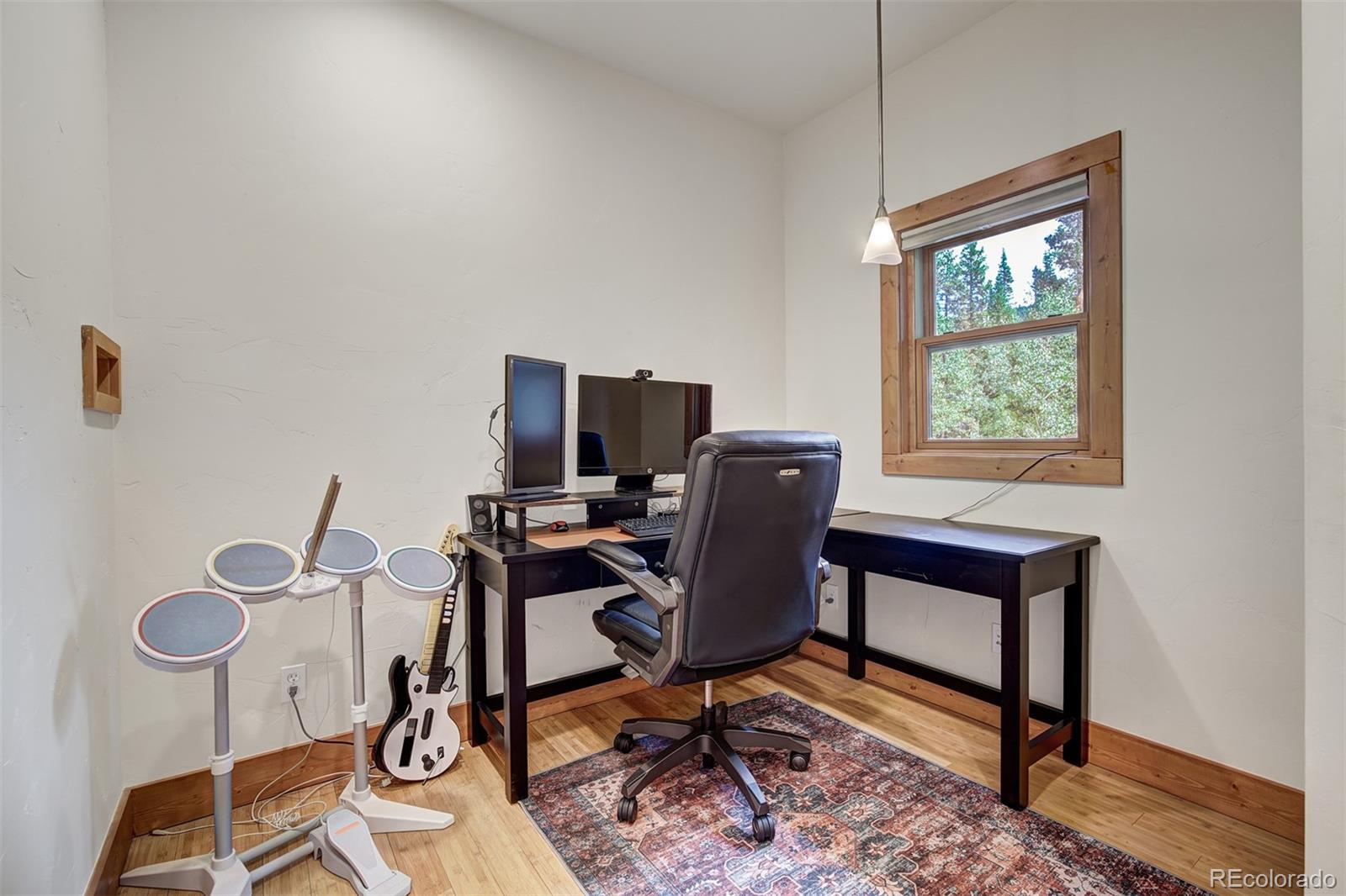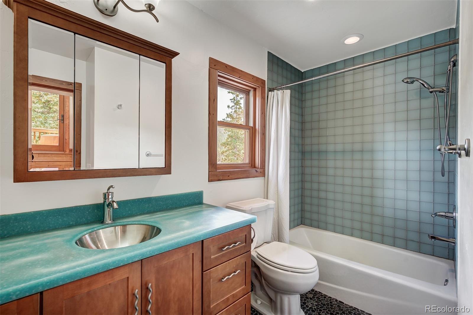 Wake up to panoramic mountain views and sip coffee on your private balcony as moose wander through the trees. Set on 1.33 secluded acres, this pristine custom retreat combines mountain charm with modern luxury, uniquely designed for entertaining and comfortable living. The home is filled with natural light, built with energy-efficient 2x6 wall construction, double-pane windows, and bamboo flooring with radiant heat. The custom kitchen is a centerpiece with honed granite countertops, gas stove, Advantium oven, wet and dry bars, built-in window seats, and room for a large dining table. The adjoining family room features vaulted ceilings, a gas fireplace, and access to the 18'x16' south-facing deck with composite decking and custom wire railings for unobstructed views. Upstairs, the primary suite includes a dual-sided fireplace, hydrotherapy tub, and spa-like bath. Two additional bedrooms, a full bath, laundry, and a balcony with hot tub complete the level. The private guest apartment/suite with full kitchen, laundry room, and covered patio perfect for visiting family or generating rental income with the septic system permitted for 5 bedrooms. Projected STR income of $120K/year makes this not just a dream home, but a smart investment. The oversized heated 2-car garage includes a pet wash and direct entry into the mudroom, while extensive outdoor parking provides room for all your mountain toys. Natural gas service means no propane hassle. Exterior upgrades include full paint in Aug 2023 with Sherwin Williams' 25-year Emerald line and fresh wood trim stain in July 2025. The wide-open backyard is ideal for gatherings with stunning views, wildlife sightings, and a large fire pit. With 5 bedrooms, 4.5 bathrooms, 2 kitchens, 2 laundry rooms, 2 fireplaces, an office, and a study/flex room, this home offers unmatched versatility.Just 25 minutes to Breckenridge - ski in the morning, soak in your private hot tub by evening. Nothing left to do but move in and enjoy!