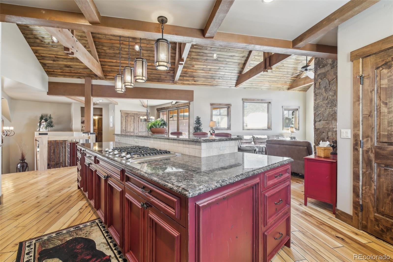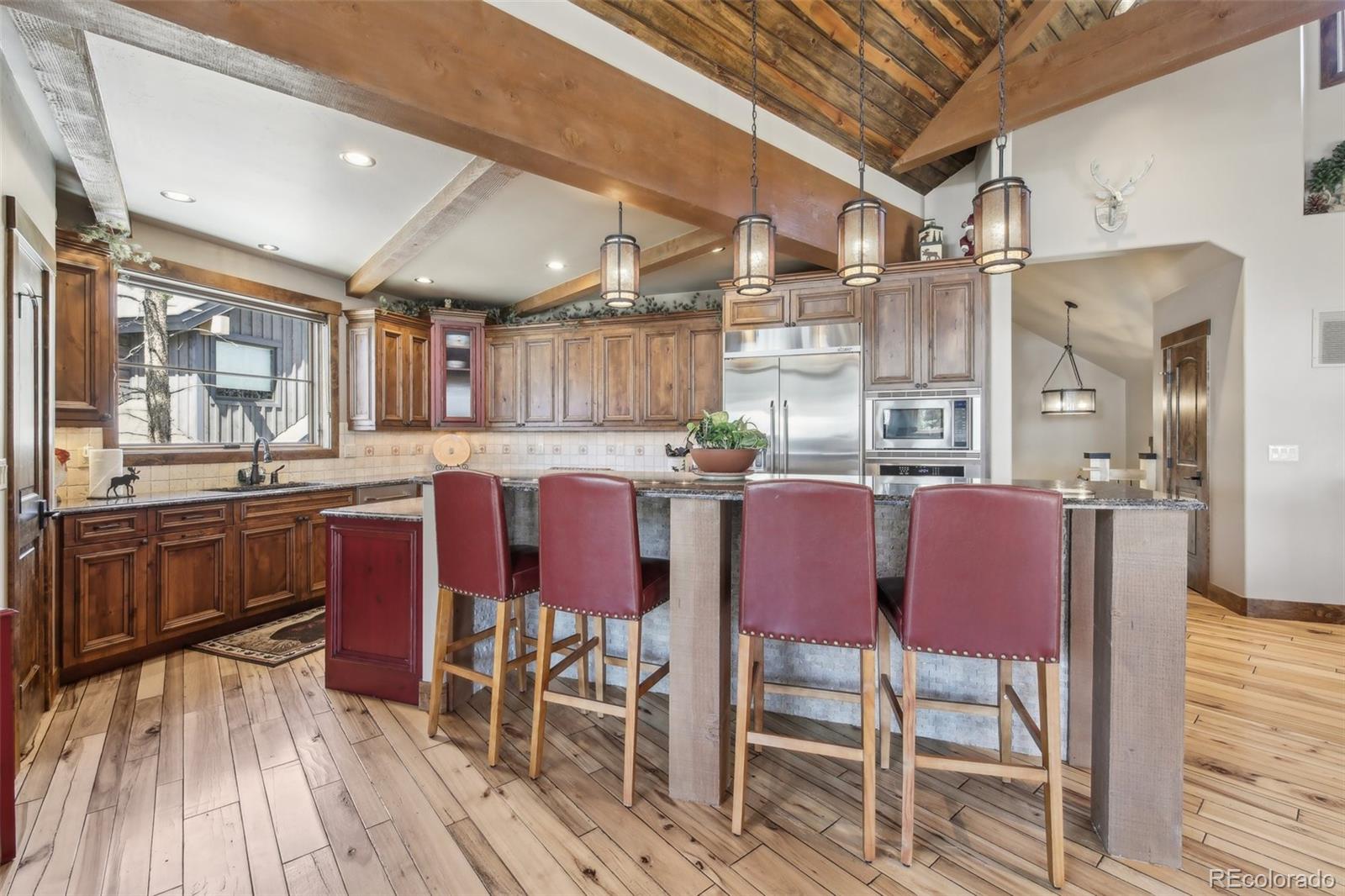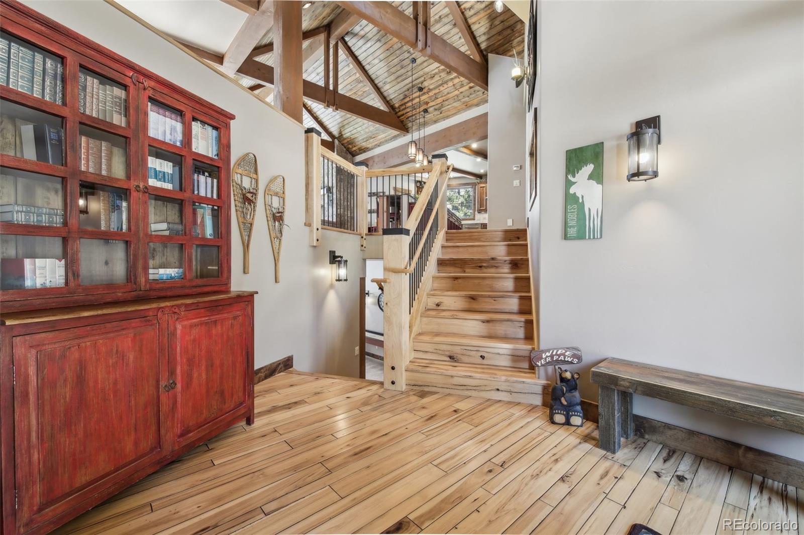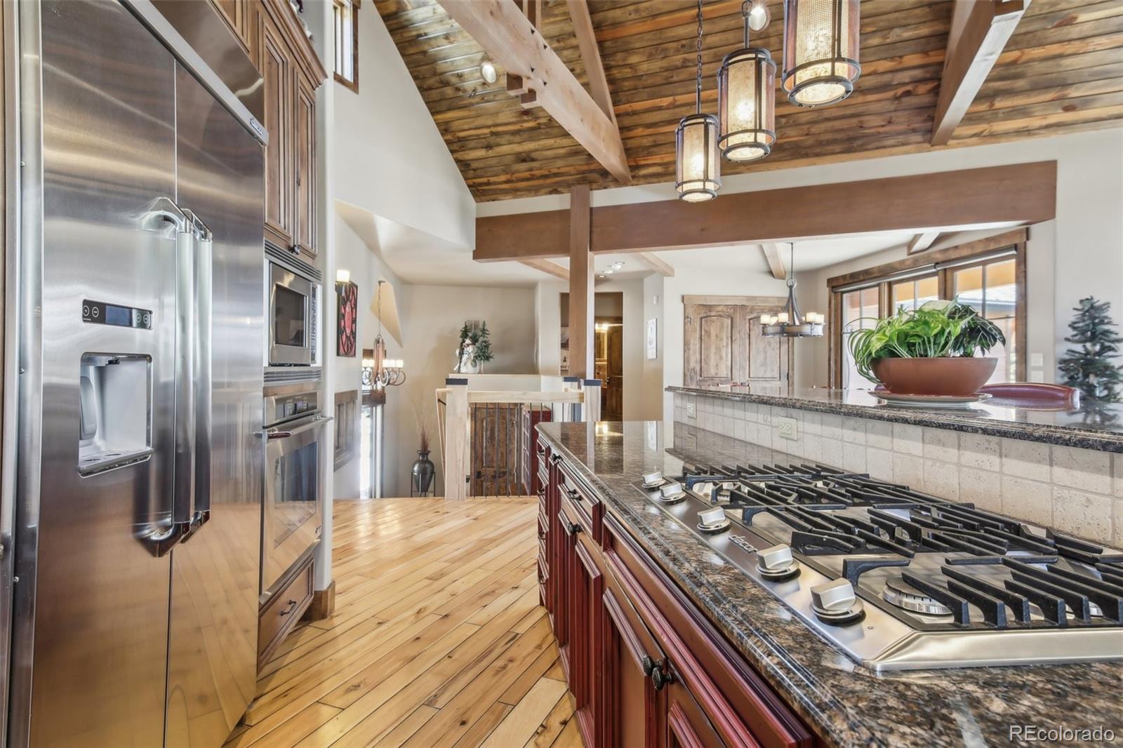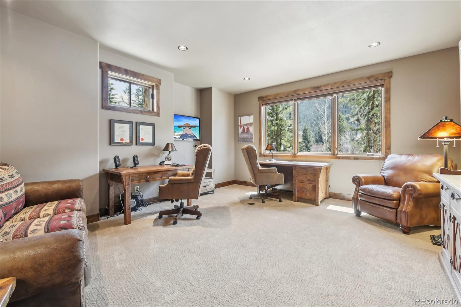 Located just an 8-minute walk to the Keystone Gondola, this home offers unmatched convenience for ski enthusiasts. Unlike most homes in Keystone, this property boasts a rare combination of riverfront views and direct access to the slopes, making it a truly unique mountain retreat. This custom home features massive timber frame construction and natural Moss Rock masonry, both inside and out. Enjoy stunning views to the ski slopes and the Snake River. The open floorplan is anchored with hickory hardwood floors, soaring vaulted ceilings and spectacular fireplaces. The chefs' kitchen features custom cabinetry, premium Dacor appliances, a walk-in pantry, and an oversized granite island. This space flows seamlessly into a spacious dining area and opens onto an outdoor deck. The elegant Primary Suite on the elevated main floor features a luxurious bath with twin vanities, steam shower, deep soaking tub and walk in closet. Bath is attached to the vaulted primary bedroom with wall of windows viewing the Snake River. Three more finely appointed suites plus an Office with hall bath continue the private spaces for everyone to enjoy privacy and solace. The walk-out lower level second living area boasts a charming wet bar, spacious entertaining space with moss rock fireplace, shuffleboard table and outdoor patio with spa. Imagine relaxing in your private spa under the stars after a day on the slopes, or hosting memorable gatherings with friends and family in your inviting living spaces. This home serves as a gateway to endless outdoor adventures, accommodating flexible schedules for all family members. If you're looking for a Resort Home that you can also offer as a Short Term Rental, look no further!
