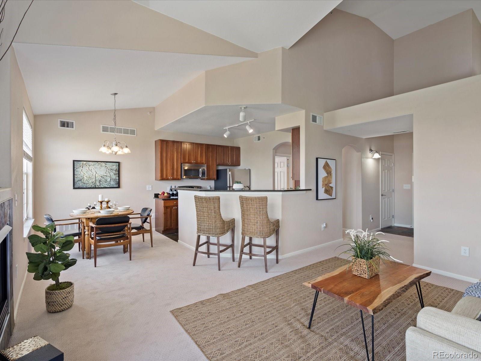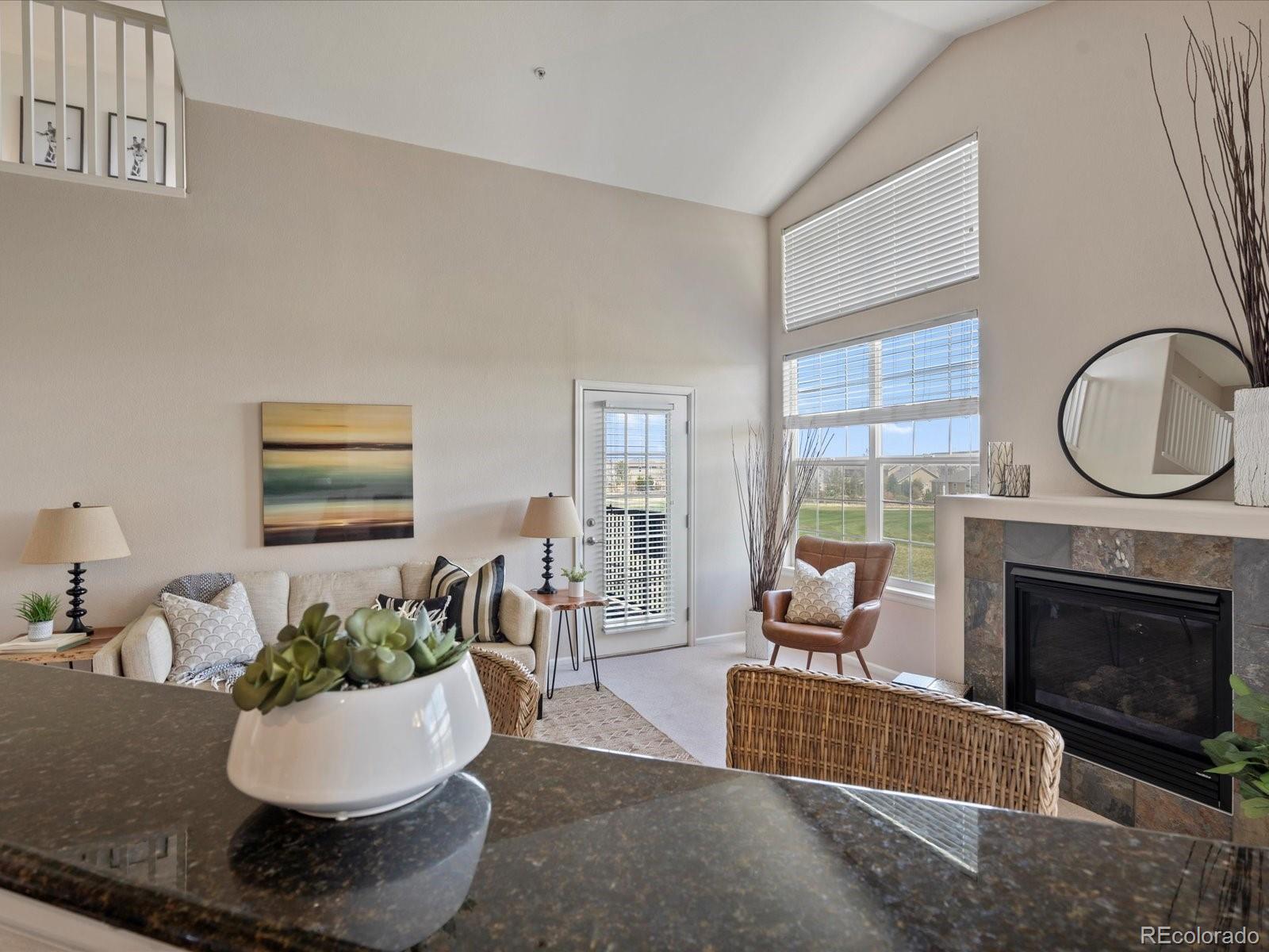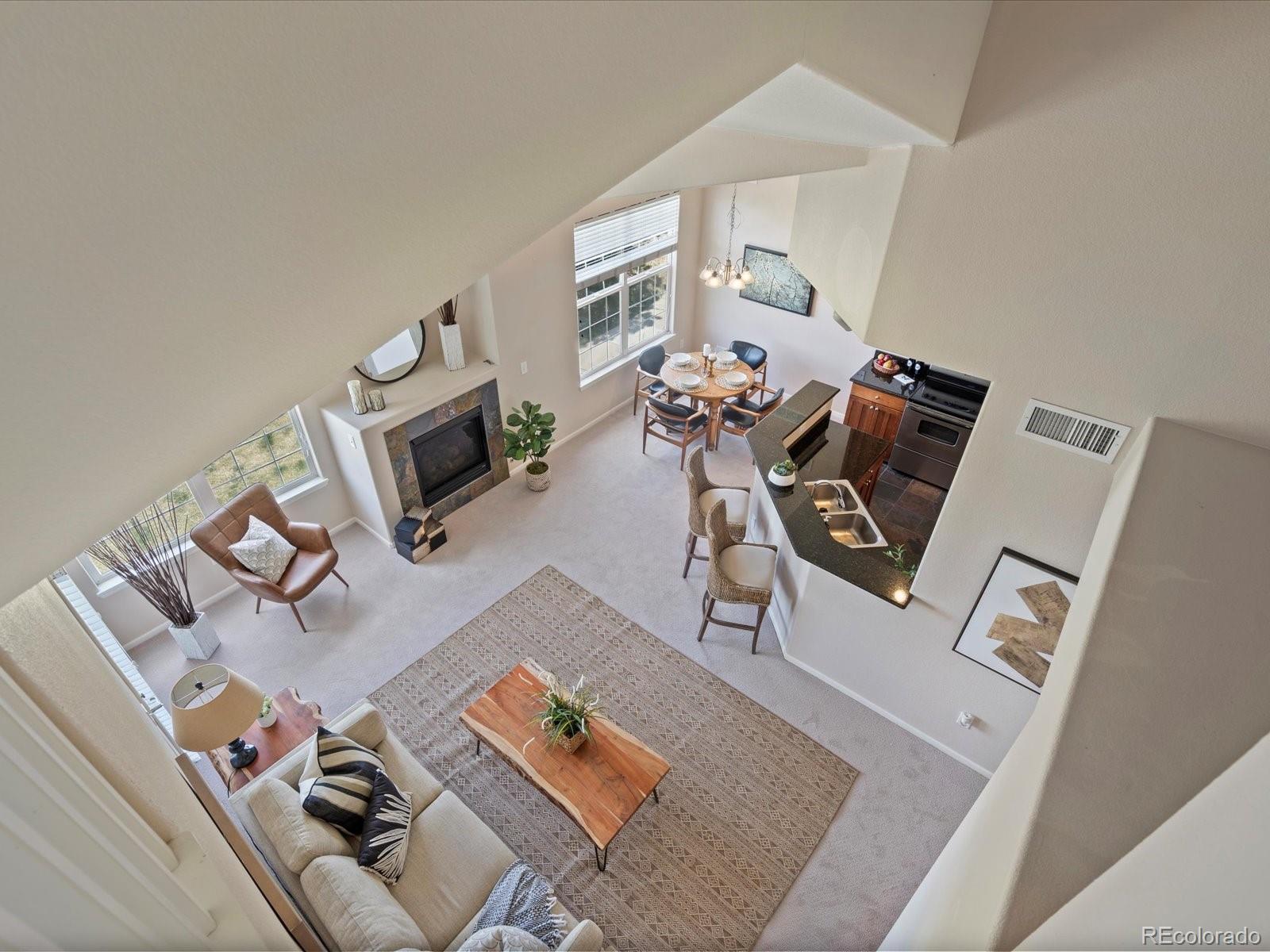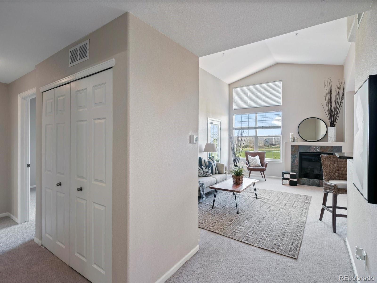 Price reduction! Stunning golf course VIEWS from 2 balconies! Spectacular top floor, corner unit with an abundance of natural light and expansive views of Colorado National Golf Course! This outstanding 3 bed, 3 bath condo offers amazing features including an open floor plan, vaulted ceiling, cozy fireplace, brand NEW carpet and two covered balconies! Lots of storage space with 2 walk-in closets, 2 exterior storage closets, under stair storage, and a large 1-car detached garage. The kitchen is centrally located and has granite countertops, brand new dishwasher and newer, stainless steel appliances.