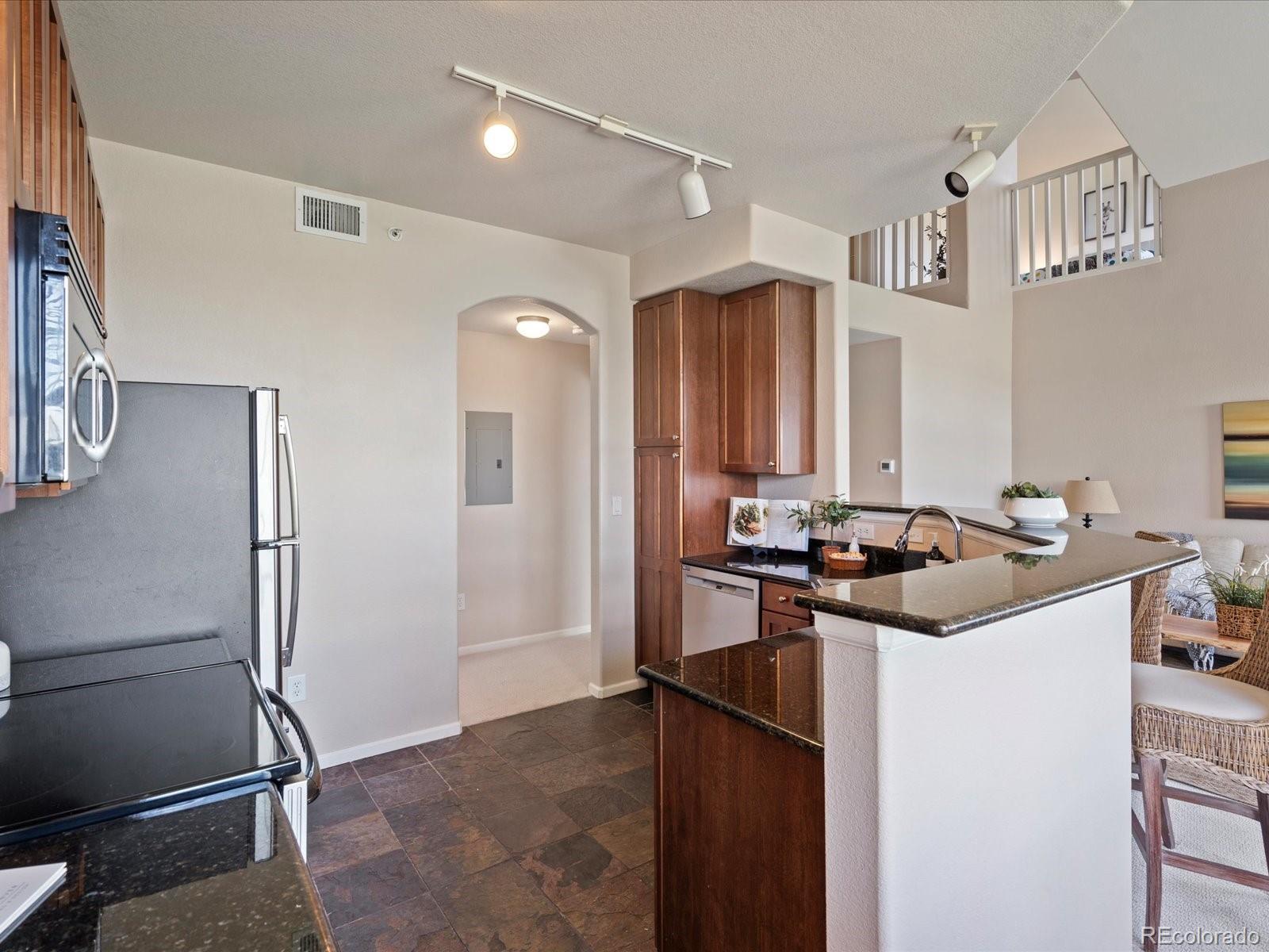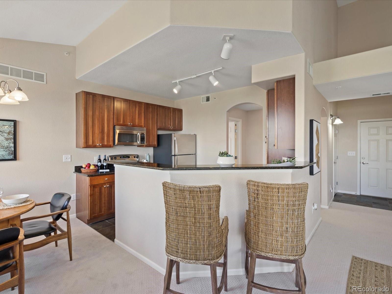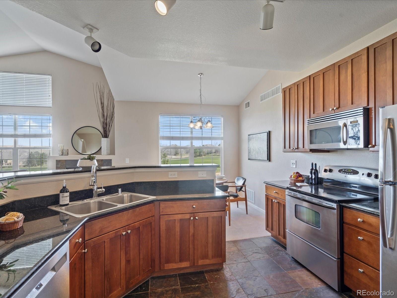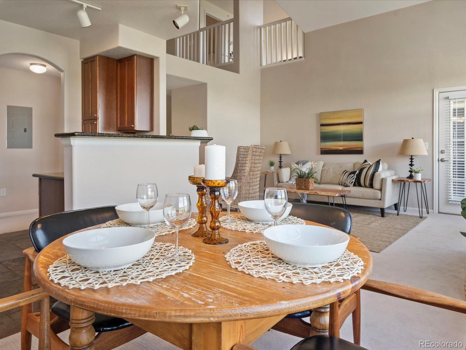 Price reduction! Stunning golf course VIEWS from 2 balconies! Spectacular top floor, corner unit with an abundance of natural light and expansive views of Colorado National Golf Course! This outstanding 3 bed, 3 bath condo offers amazing features including an open floor plan, vaulted ceiling, cozy fireplace, brand NEW carpet and two covered balconies! Lots of storage space with 2 walk-in closets, 2 exterior storage closets, under stair storage, and a large 1-car detached garage. The kitchen is centrally located and has granite countertops, brand new dishwasher and newer, stainless steel appliances.