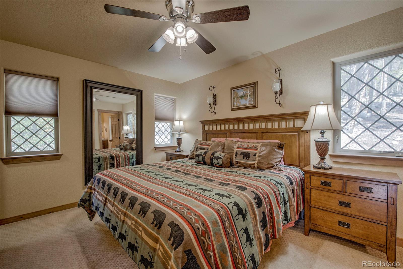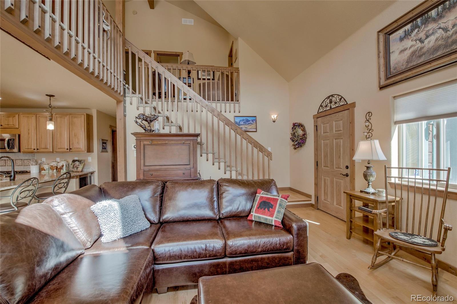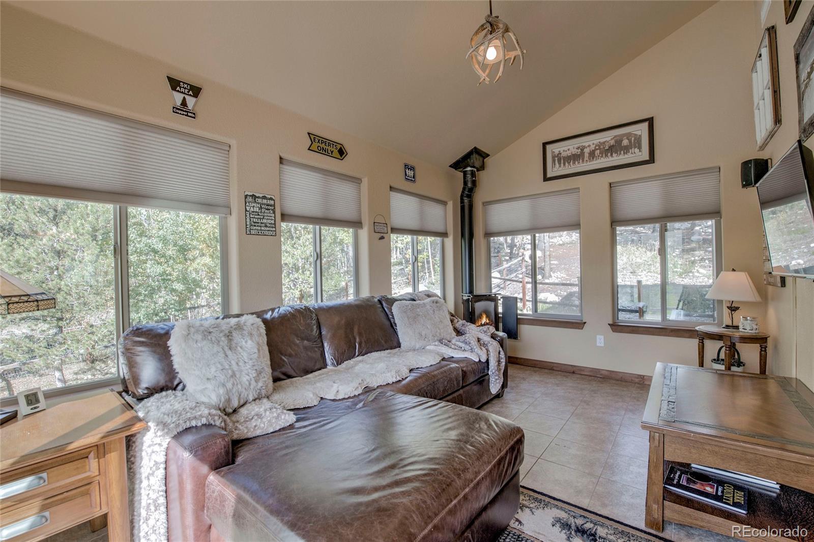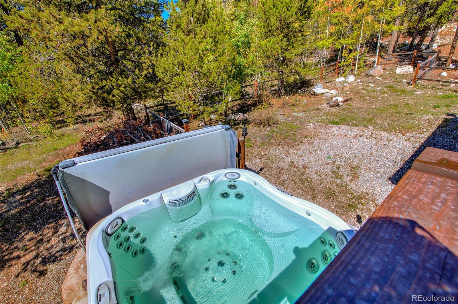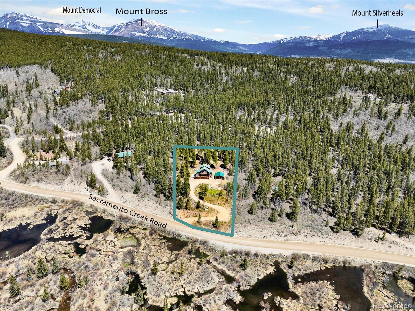 Significant price reduction! Located in lower Valley of the Sun, minutes to Main Street Alma or Fairplay, this custom 3bd/3ba home is the perfect mountain retreat. Overlooking the Sacramento creek the house is tucked up in a lush Aspen and Pine grove, on just over an acre, and barely visible from the road. The entry greets you with a spacious mudroom for all your outdoor gear. The living room features a wall of windows, gas fireplace and open floor plan. Fully furnished for a rustic/mountain modern feel, this turnkey home is move-in ready. From the fully appointed kitchen, bedrooms, baths and 3 separate living spaces, everything you need to begin your mountain lifestyle is waiting for you here. Beyond the kitchen is a sunroom with a gas woodstove and entry to the fenced backyard and hot tub. The en-suite primary bedroom is on the main floor and features a full bath with double vanity and glass enclosed shower. Upstairs 2 bedrooms, a full bath and loft area provide a 3rd living room/office. The home has a whole house generator for peace of mind. The oversized, detached 3 car garage provides additional storage. Park County allows for Short term rentals, so whether you are looking for a primary residence, weekend retreat or income property, this home brings it all! Make plans to tour this idyllic mountain home.