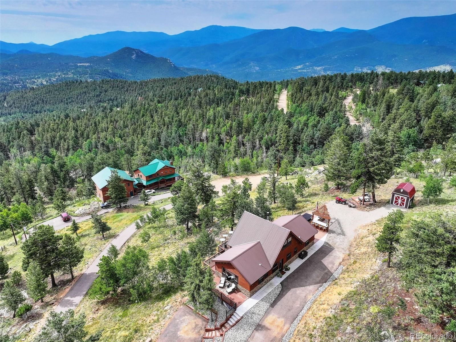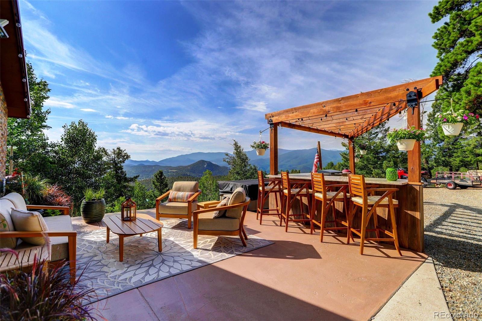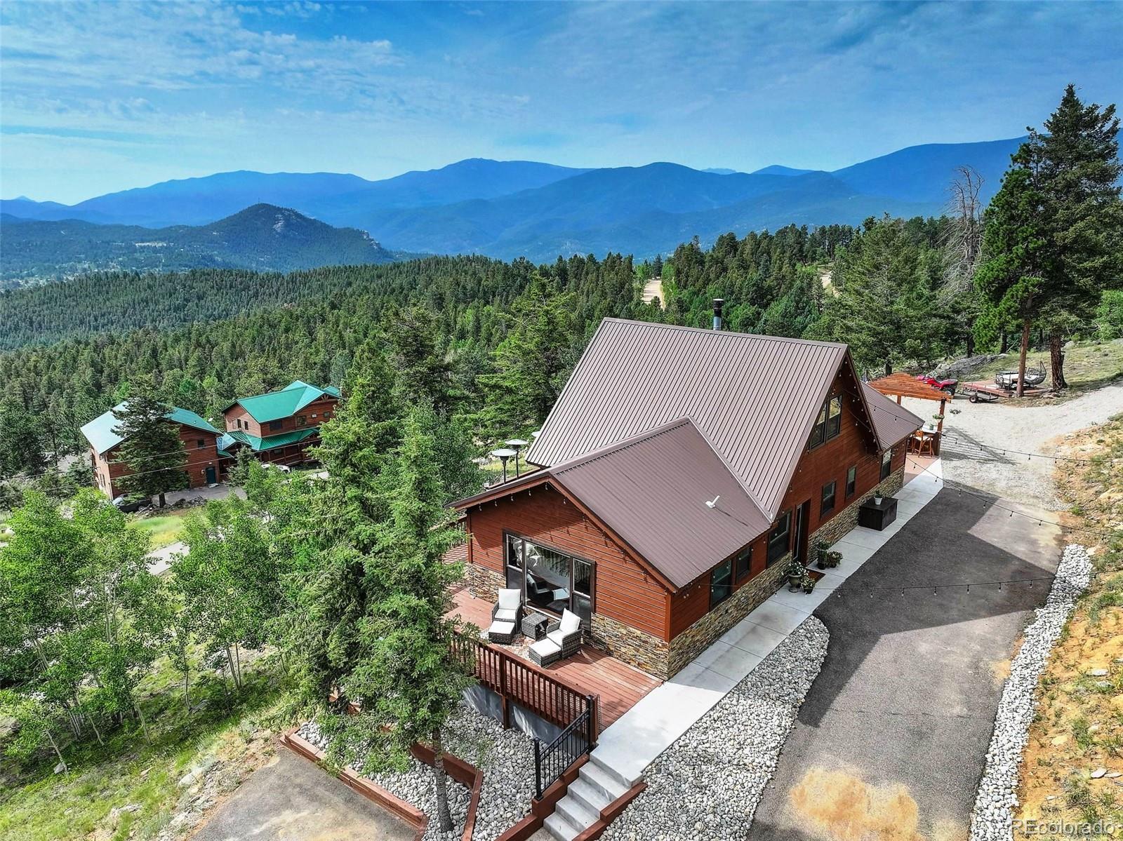 Stunning Mountain Retreat on 4.65 Acres! Welcome to 291 Pinecrest Circle--where breathtaking views greet you from every window of this beautifully updated 2-bedroom, 2-bath home. Nestled on a private 4.65-acre lot, this 1,216 square feet mountain escape offers the perfect blend of modern comfort and rustic charm. Inside, enjoy a bright and open floor plan with thoughtful updates throughout, making this home truly move-in ready. Step outside to expansive decks and patios, ideal for relaxing or entertaining. The outdoor kitchen adds a unique touch, perfect for summer barbecues or cozy evening gatherings under the stars. Whether you're hosting guests or enjoying a peaceful evening alone, the multiple outdoor living spaces take full advantage of the spectacular surroundings. With ample parking and room for all your toys, this property offers both practicality and lifestyle. Located in a serene and scenic area of Bailey, yet just a short drive to town and an easy commute to the city. Don't miss this opportunity to own your slice of Colorado paradise!