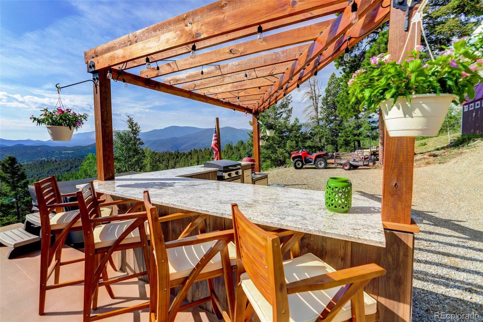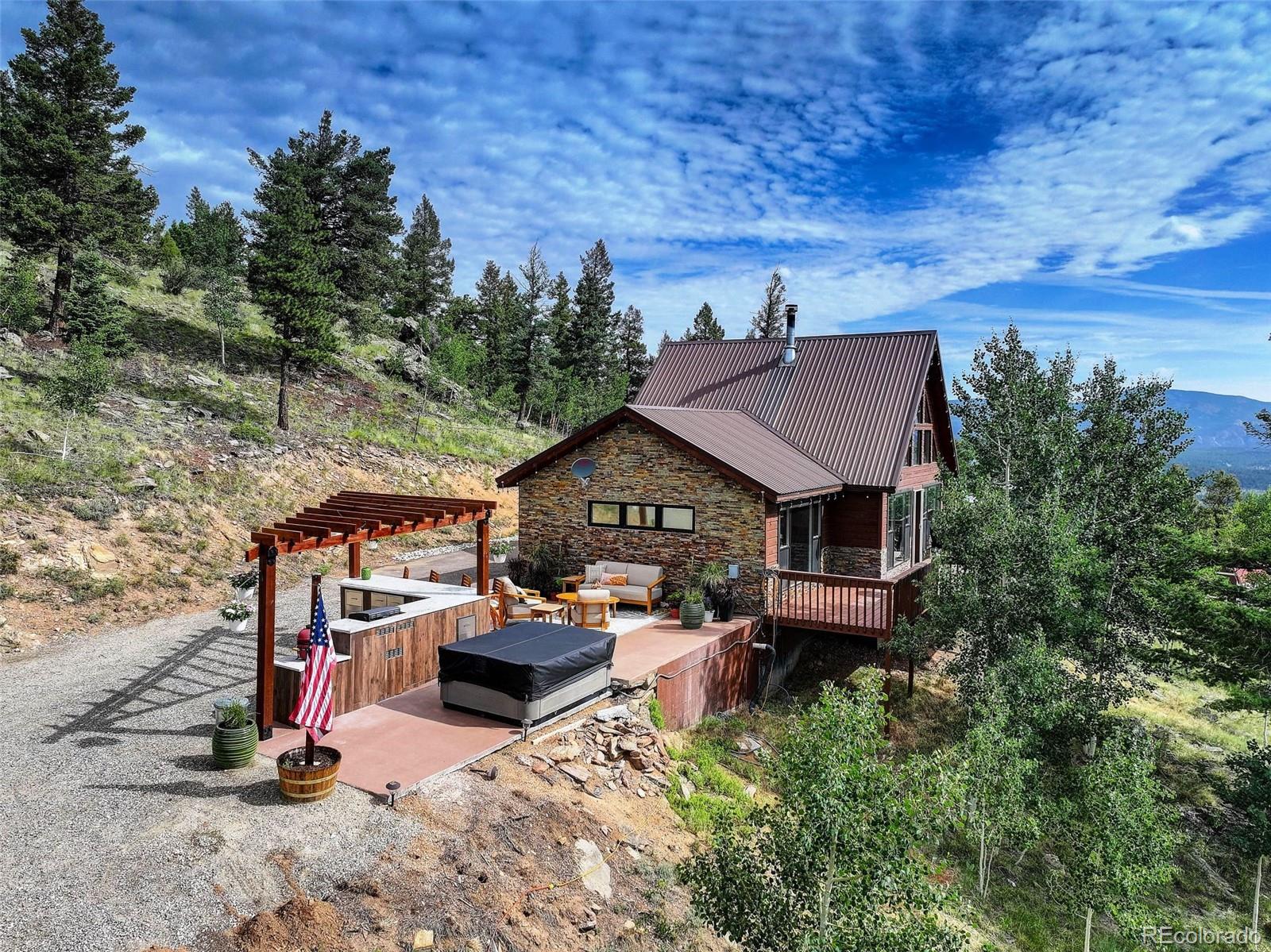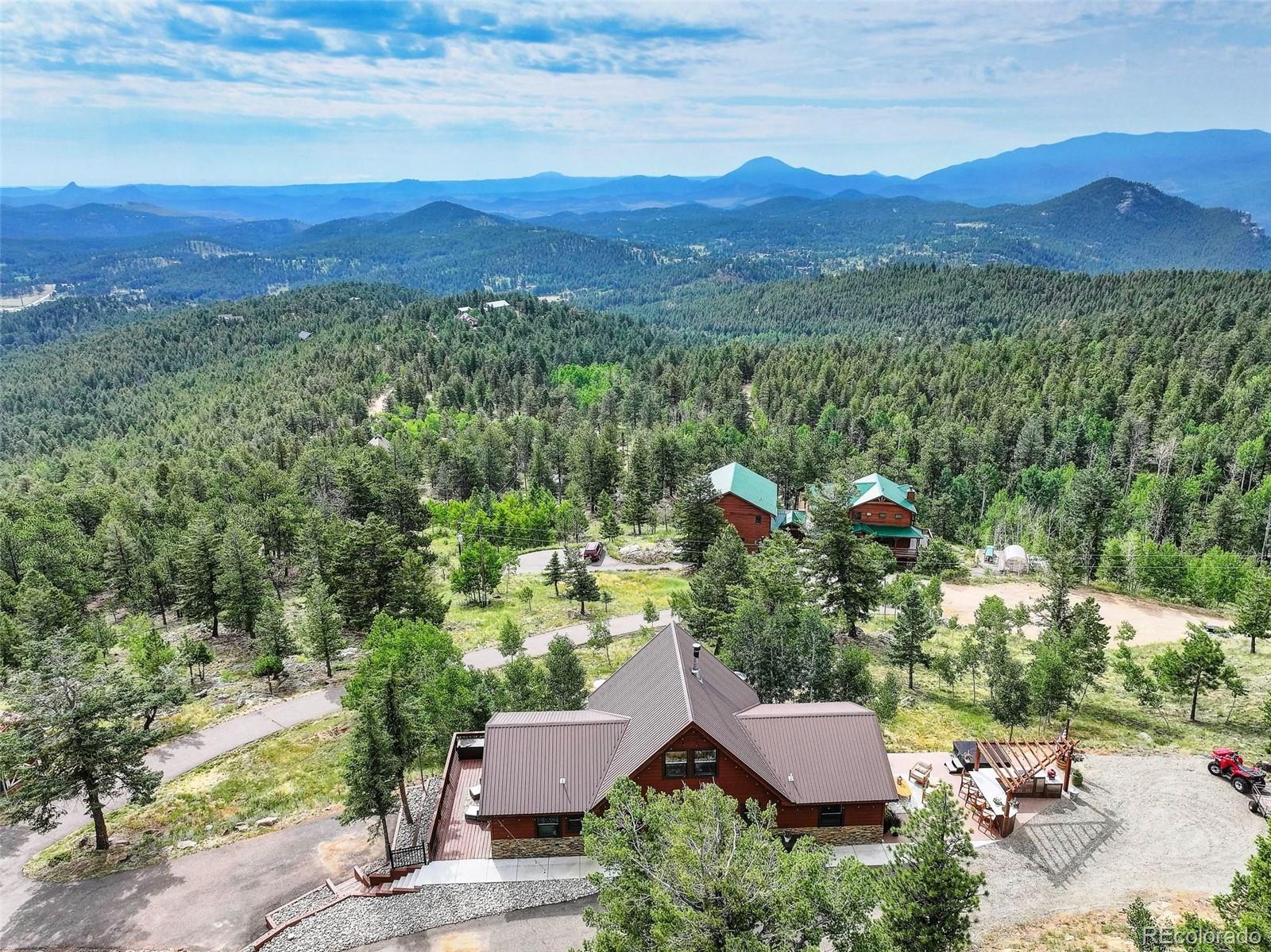 Stunning Mountain Retreat on 4.65 Acres! Welcome to 291 Pinecrest Circle--where breathtaking views greet you from every window of this beautifully updated 2-bedroom, 2-bath home. Nestled on a private 4.65-acre lot, this 1,216 square feet mountain escape offers the perfect blend of modern comfort and rustic charm. Inside, enjoy a bright and open floor plan with thoughtful updates throughout, making this home truly move-in ready. Step outside to expansive decks and patios, ideal for relaxing or entertaining. The outdoor kitchen adds a unique touch, perfect for summer barbecues or cozy evening gatherings under the stars. Whether you're hosting guests or enjoying a peaceful evening alone, the multiple outdoor living spaces take full advantage of the spectacular surroundings. With ample parking and room for all your toys, this property offers both practicality and lifestyle. Located in a serene and scenic area of Bailey, yet just a short drive to town and an easy commute to the city. Don't miss this opportunity to own your slice of Colorado paradise!