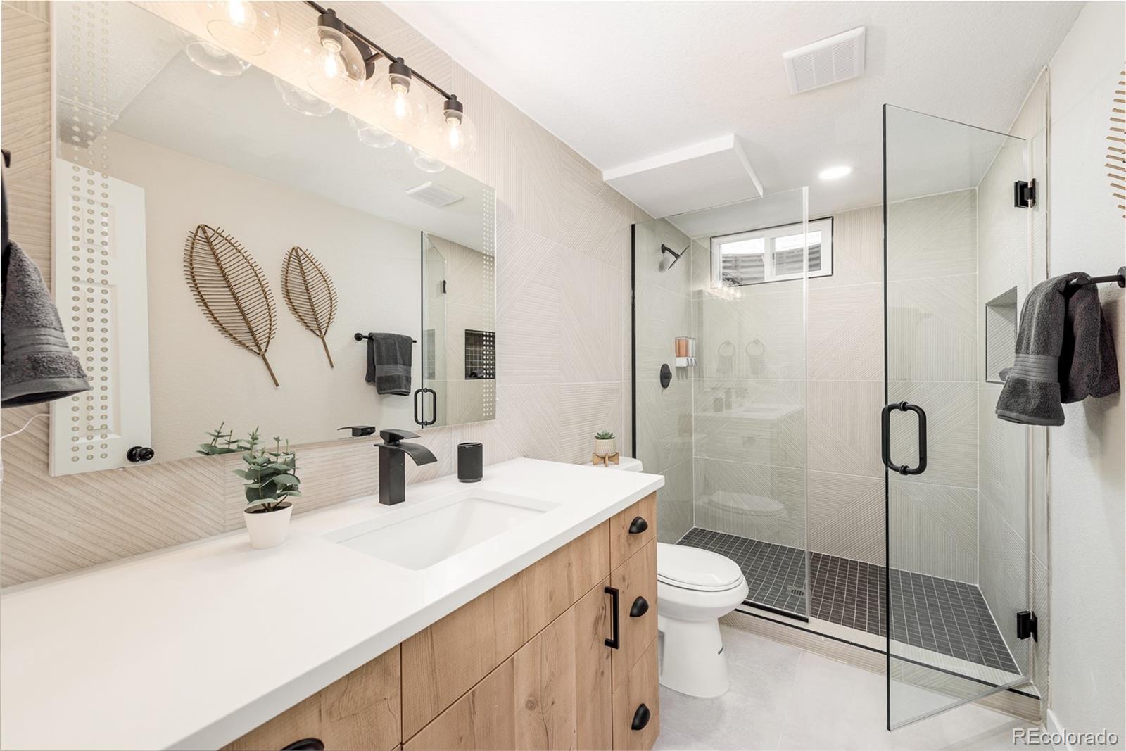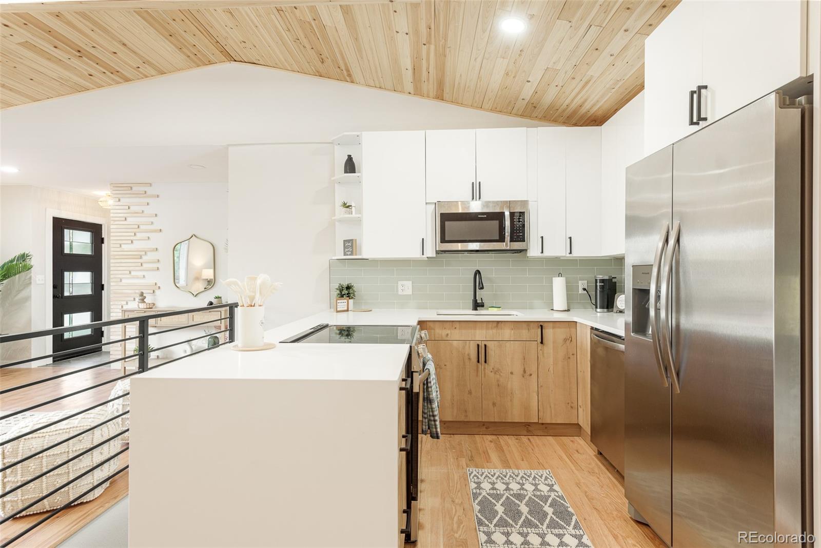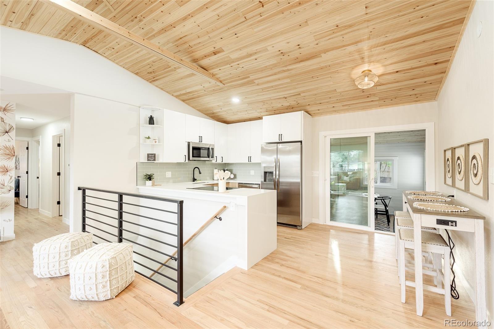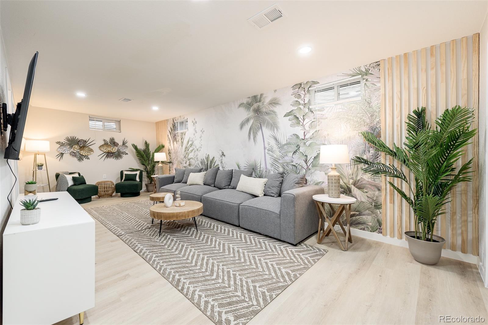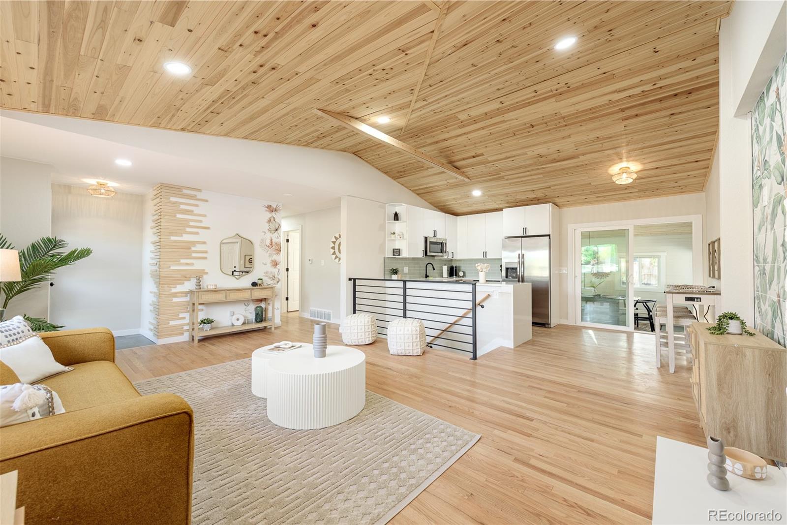 Indulge yourself in this completely renovated and fully transformed ranch-style home, perfectly situated in the vibrant Applewood/Valley Brook neighborhood. Meticulously updated & redesigned from top to bottom, this residence showcases contemporary finishes, stylish fixtures, sleek cabinetry and countertops, and beautifully appointed spaces that seamlessly blend function with style. The welcoming entry opens to the generous Great Room that immediately draws you in, featuring striking accent walls, a tongue-and-groove ceiling, & a handsome stone-surround gas fireplace. The fully renovated kitchen features stainless steel appliances, an efficient layout creating an ideal setting for everyday living and entertaining. Plenty of eat-in space that opens to a one-of-a-kind dining space. Convenient main-level living featuring three bedrooms, two baths, including a private primary suite & each bedroom offering its own personality & charm! Expansive finished basement features a versatile family room, 2 large bedrooms, an oversized bath, laundry facilities, & abundant storage. Outdoors, enjoy a private, fully fenced backyard with ample yard space and a hot tub--perfect for relaxation & gatherings. Completing the property is a two-car garage & a location that places you close to all the amenities with an energy that make this the ideal location in a highly sought-after community. Just minutes to the newer Intermountain Health Lutheran Hospital, located in the new Clear Creek Crossing development. Offering an exceptional blend of convenience, outdoor lifestyle, & community appeal. Residents enjoy close proximity to highly rated schools, and an abundance of neighborhood parks that provides for a wide range of lifestyles! Outdoor enthusiasts appreciate easy access to Jeffco Open Space trails, with miles of scenic paths for hiking, biking, and recreation. One of Wheat Ridge's most sought-after areas for long-term value, this is truly a remarkable home & property!