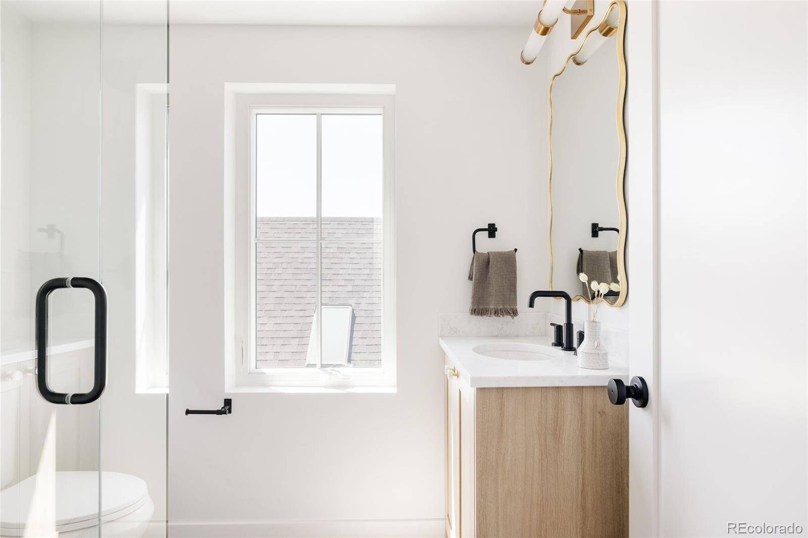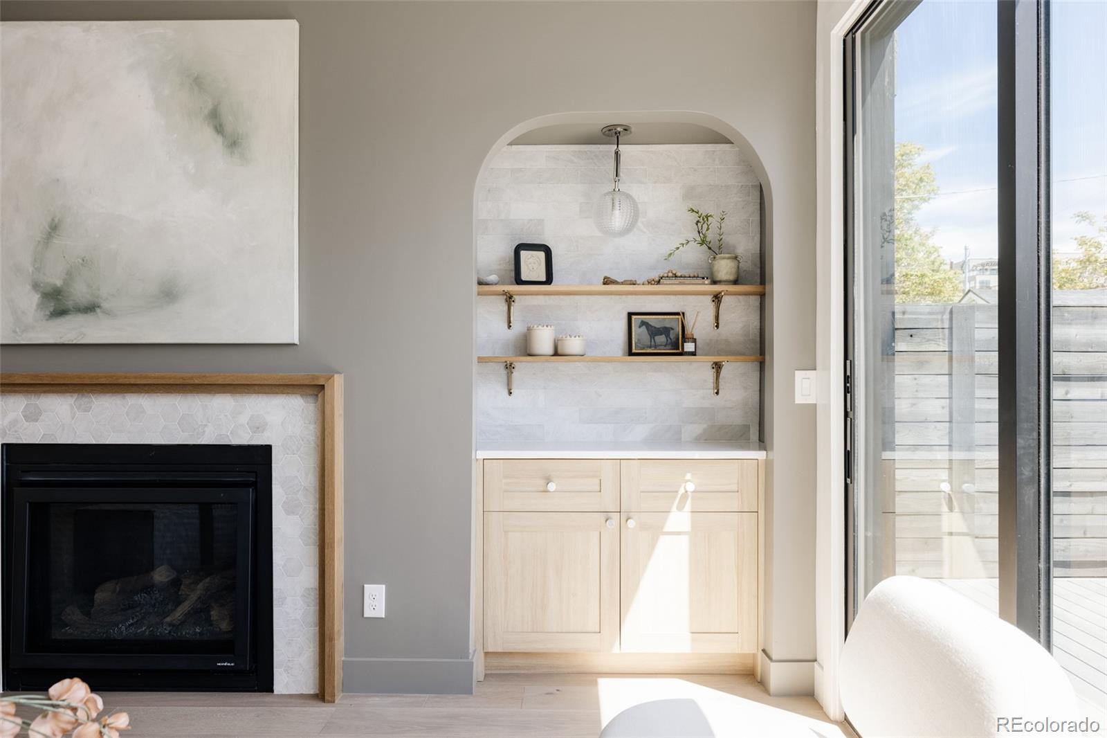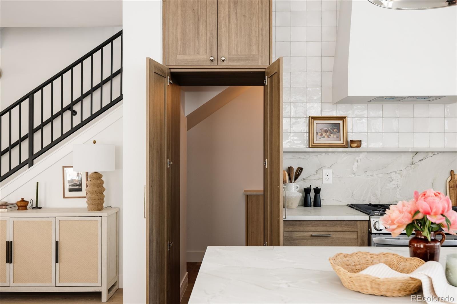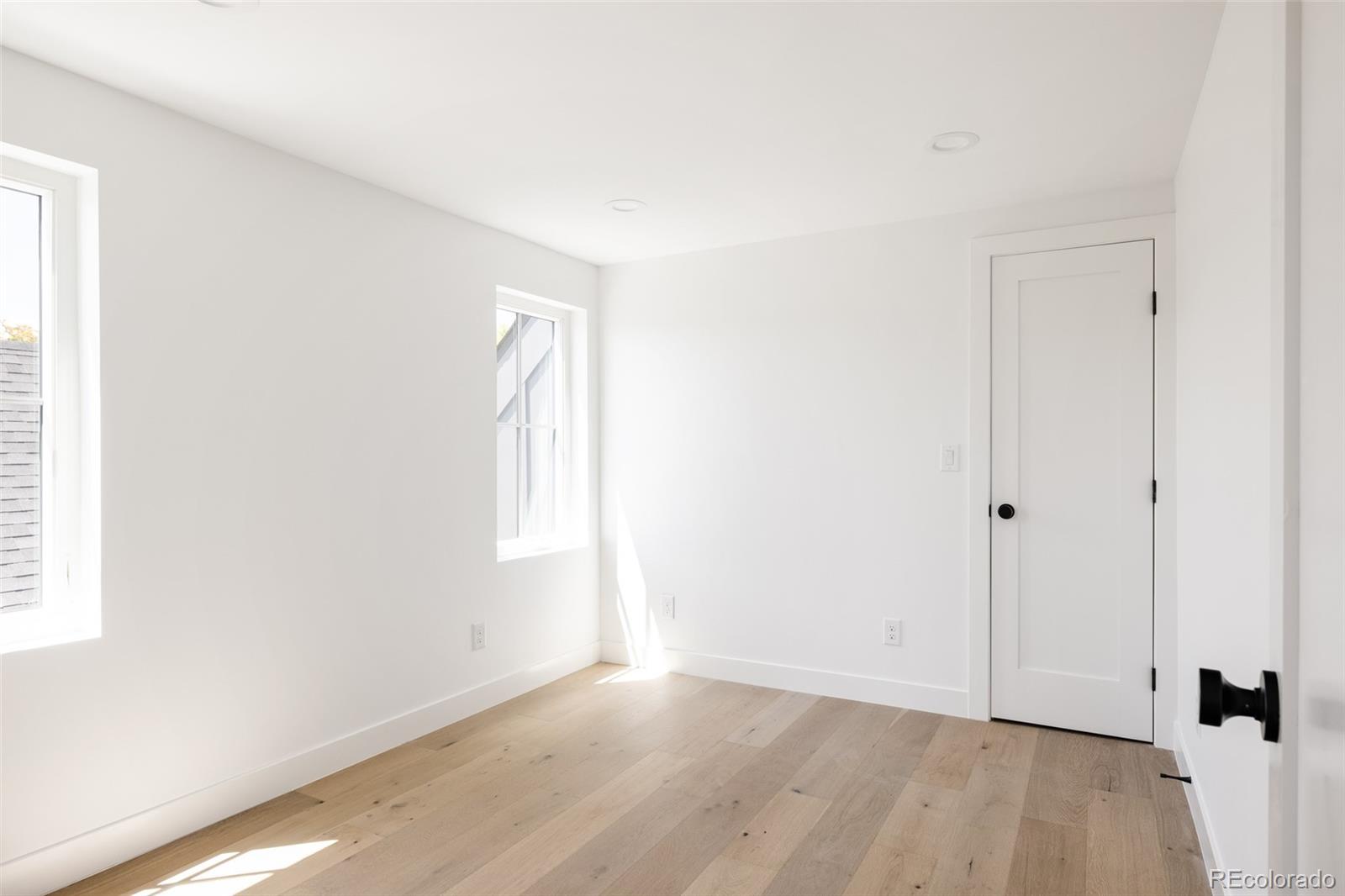 The quality construction and craftsmanship -- paired with a brick facade and elevation that respects its local neighborhood context -- truly make this a rare offering that stands apart from other builder-grade, stucco-box duplexes, while maintaining the same price point. The main floor features white oak hardwood floors, a hidden walk-in pantry, a separate office with custom steel doors, a built-in bar with marble tile, and a full triple sliding door that completely opens, blending indoor and outdoor living. The open living room flows onto the private back deck, with plenty of space for an eight-person outdoor dining table and a landscaped backyard -- perfect for entertaining. In addition, there is a spacious rooftop deck for patio seating, offering unparalleled, expansive views of the downtown Denver skyline. This residence also features a rare layout with three bedrooms on the same level, including a separate laundry room and a large primary suite. The eye-catching curb appeal is enhanced by lush landscaping and anchored by a cozy front sitting porch and covered entry. Located on a quiet neighborhood street, this desirable location is within a four-block walk of coffee shops, a cidery, a taco shop, restaurants, parks, CycleBar, and Fox St. Station, offering easy access to Union Station and DIA. Welcome home to your Goodhouse.