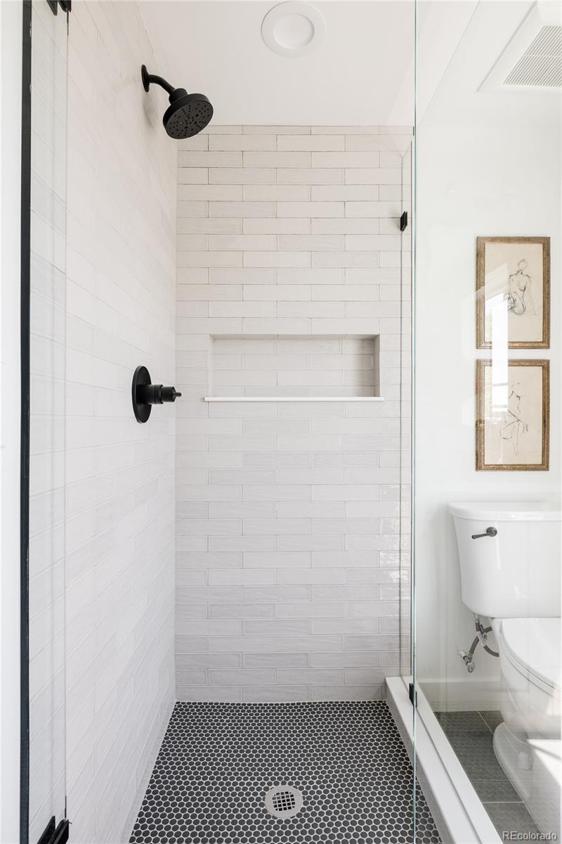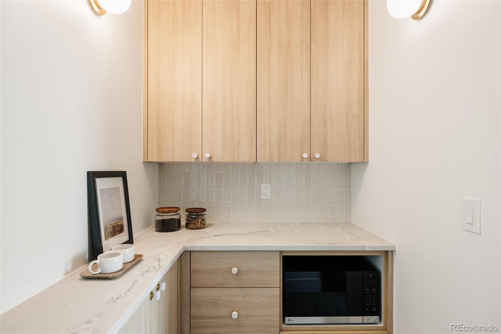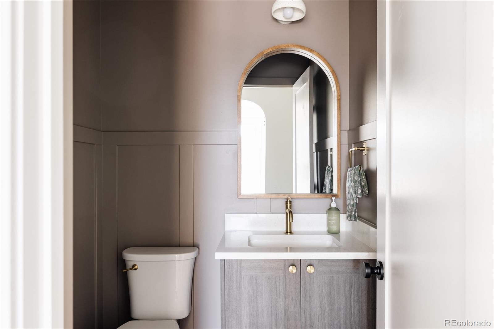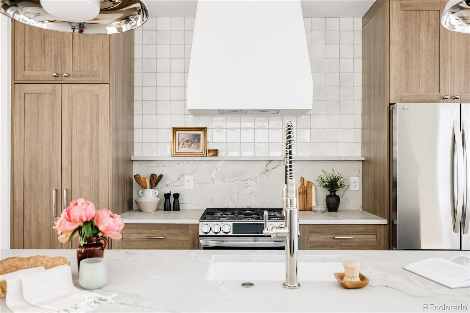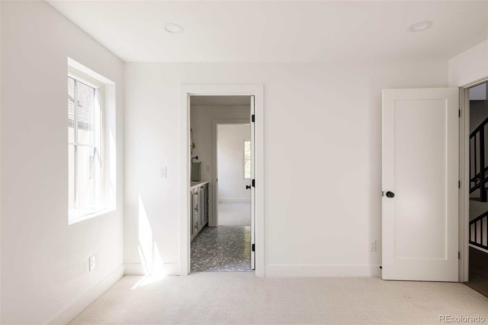 The quality construction and craftsmanship -- paired with a brick facade and elevation that respects its local neighborhood context -- truly make this a rare offering that stands apart from other builder-grade, stucco-box duplexes, while maintaining the same price point. The main floor features white oak hardwood floors, a hidden walk-in pantry, a separate office with custom steel doors, a built-in bar with marble tile, and a full triple sliding door that completely opens, blending indoor and outdoor living. The open living room flows onto the private back deck, with plenty of space for an eight-person outdoor dining table and a landscaped backyard -- perfect for entertaining. In addition, there is a spacious rooftop deck for patio seating, offering unparalleled, expansive views of the downtown Denver skyline. This residence also features a rare layout with three bedrooms on the same level, including a separate laundry room and a large primary suite. The eye-catching curb appeal is enhanced by lush landscaping and anchored by a cozy front sitting porch and covered entry. Located on a quiet neighborhood street, this desirable location is within a four-block walk of coffee shops, a cidery, a taco shop, restaurants, parks, CycleBar, and Fox St. Station, offering easy access to Union Station and DIA. Welcome home to your Goodhouse.