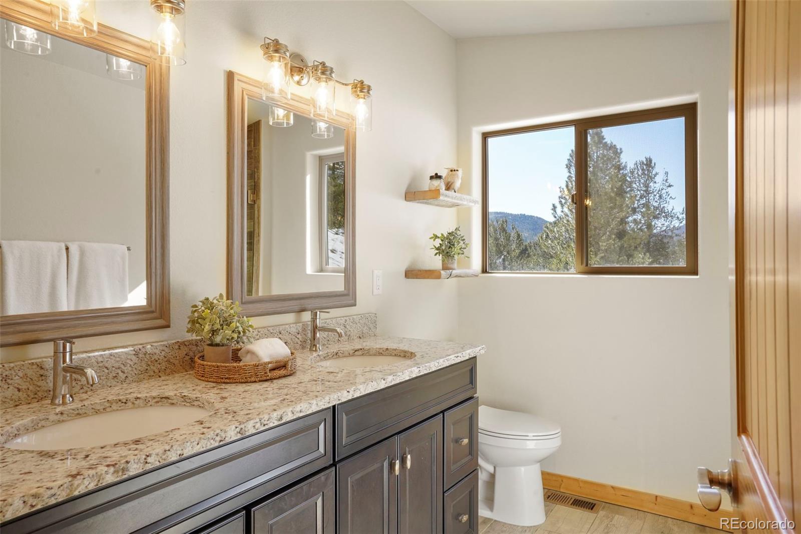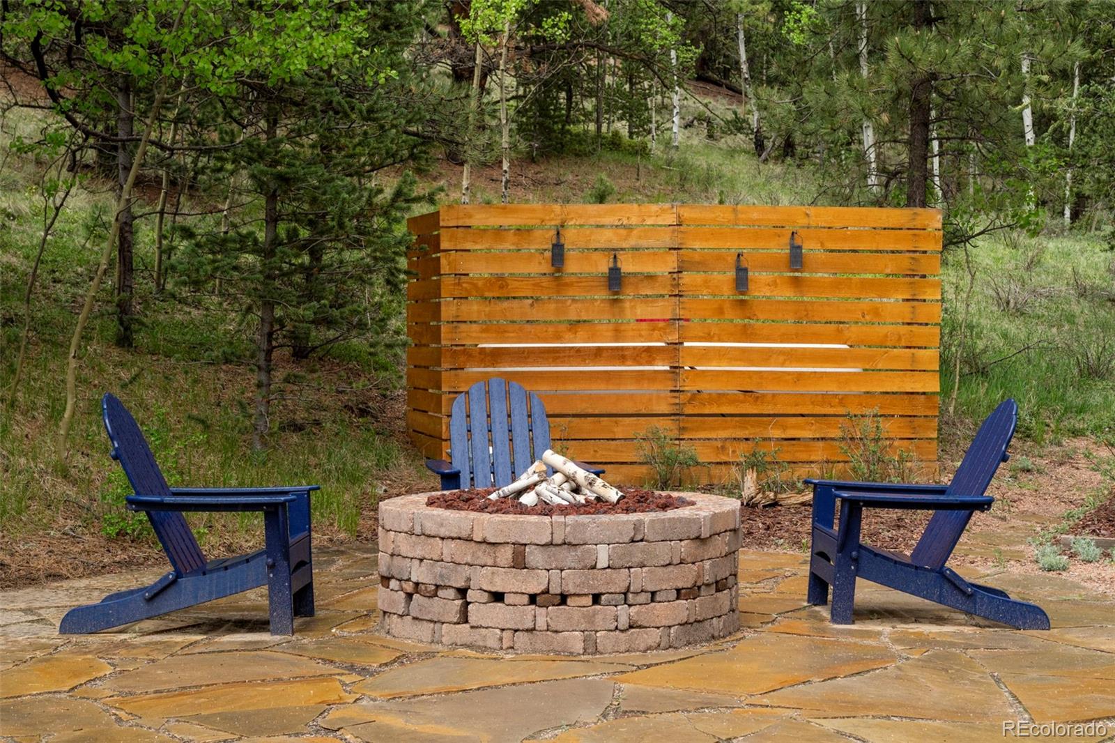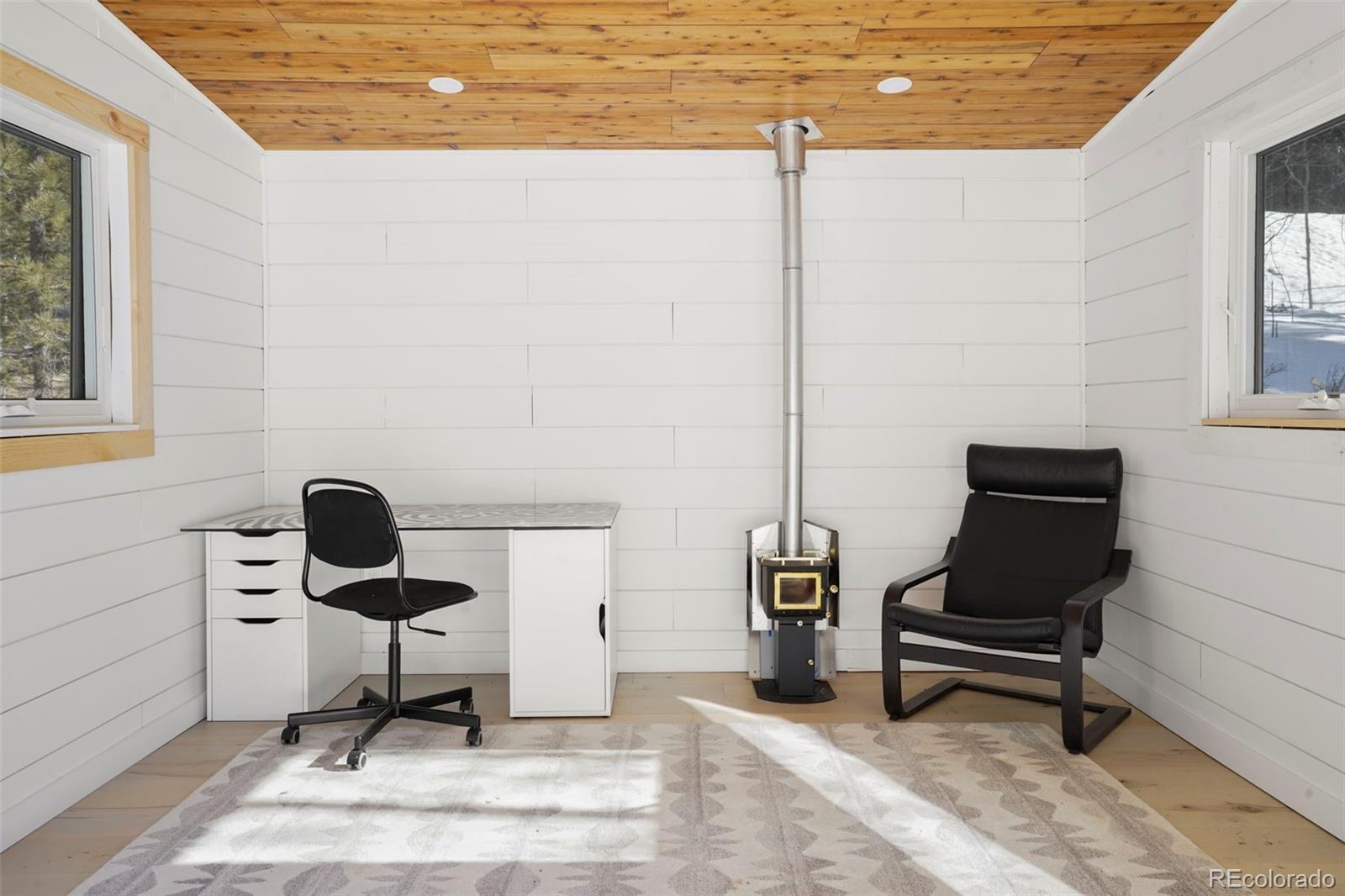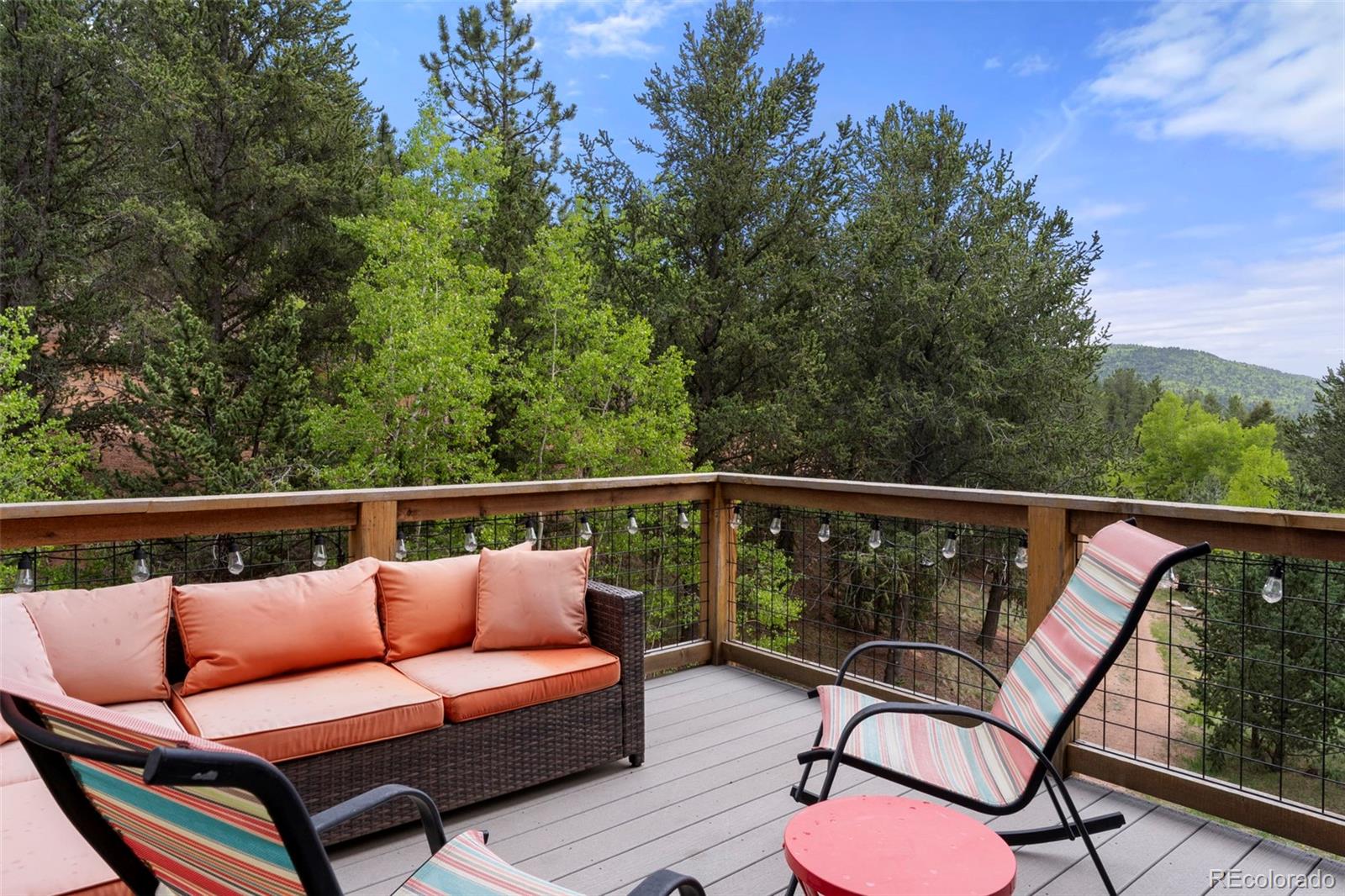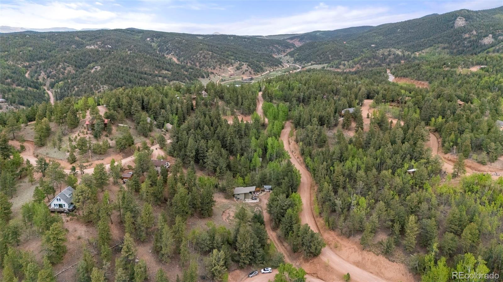 Charming modern mountain home nestled on a 1.28-acre lot with breathtaking views of the surrounding trees and mountains! This delightful raised ranch residence features 1488 square feet of living space, including 3 bedrooms and 2 bathrooms. The great room concept main floor, features soaring ceilings, a cozy gas fired stove, and many windows that bring the peace of the outdoors inside. Walk-out out to the spacious deck to take in the surrounding mountain air, sunshine, and serenity. Custom built-ins adorn the dining area and the kitchen boasts granite counter tops, hickory cabinets and stainless appliances. The master bedroom is light and bright with a generous walk-in closet and the custom bathroom, with a beautifully designed walk-in shower, completes the main level. The lower level includes 2 bedrooms, one of which features many built-in bookshelves, a full custom bathroom, and a family room with more built-ins and a pellet stove. Walk-out to the patio to enjoy outdoor living with a hot tub and fire pit. Just steps from the outdoor living area is an adorable 120 square foot, finished, studio/bunkhouse currently set up as an office. This wonderful extra space can be whatever you choose, and is solar powered and heated with a small stove. Store all of your outdoor adventure gear or tools in the roomy storage shed and an EV charging station was recently added. All furnishings are negotiable, making this sweet retreat ready to move in! Located between Divide and Cripple Creek via Highway 67 with easy access on county maintained roads. The town of Woodland Park is a short 20 minute drive for all major amenities. The recreational activities available within minutes are endless. World class skiing and white water rafting are within a 1-1/2 hour drive. This home showcases exceptional quality, with meticulous attention to every detail. Come and see for yourself!