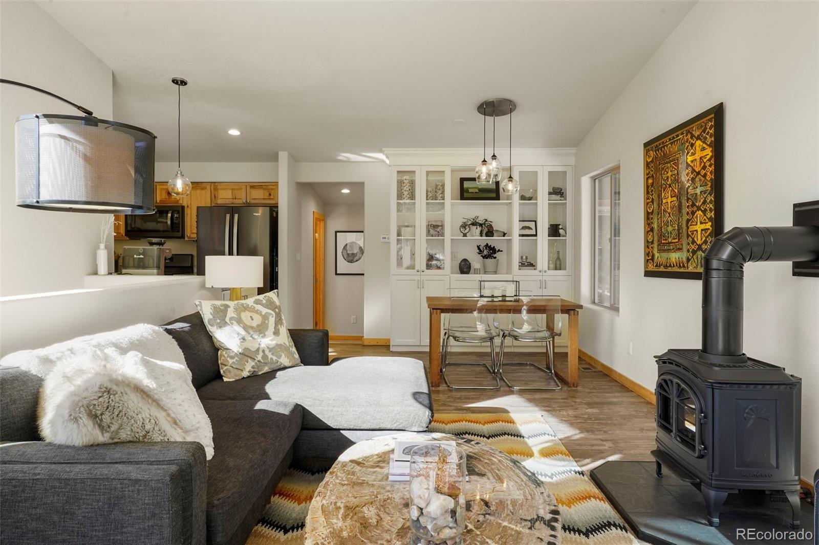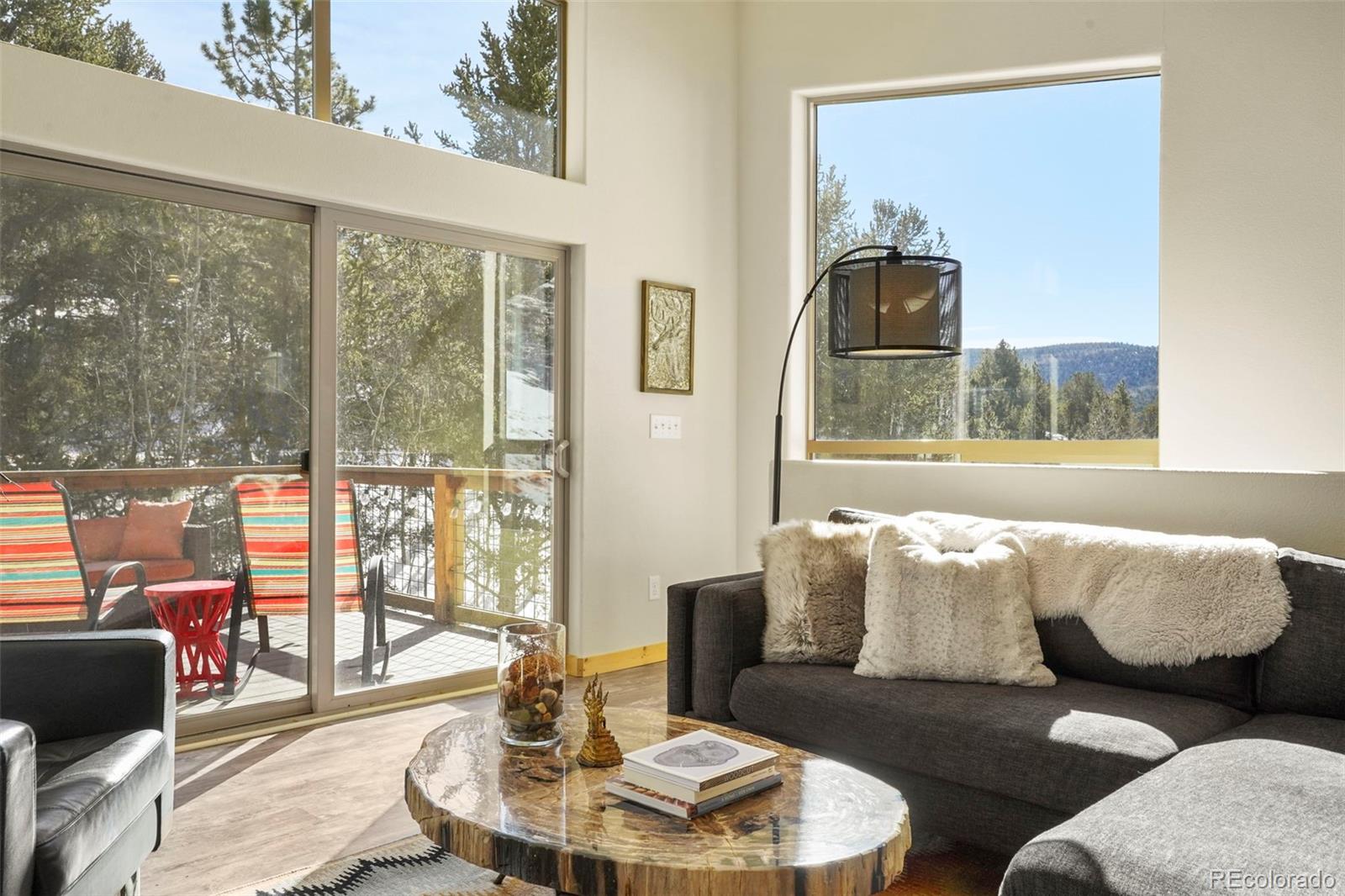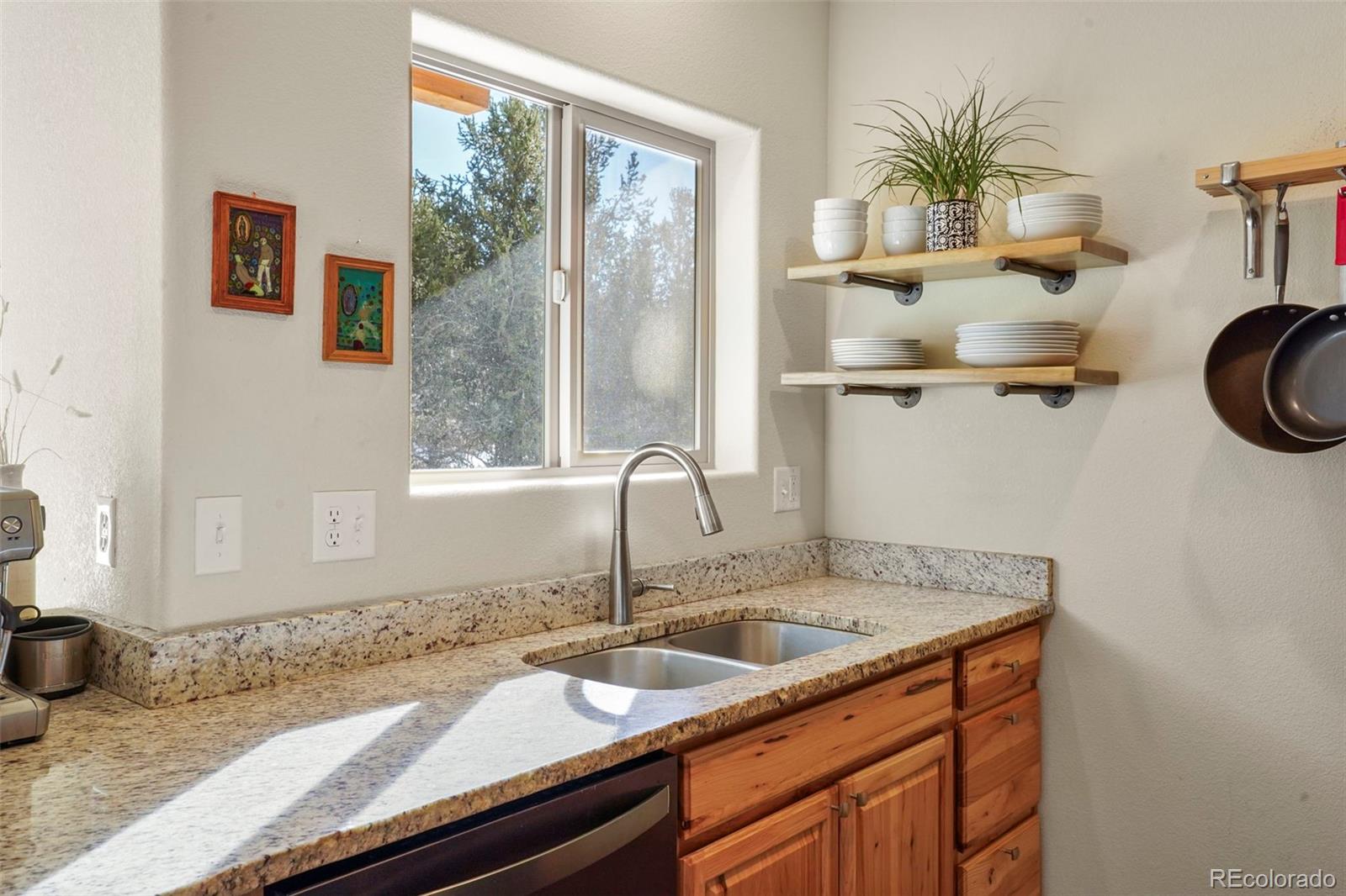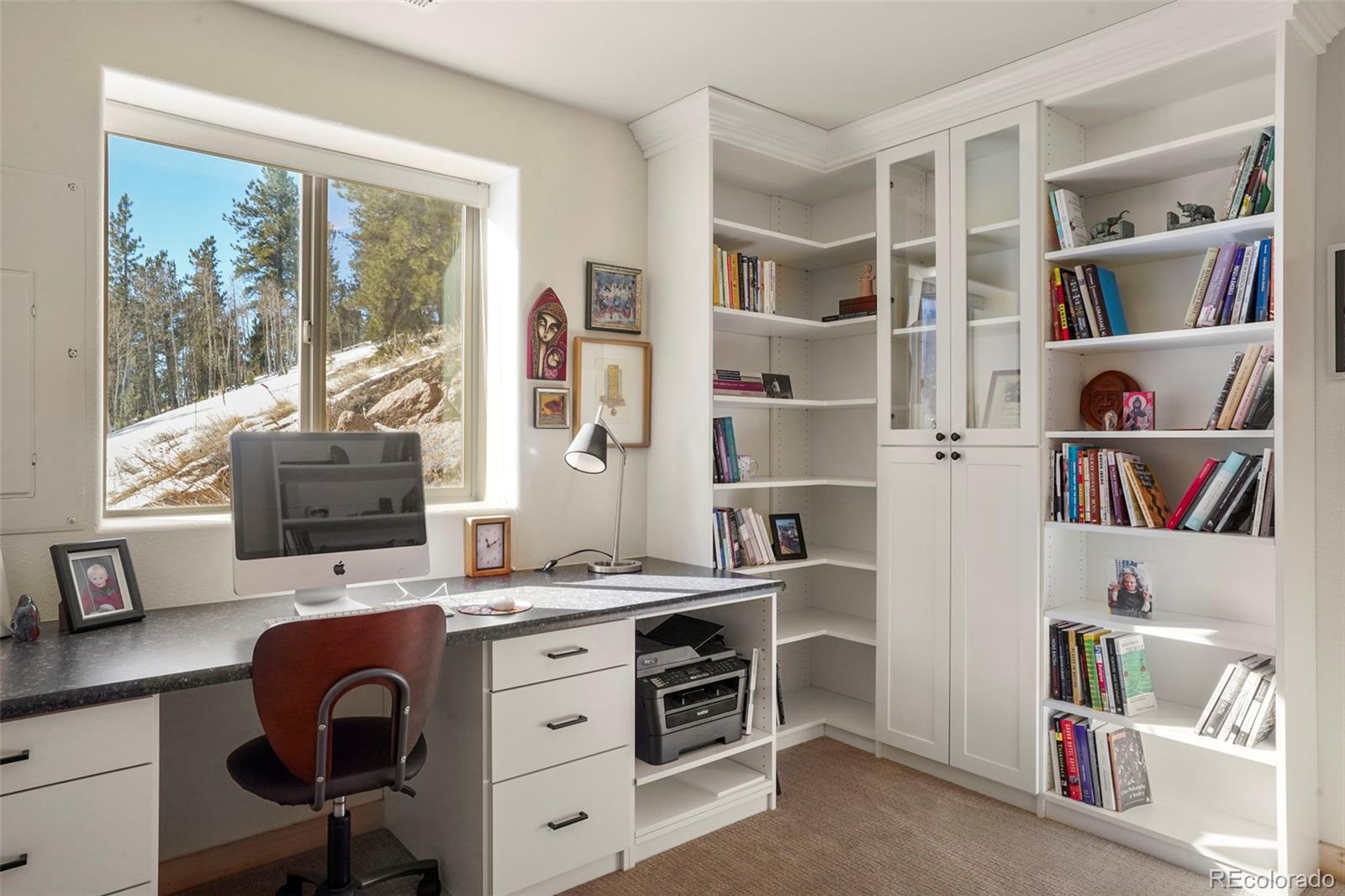 Charming modern mountain home nestled on a 1.28-acre lot with breathtaking views of the surrounding trees and mountains! This delightful raised ranch residence features 1488 square feet of living space, including 3 bedrooms and 2 bathrooms. The great room concept main floor, features soaring ceilings, a cozy gas fired stove, and many windows that bring the peace of the outdoors inside. Walk-out out to the spacious deck to take in the surrounding mountain air, sunshine, and serenity. Custom built-ins adorn the dining area and the kitchen boasts granite counter tops, hickory cabinets and stainless appliances. The master bedroom is light and bright with a generous walk-in closet and the custom bathroom, with a beautifully designed walk-in shower, completes the main level. The lower level includes 2 bedrooms, one of which features many built-in bookshelves, a full custom bathroom, and a family room with more built-ins and a pellet stove. Walk-out to the patio to enjoy outdoor living with a hot tub and fire pit. Just steps from the outdoor living area is an adorable 120 square foot, finished, studio/bunkhouse currently set up as an office. This wonderful extra space can be whatever you choose, and is solar powered and heated with a small stove. Store all of your outdoor adventure gear or tools in the roomy storage shed and an EV charging station was recently added. All furnishings are negotiable, making this sweet retreat ready to move in! Located between Divide and Cripple Creek via Highway 67 with easy access on county maintained roads. The town of Woodland Park is a short 20 minute drive for all major amenities. The recreational activities available within minutes are endless. World class skiing and white water rafting are within a 1-1/2 hour drive. This home showcases exceptional quality, with meticulous attention to every detail. Come and see for yourself!