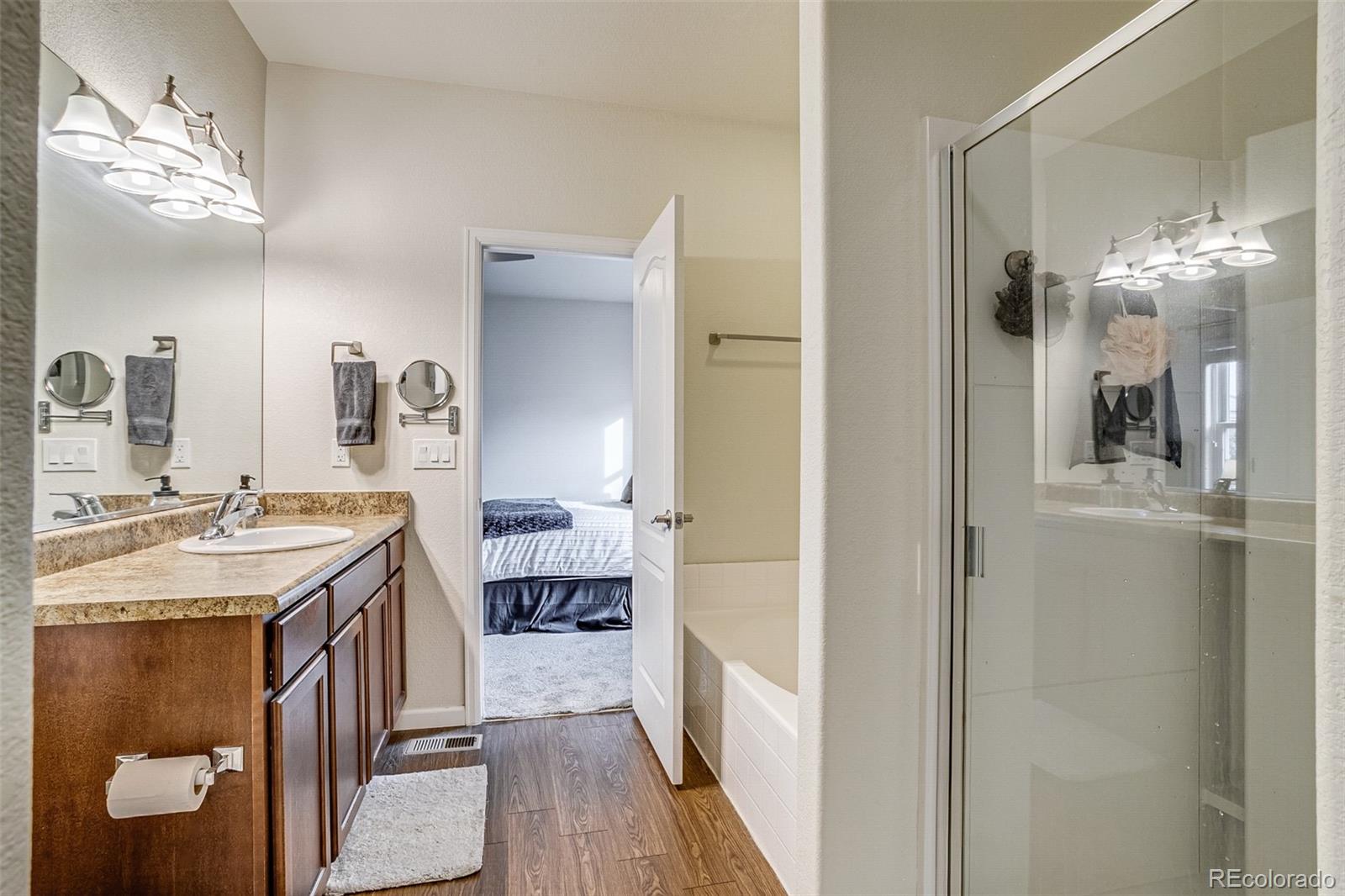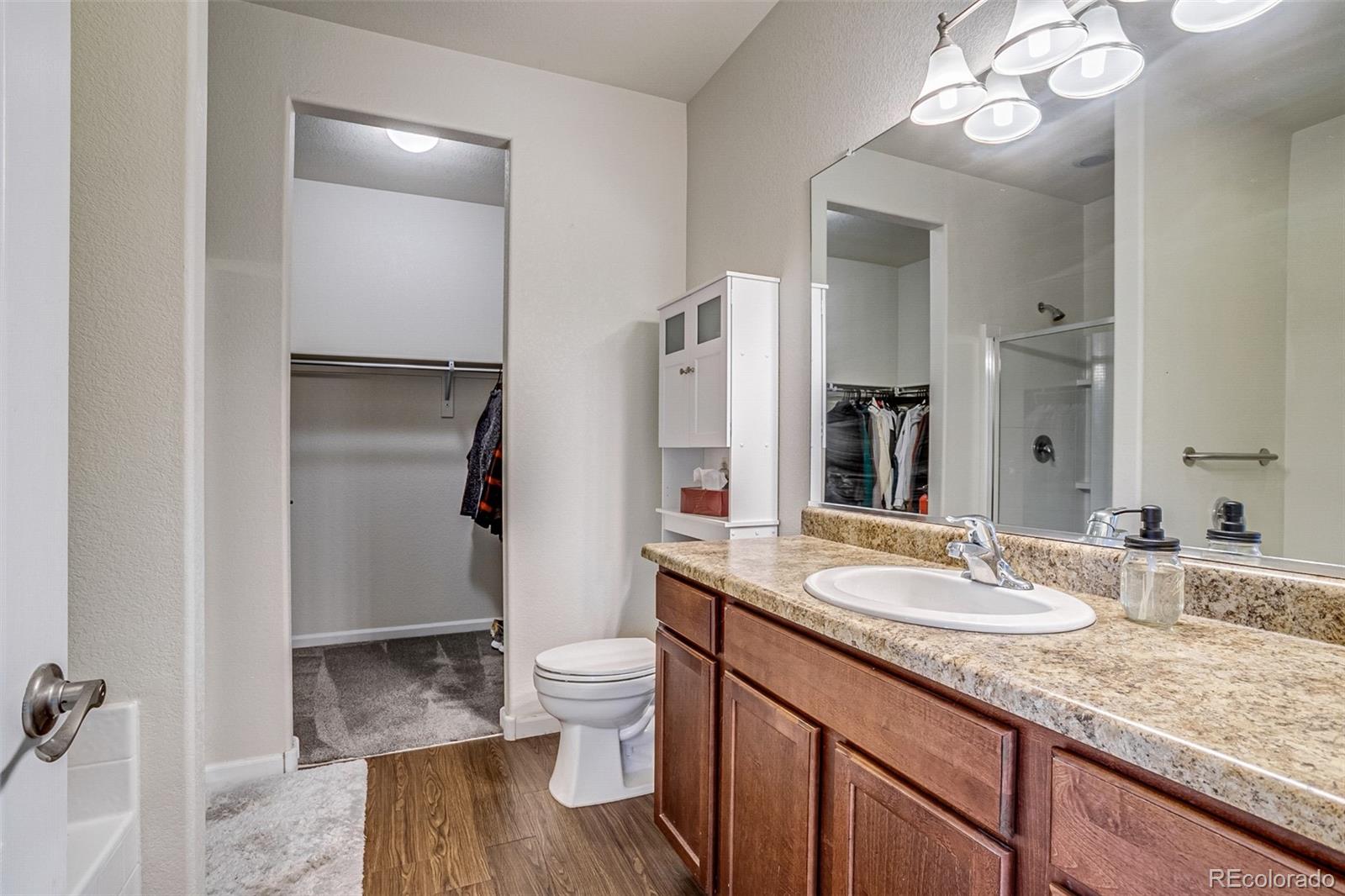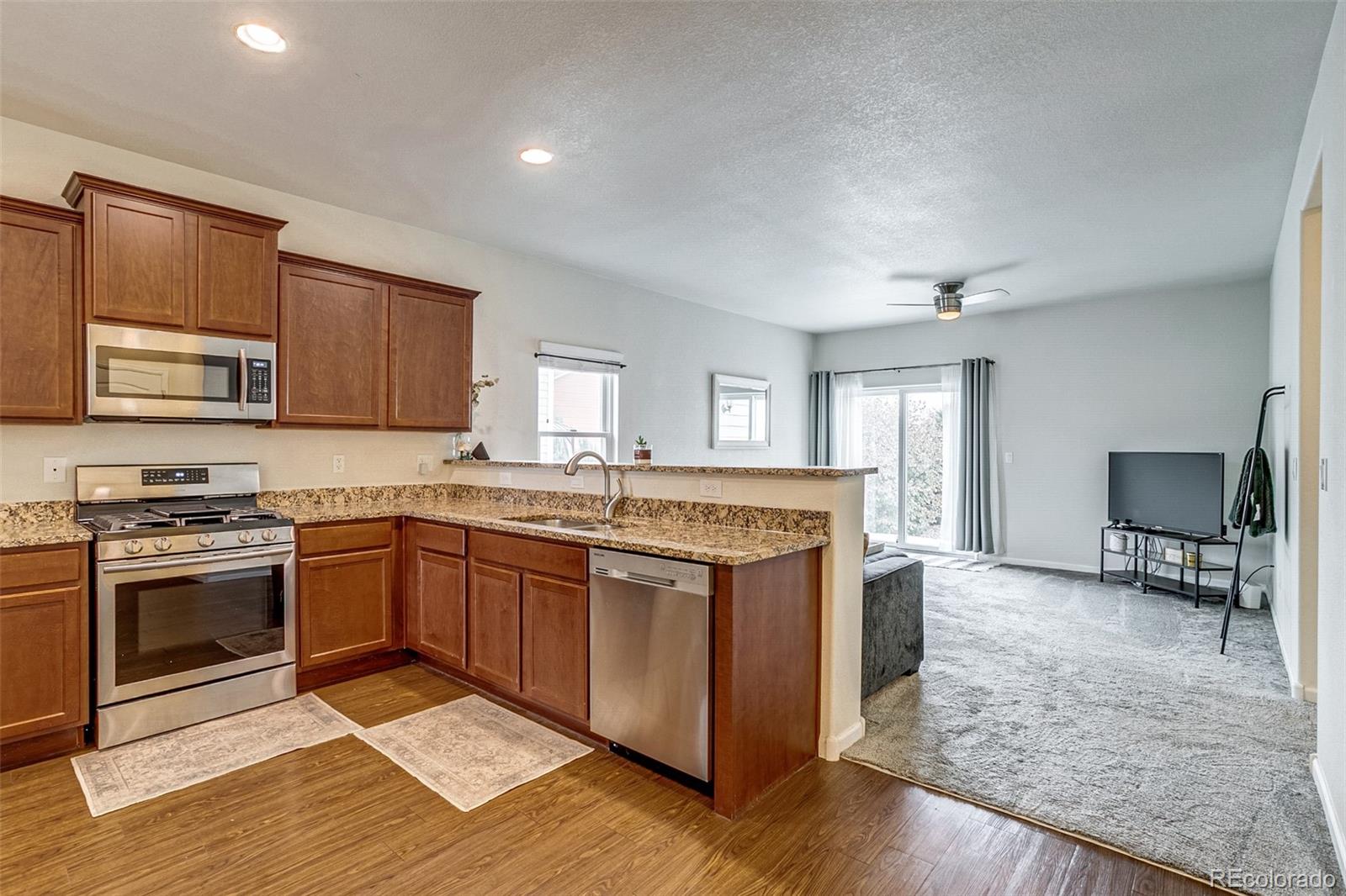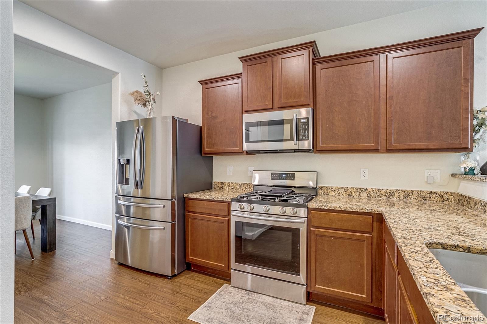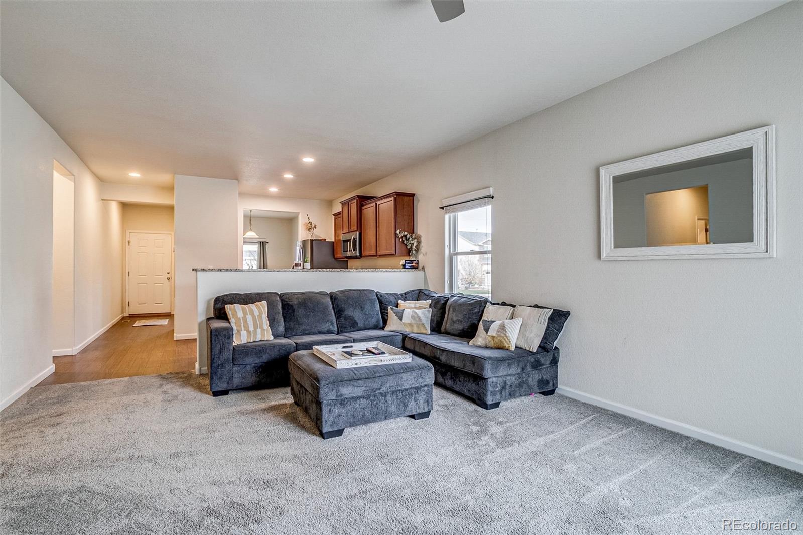 Outside, the landscaped and private backyard offers a perfect setting for morning coffee or unwinding after the day. The two-car garage provides abundant room for parking and storage. Located in the desirable Legacy Park community, this home offers easy access to I-25 for smooth commutes to Denver, Boulder, Fort Collins, and DIA. Everyday conveniences like the new King Soopers, dining, and shopping are just minutes away.