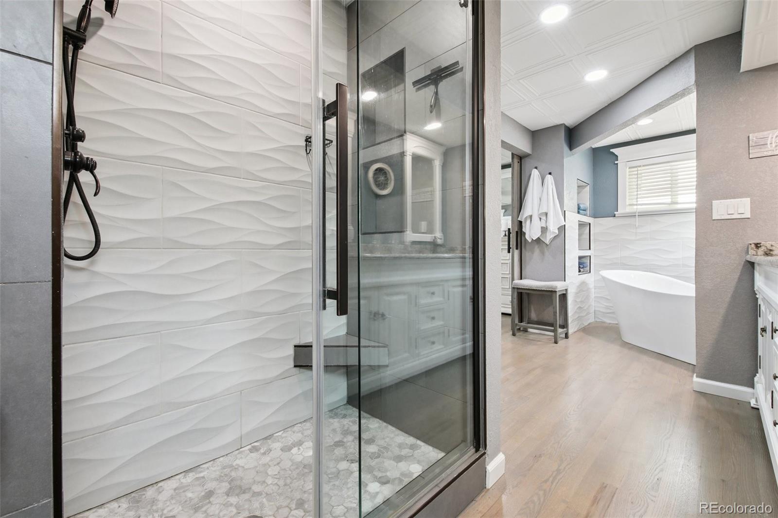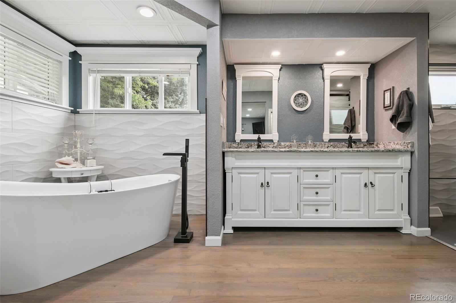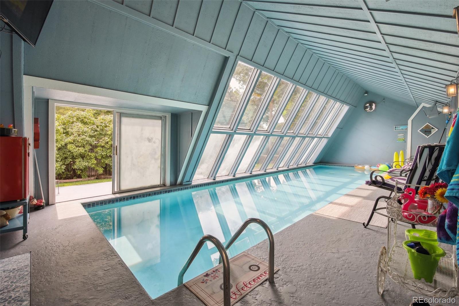 Beautiful family home with a huge backyard in sought after Maplewood Estates! Here is your opportunity to own a rare and updated, 4-bedroom, 3-bathroom gem backing to the Ralston Creek Trail in central Arvada! This multi-level floor plan offers a perfect blend of classic charm and modern upgrades and it is situated on a spacious 13,200 sq. ft lot on a quiet street! Built and designed for entertaining, your friends and family will love the easy to maintain, year round indoor pool located off of the kitchen and adjacent to the large back patio! Designer upgrades include newly finished hardwood floors, granite counters, stainless appliances and decorative ceiling panels! The spa-like, 5 piece master suite has custom tile, a stand-alone soaker tub, gorgeous barn doors and a huge shower! There is a nice sized 2 car garage with additional off street parking for RV's, boats etc.! The sizable, fully landscaped yard offers tons of space for outdoor activities and entertaining! Walk right out of your private, back gate to the