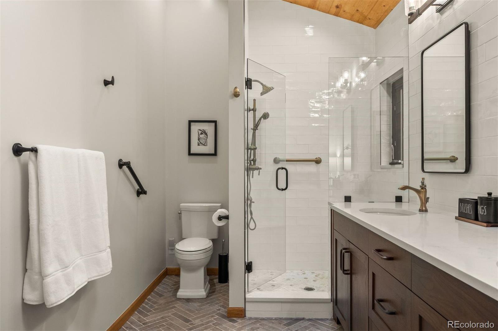 A large secondary bathroom, also added in 2022, continues the elevated design with a big walk-in shower and designer finishes. Multiple outdoor sitting areas throughout the property provide tranquil spots to relax, entertain, or simply take in the surrounding natural beauty.
