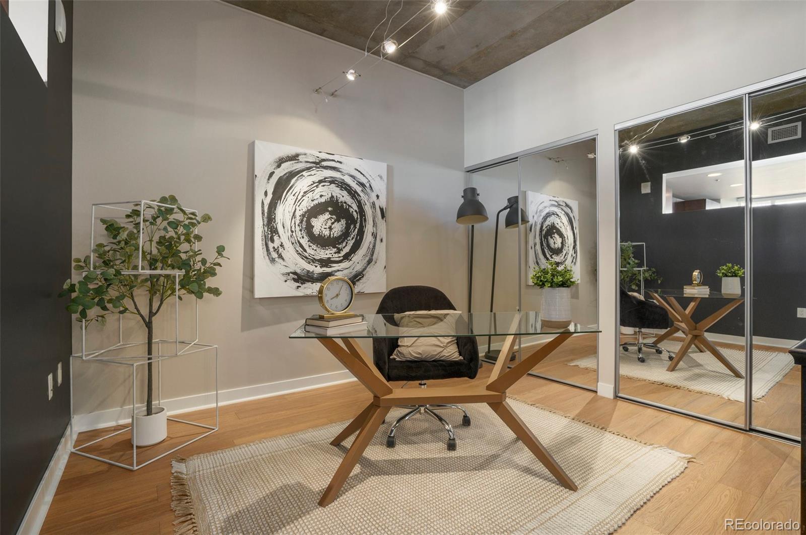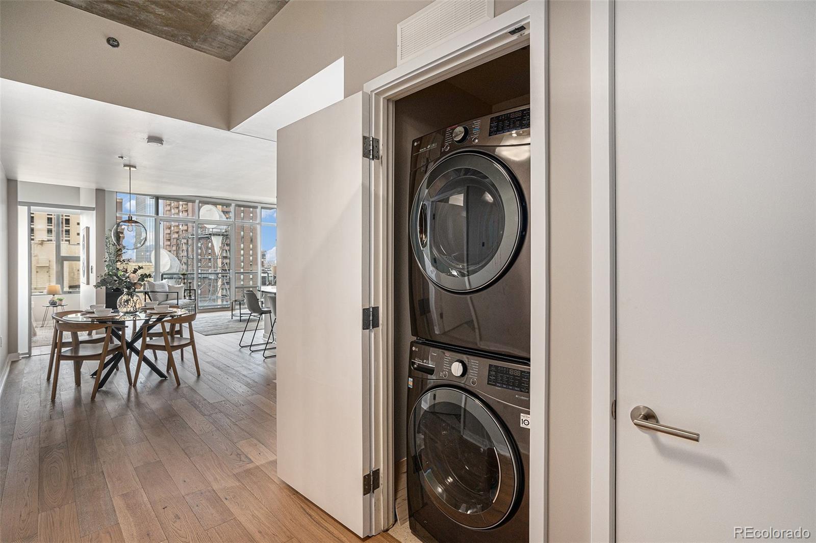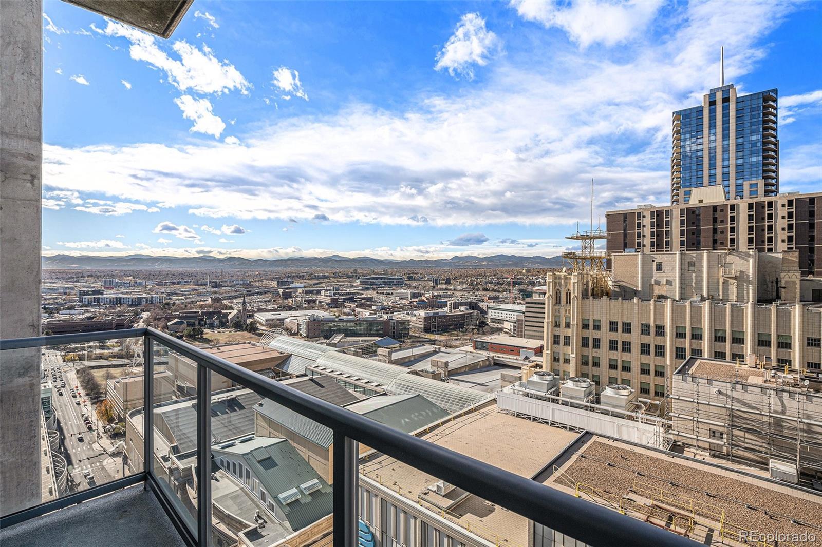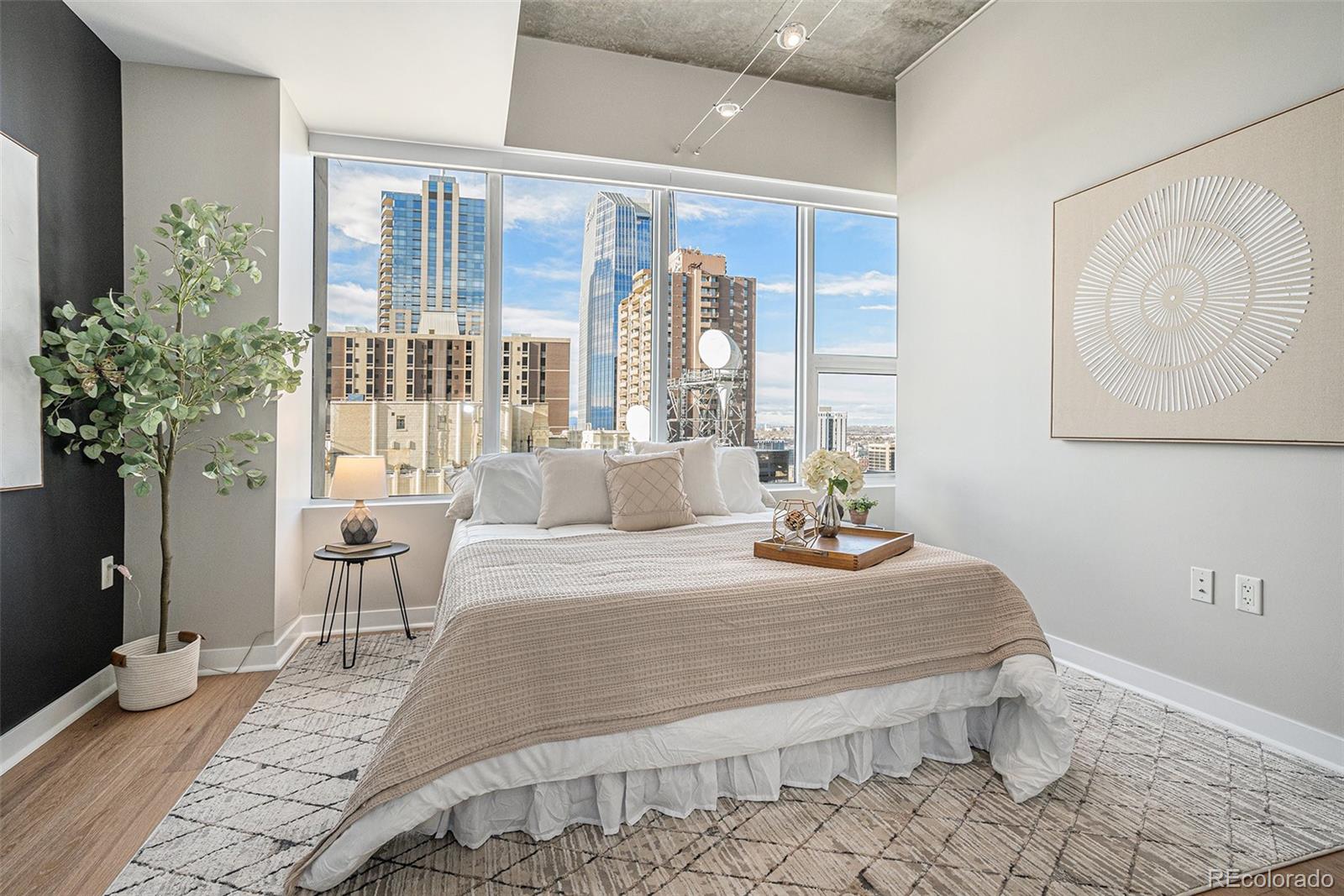 Spectacular residence at SPIRE showcasing floor-to-ceiling views of the Rocky Mountains, Downtown Denver's vibrant cityscape, and the vast beauty that defines Colorado living. Flooded with natural light, the open-concept layout features soaring ceilings and a warm-yet-modern aesthetic blending cozy comfort with industrial-chic touches, including partial concrete ceilings, brand-new wood flooring, and fresh paint throughout.